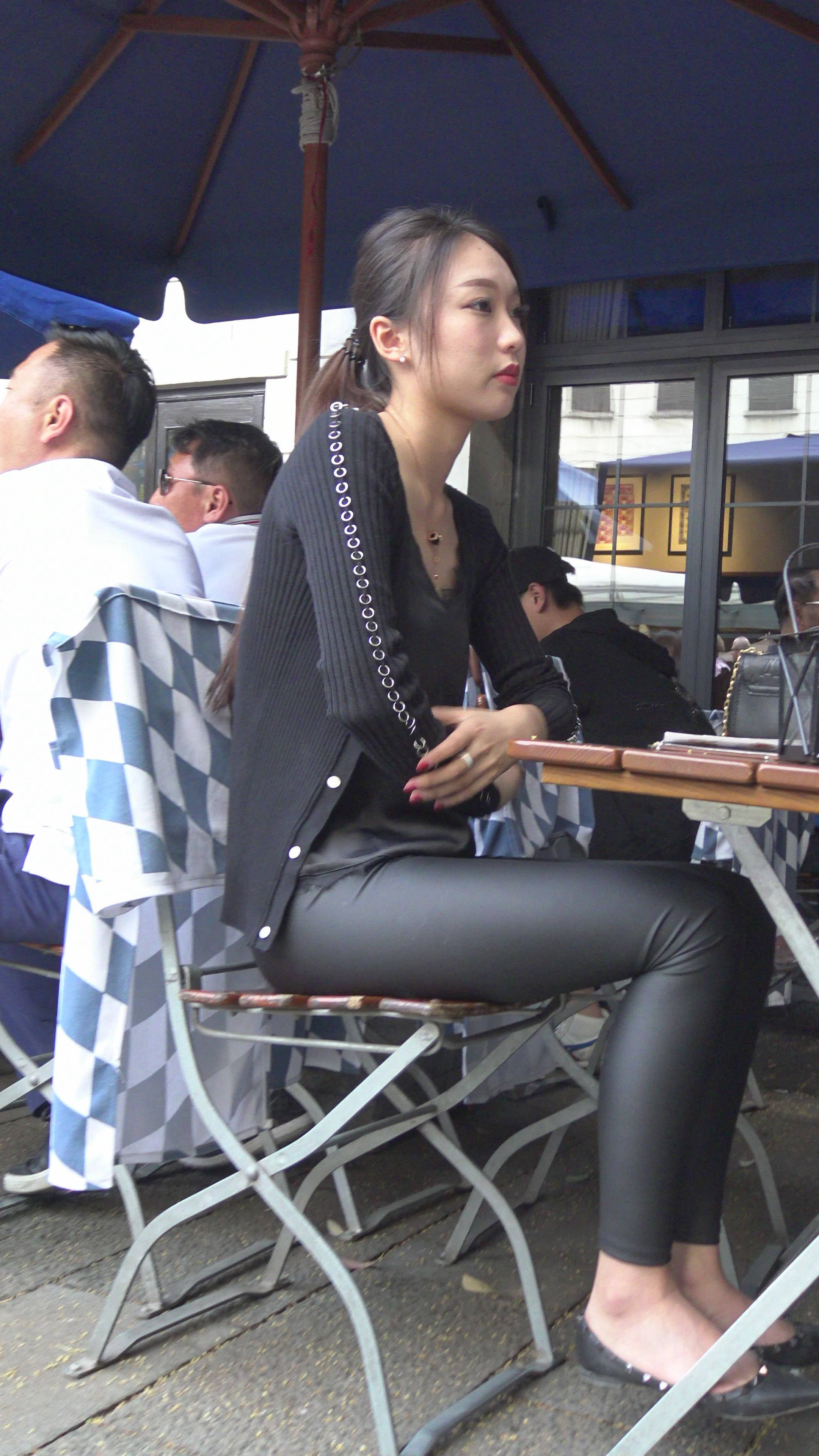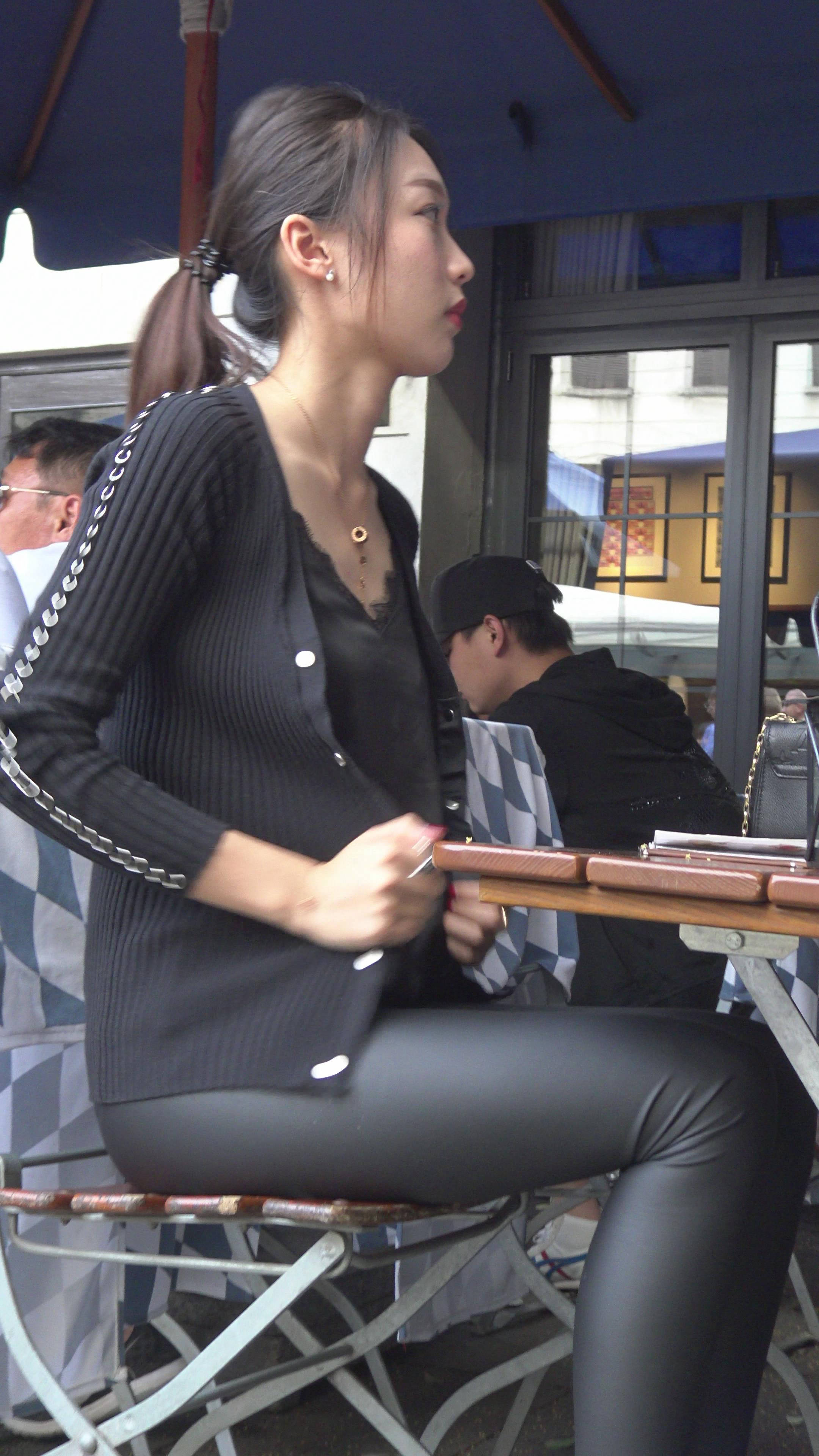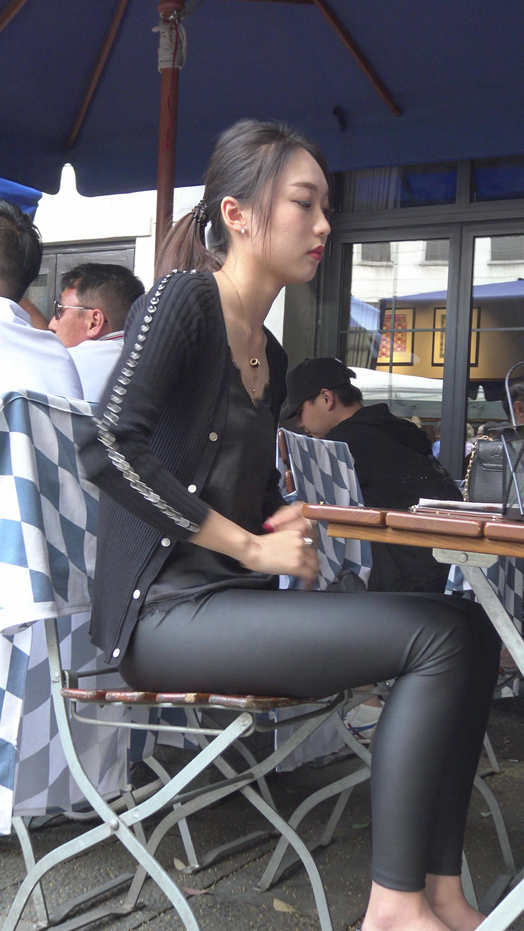 4K - 紧身黑色皮裤小清新美女2 编号7912