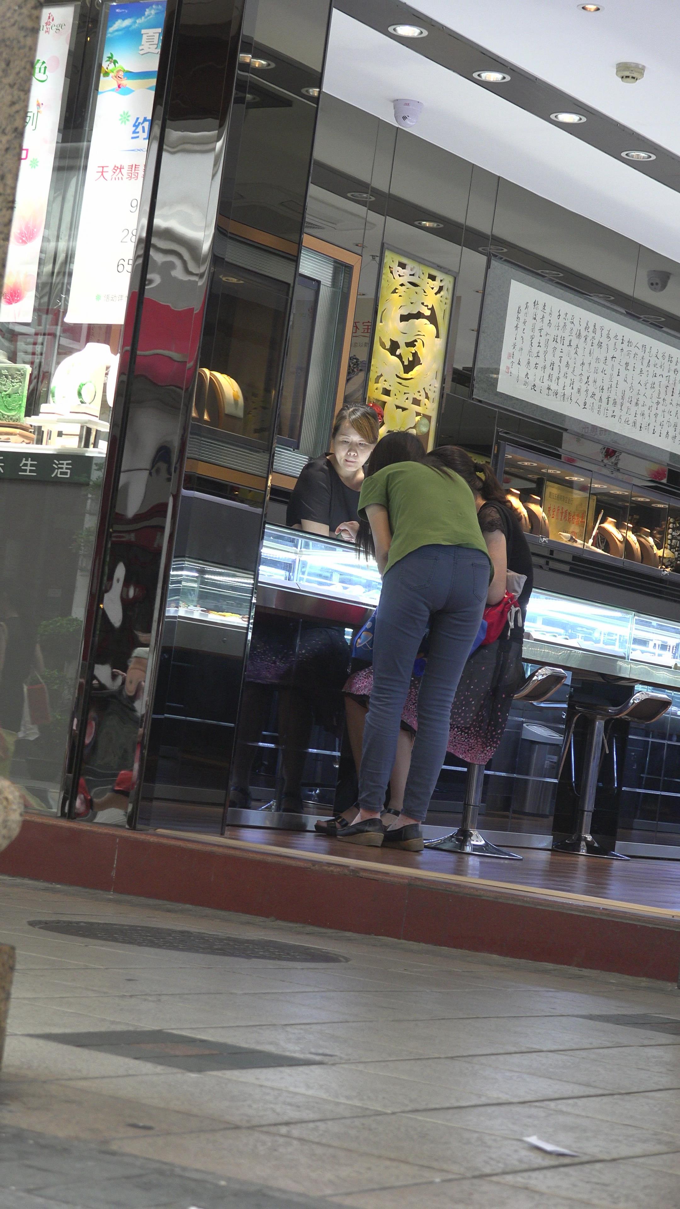 4k-首饰店内极品紧身蓝牛美女 编号3134