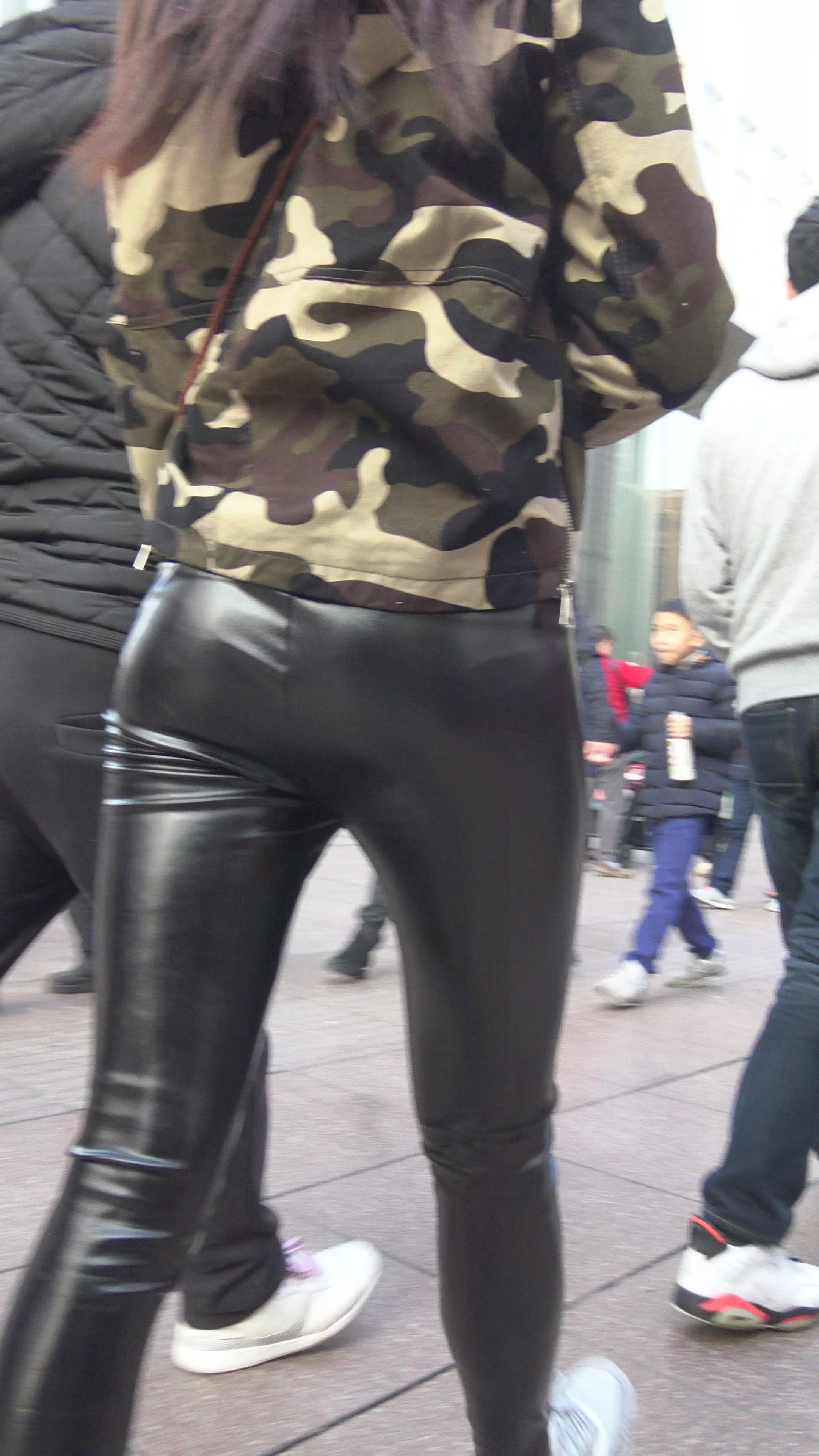 4K 街拍皮裤迷彩服鸭舌帽运动鞋小姐姐 编号3146