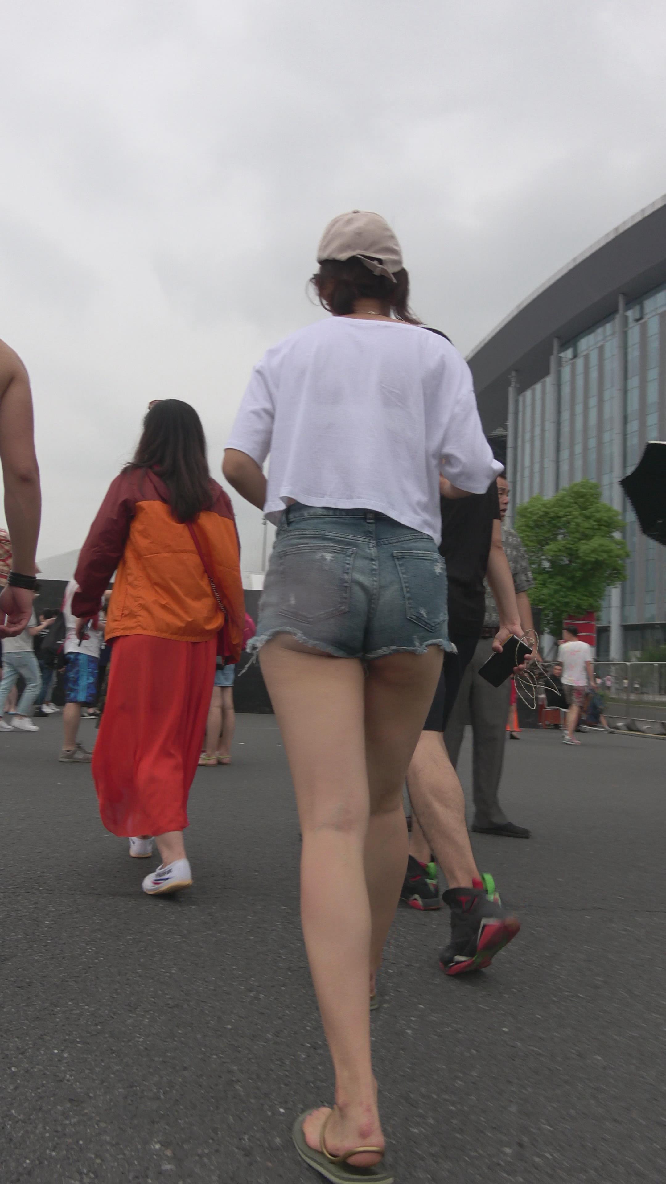 4K 超短牛仔热裤肉臀鸭舌帽小妹 编号3148
