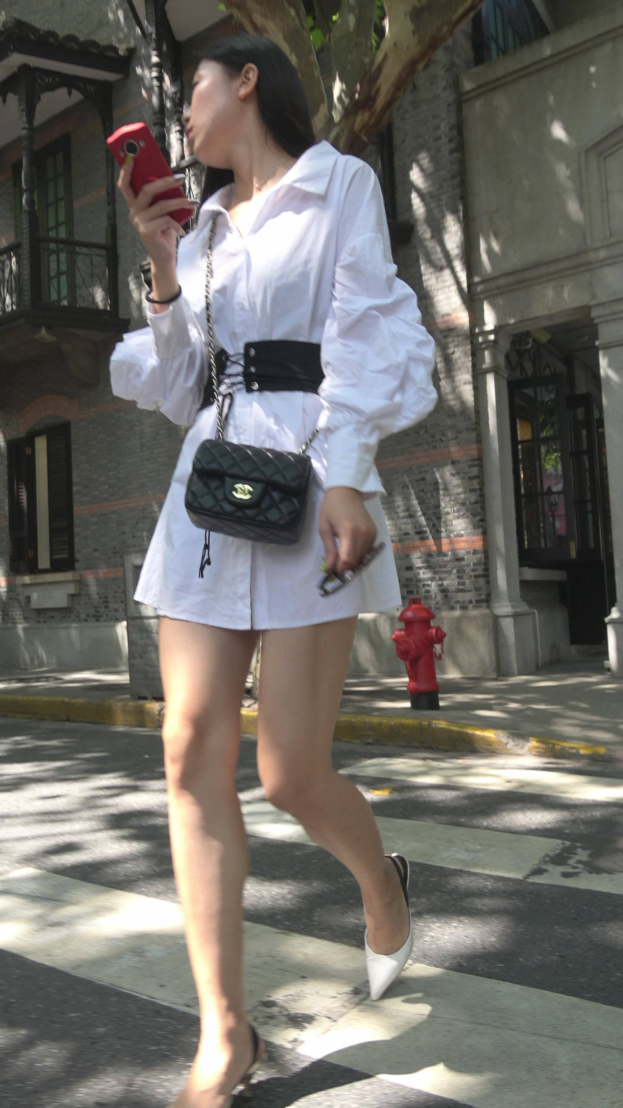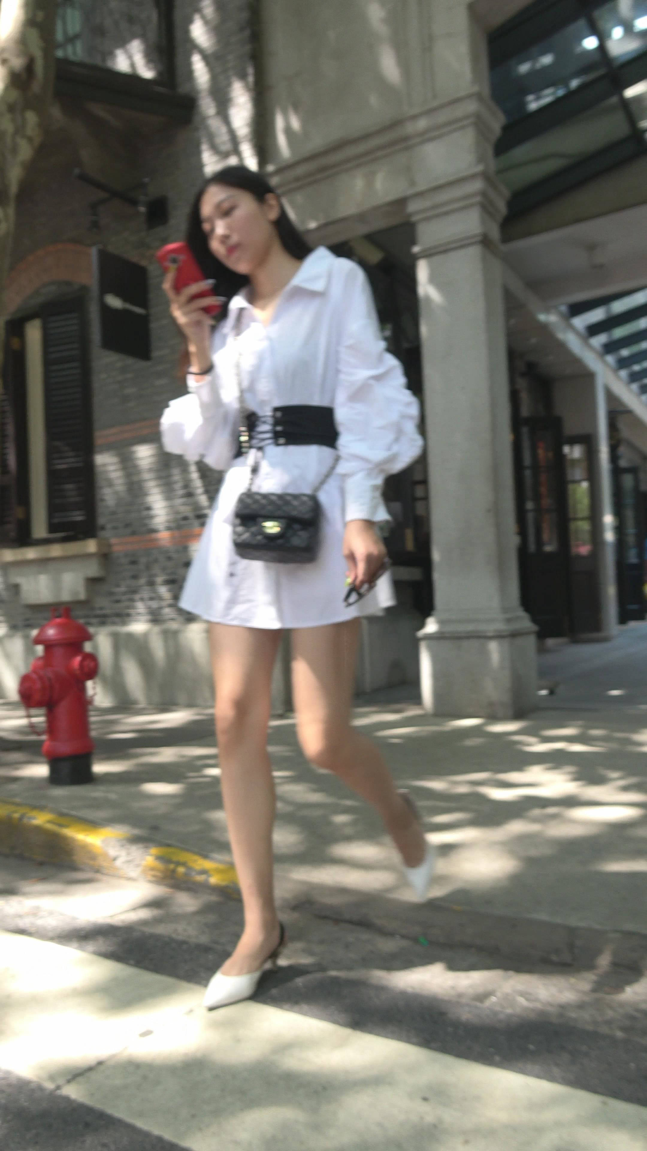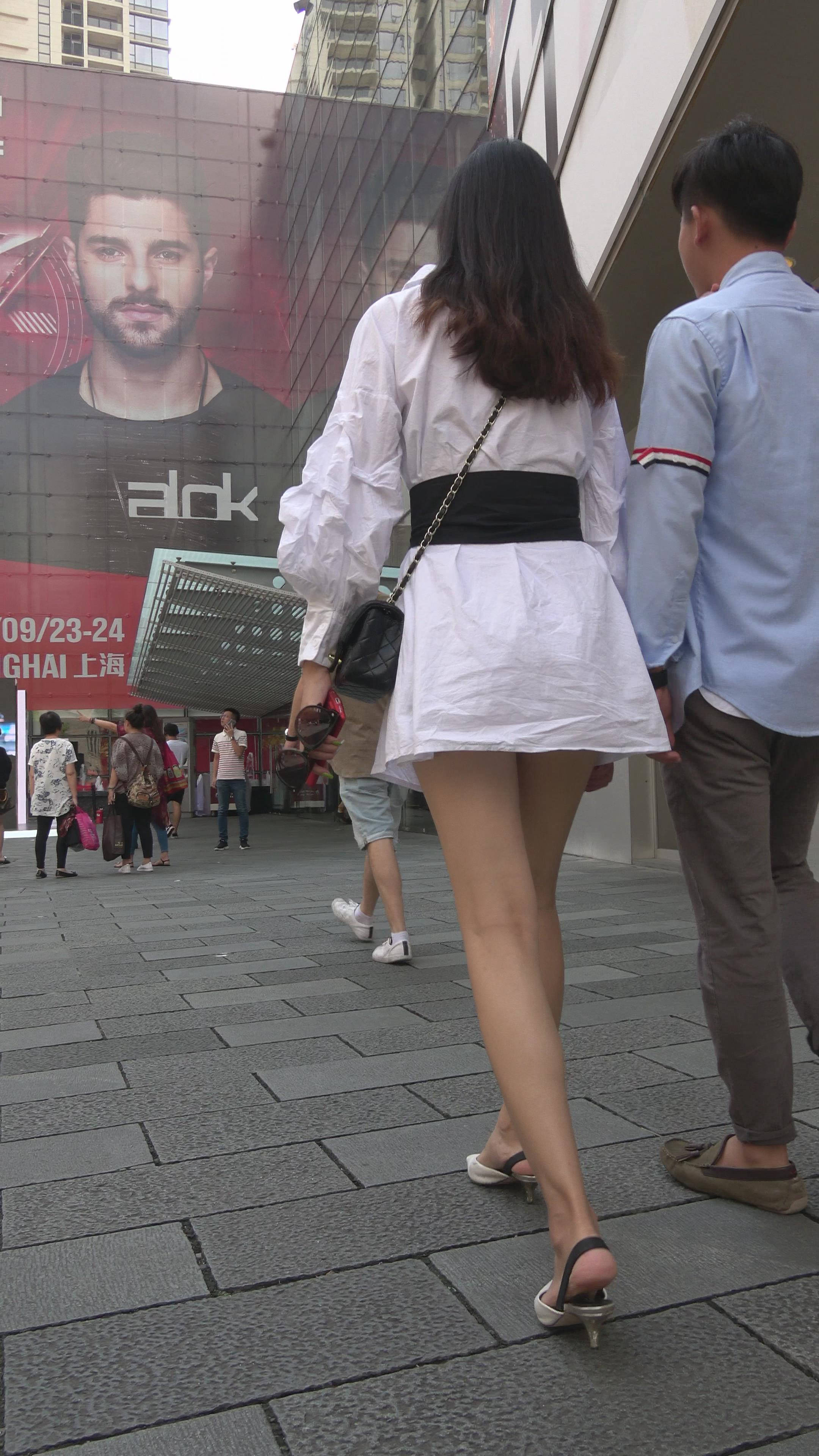 4K - 白色连衣裙街拍凉高跟美腿姑娘 编号7914