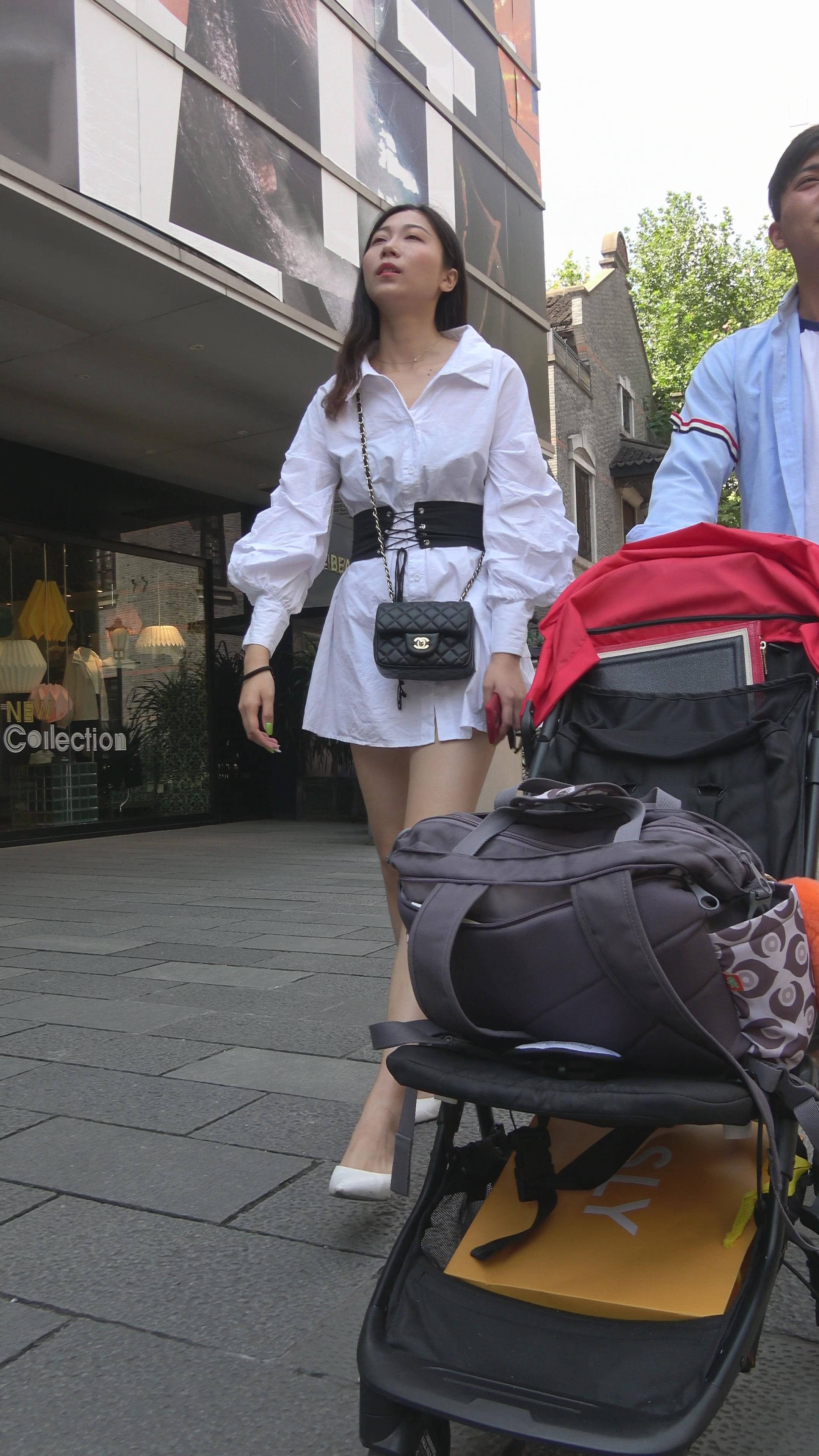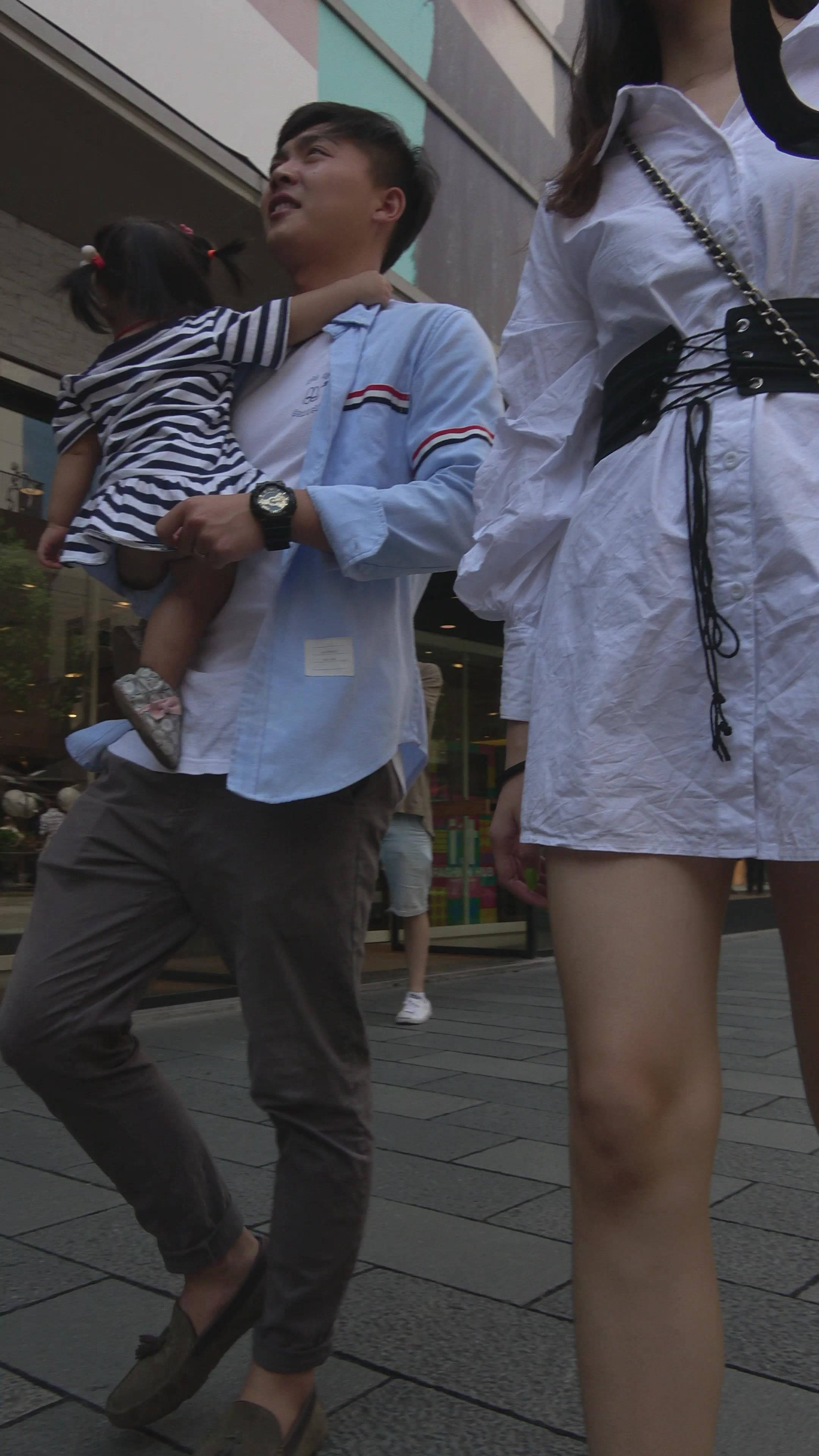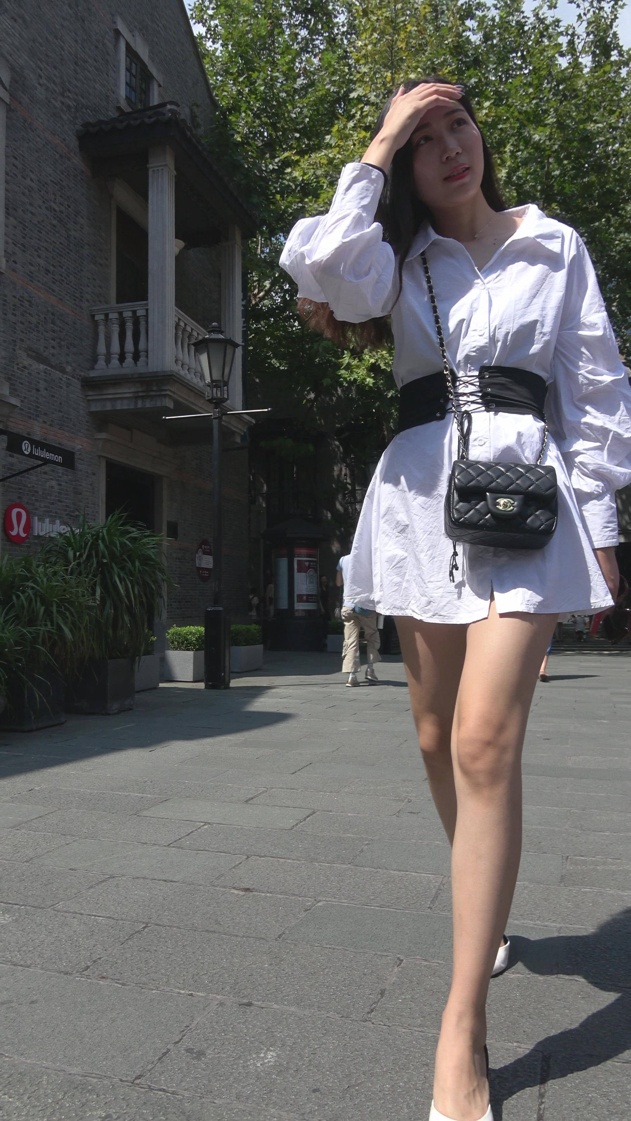 4K - 白色连衣裙街拍凉高跟美腿姑娘 编号7914
