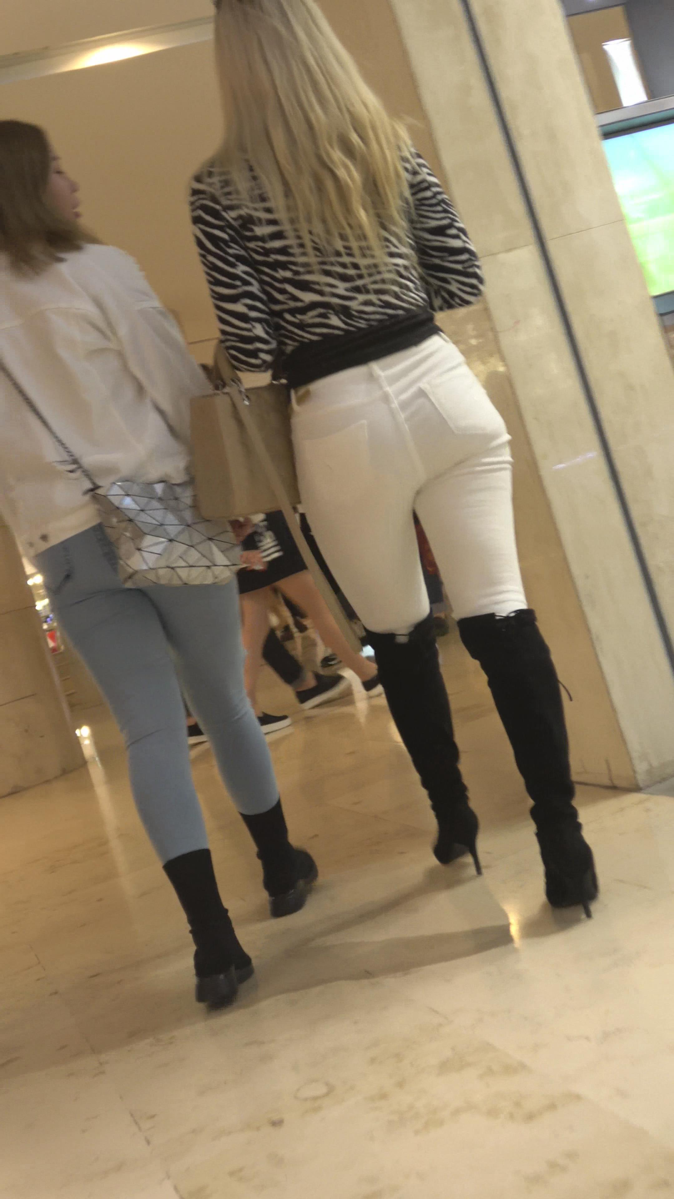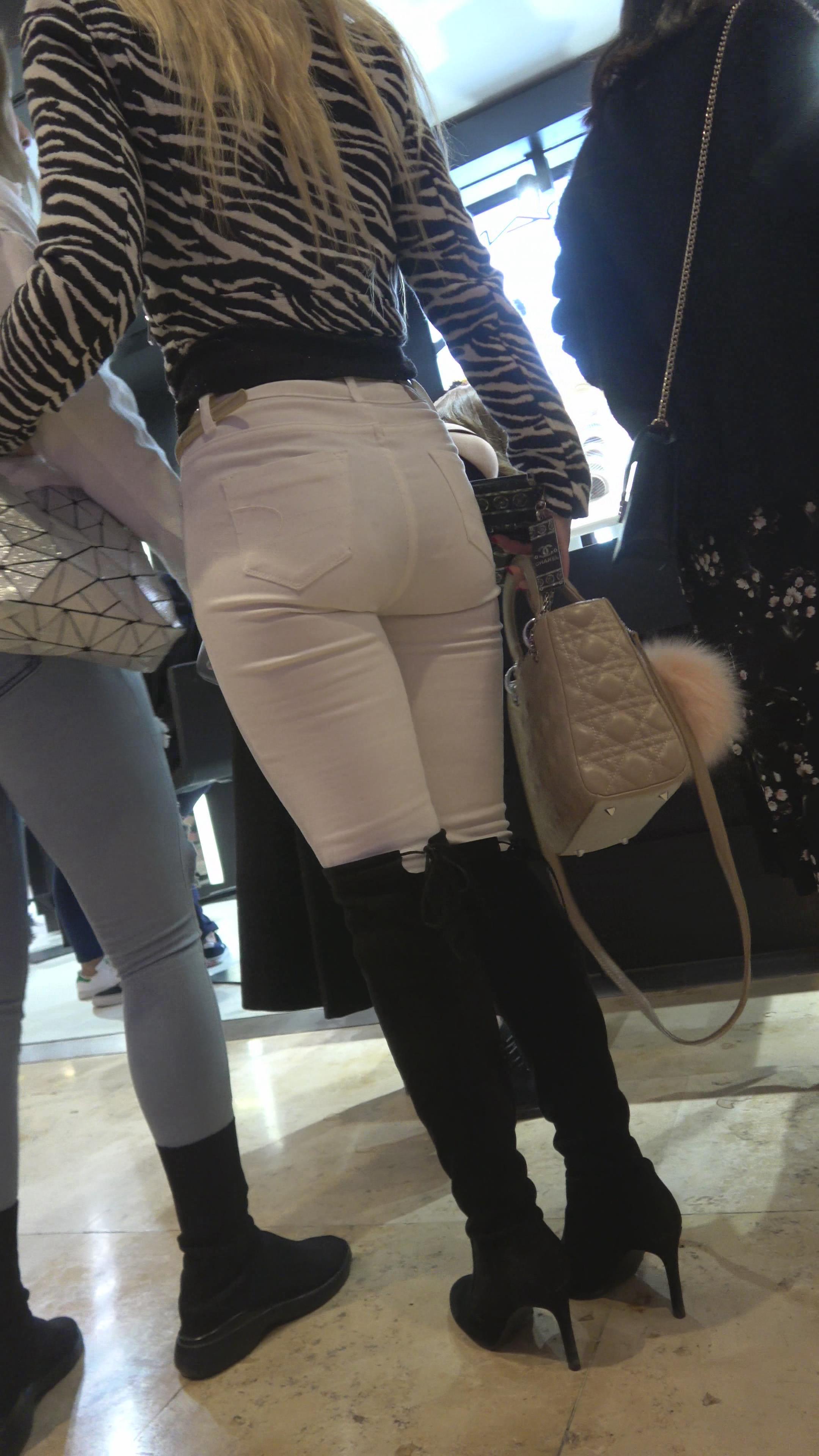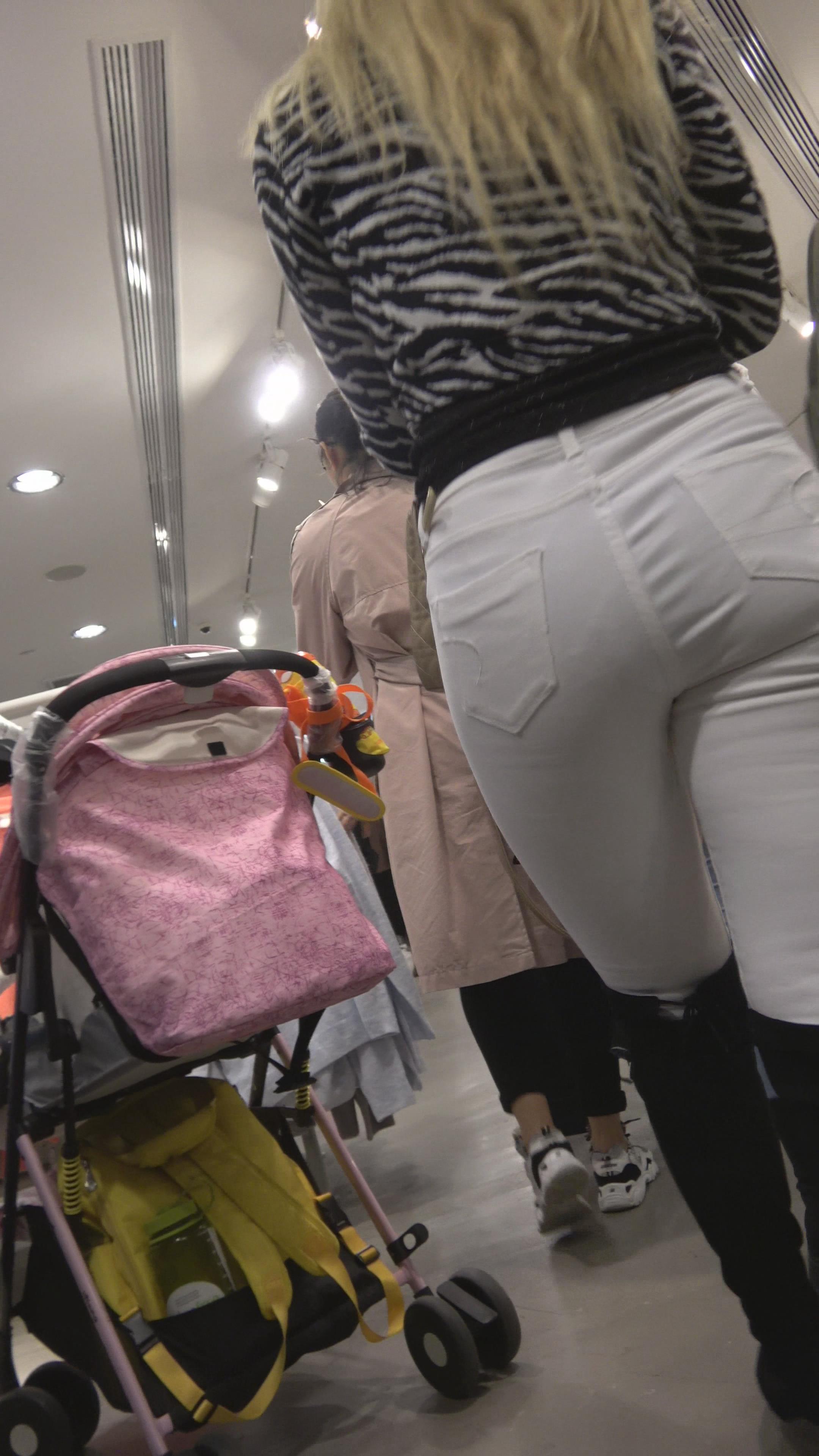 4K 逛商场偶遇的极品圆臀紧身白裤洋妞 编号3157
