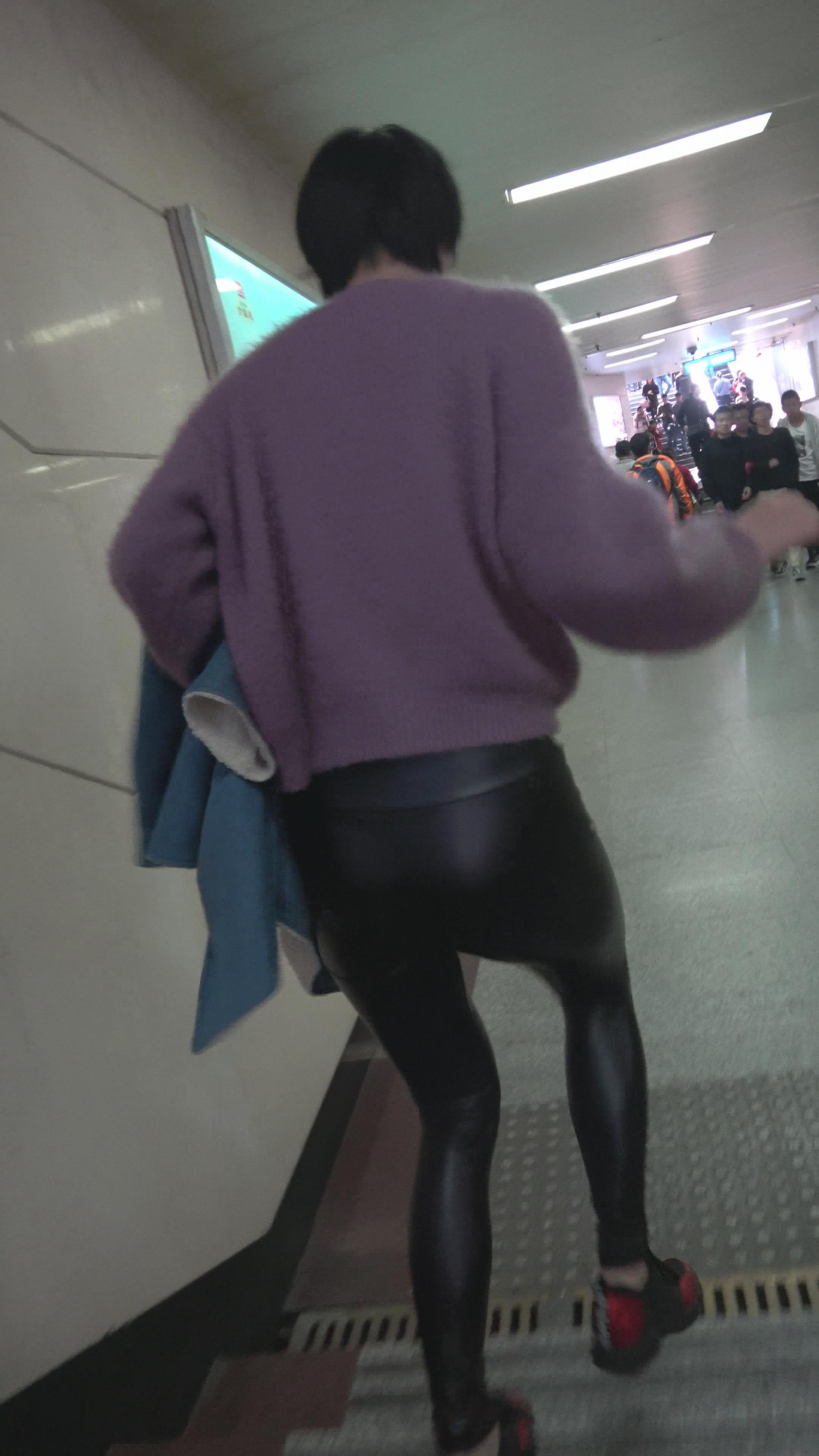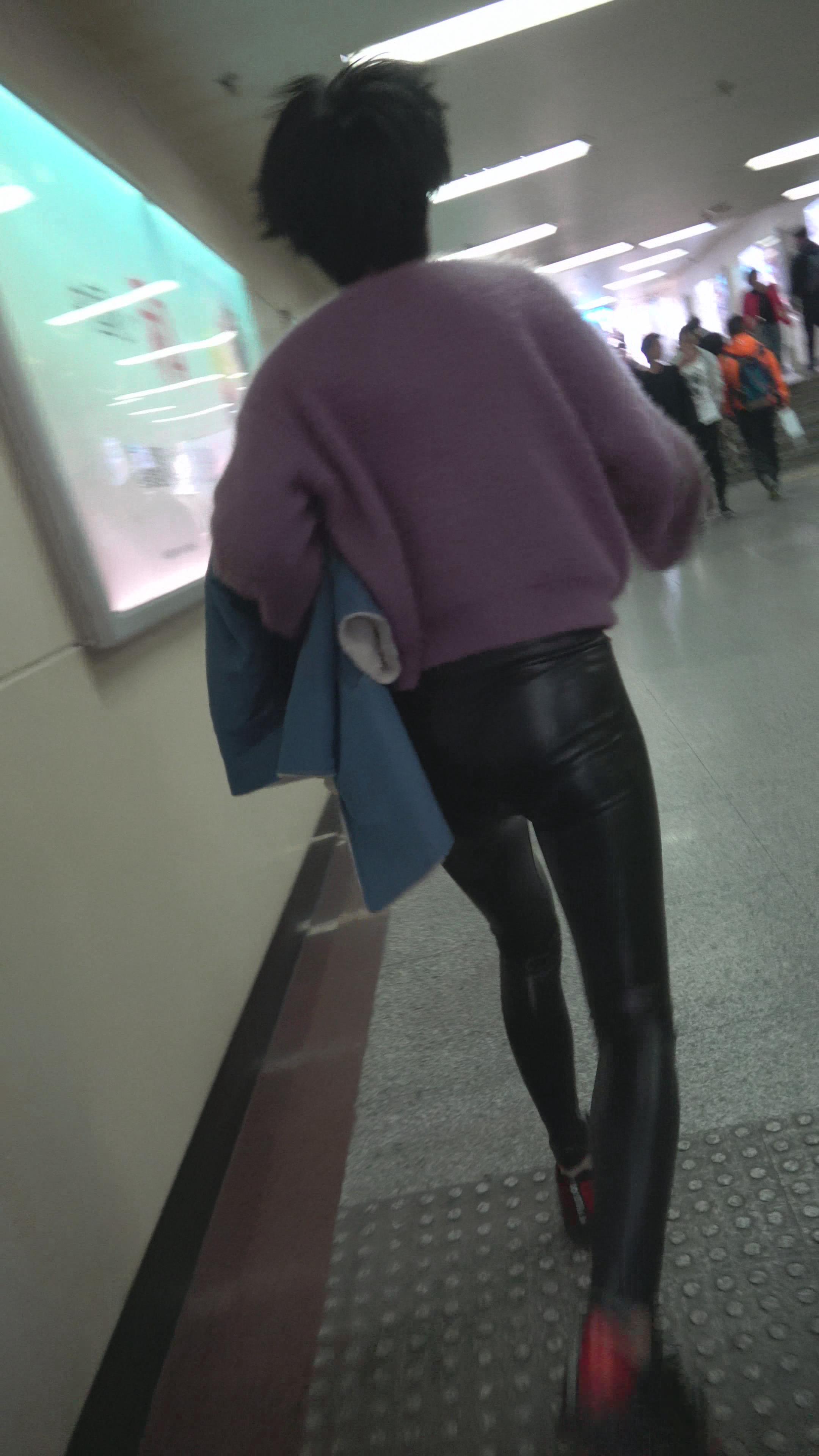 4K 黑色皮裤街拍美臀姑娘 编号3167