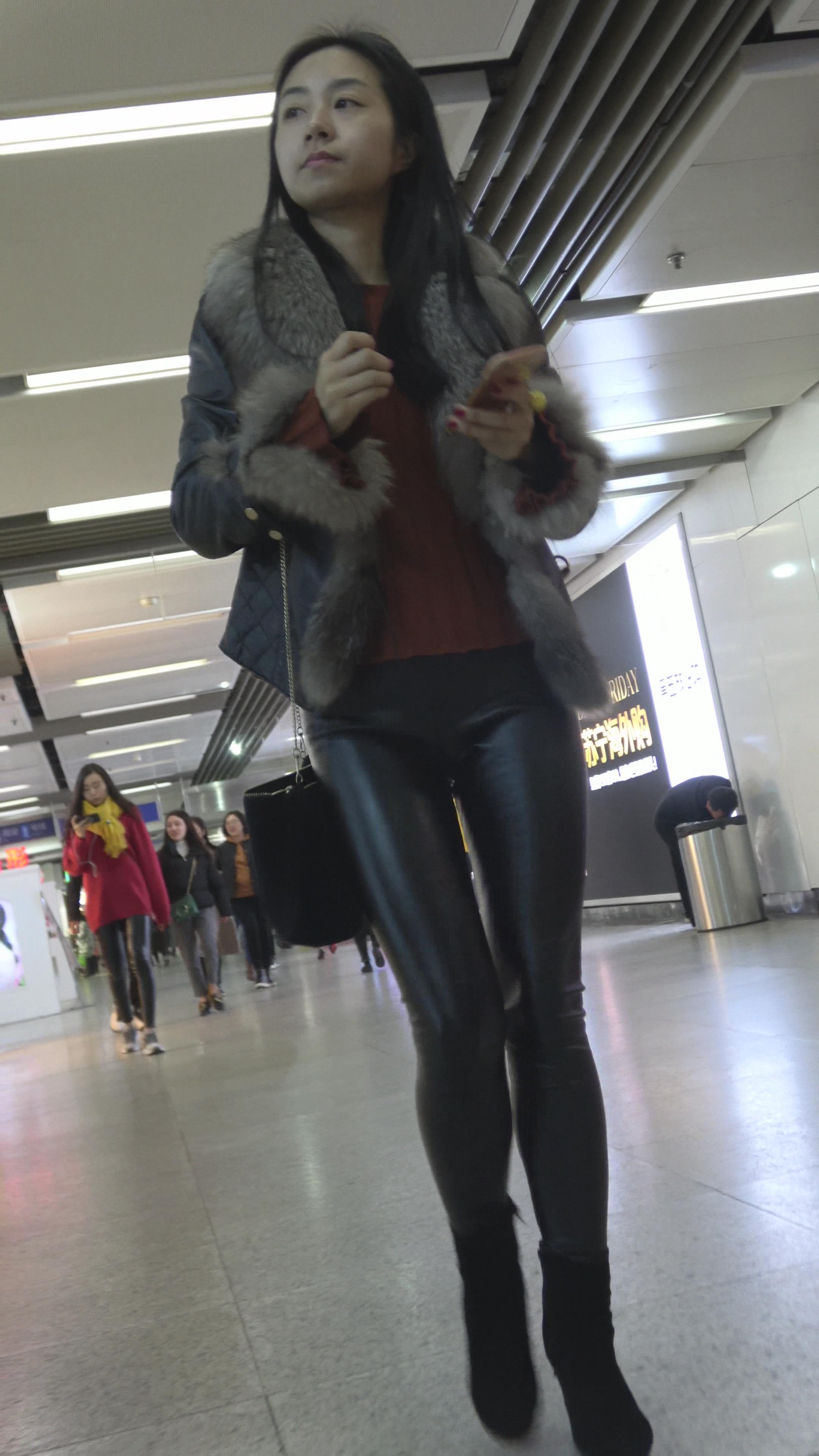 4K 街拍皮裤紧身美女逛街 编号3168