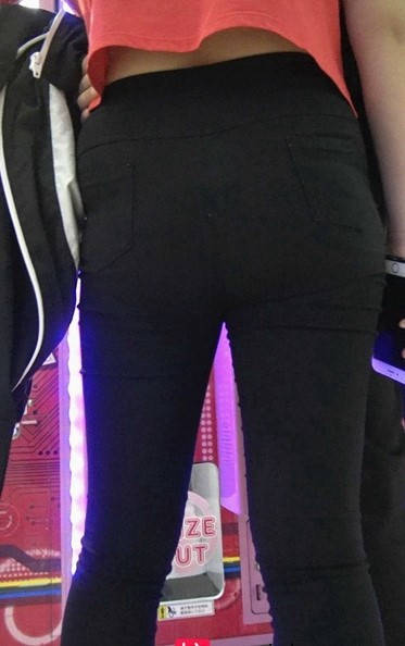 游乐城翘臀黑裤女子 编号9075