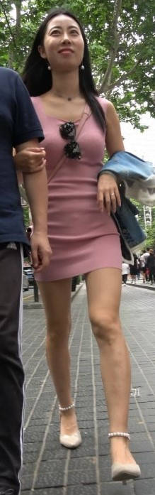 4K - 性感粉红包臀裙街拍高跟街拍美女 编号9419