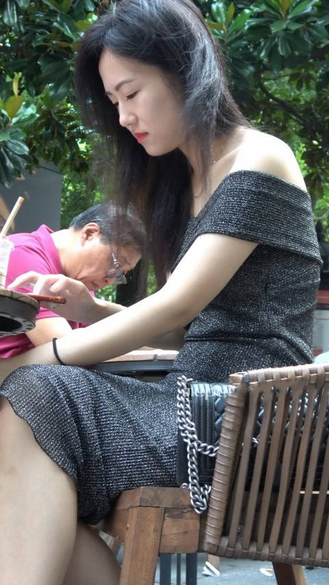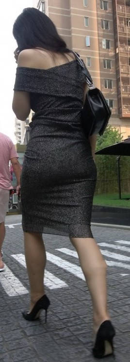 4K - 性感包臀长裙街拍高跟美女 编号9421
