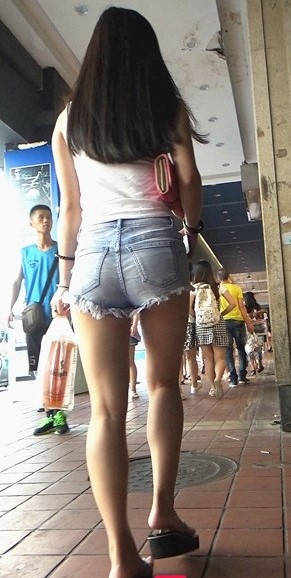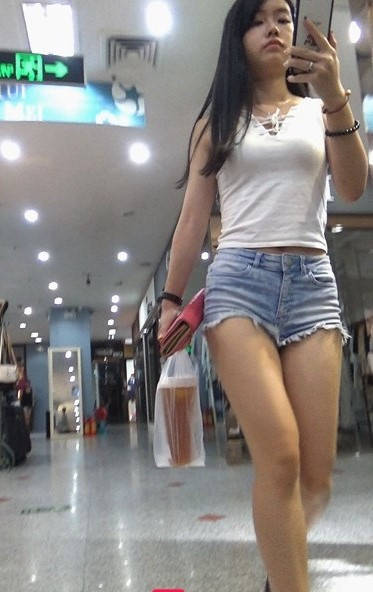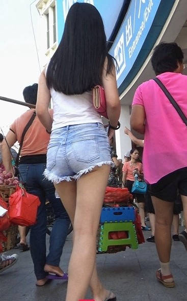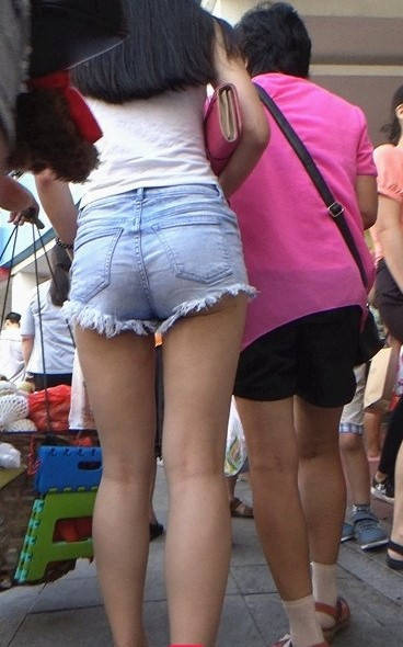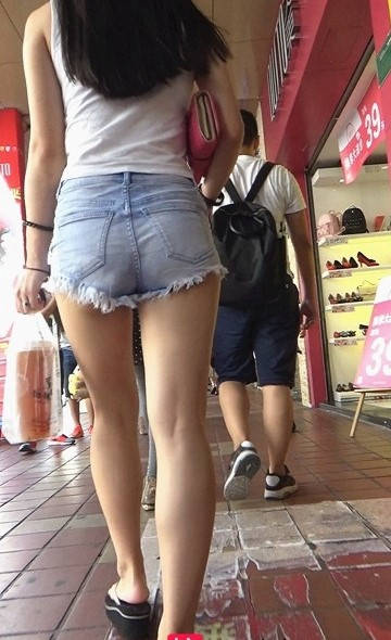 牛仔热裤圆润翘臀极品长发美女 编号9107