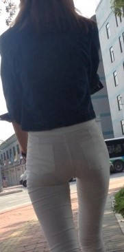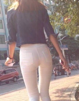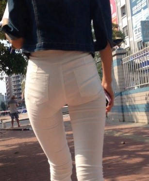 一路拍摄白色紧身裤翘臀美眉 编号9132