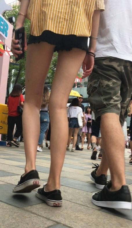 黑色帆布鞋配上修长 编号9185