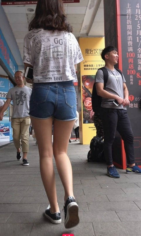 紧身牛仔热裤深沟妹子 编号9206