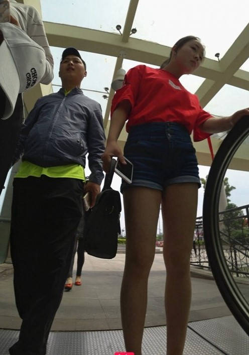 4K-红衣牛仔热裤大长腿年轻美眉 编号9250