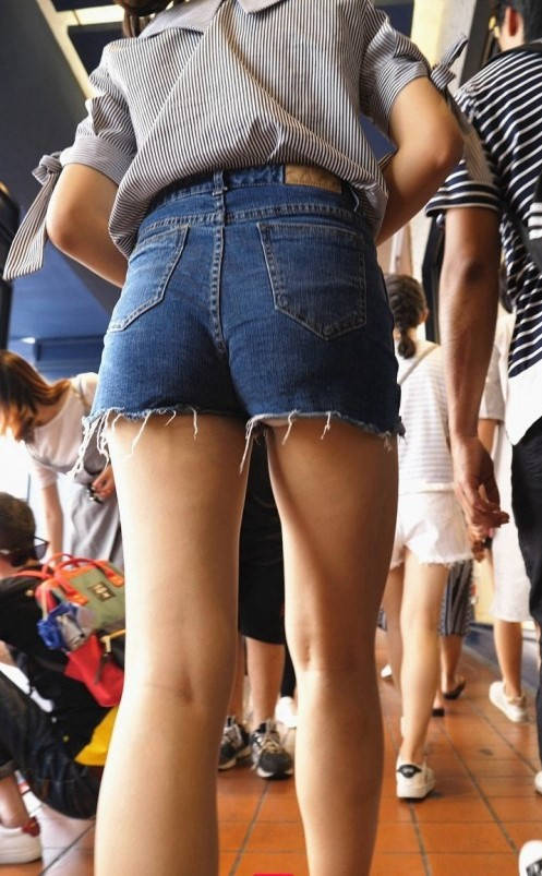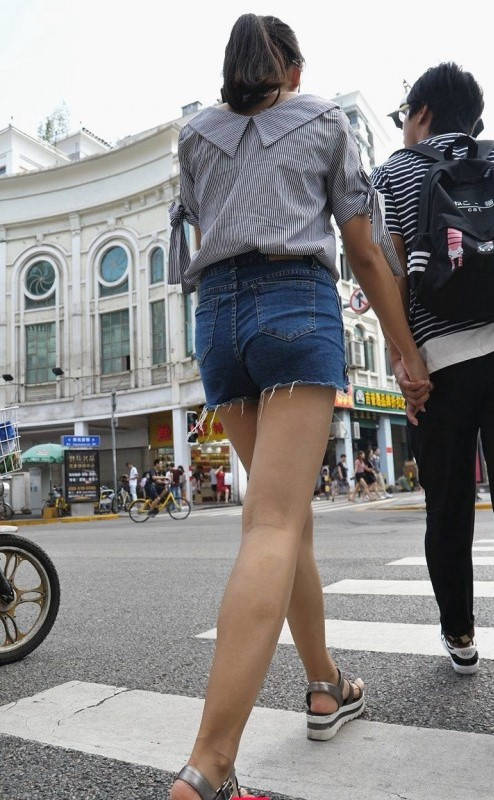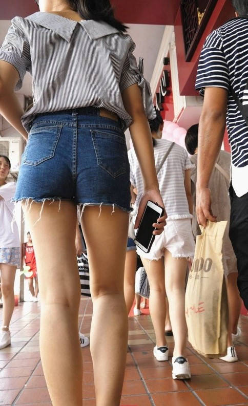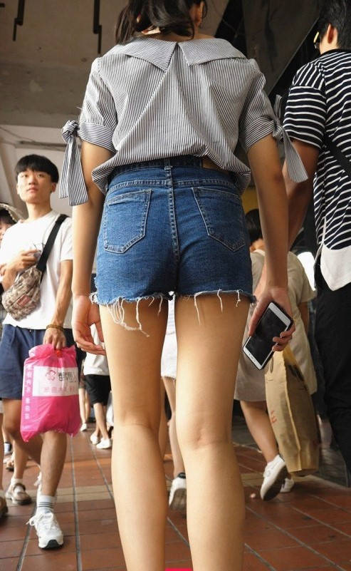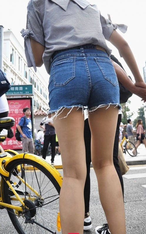 4K-长腿牛仔热裤紧臀年轻美眉 编号9270