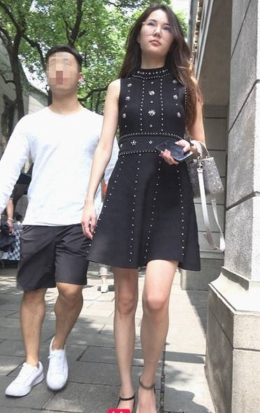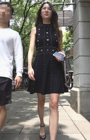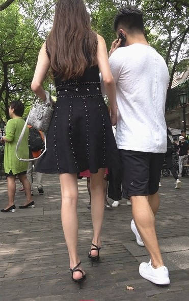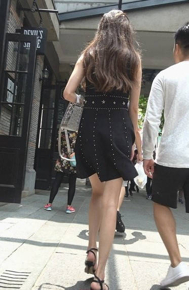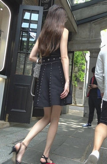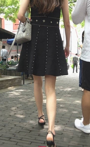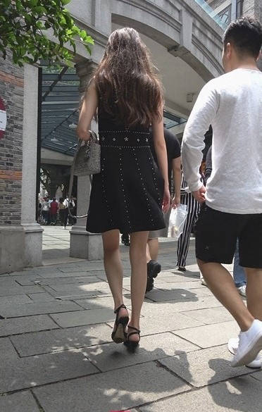 4K-气质黑色连衣裙高跟街拍美女 编号9308