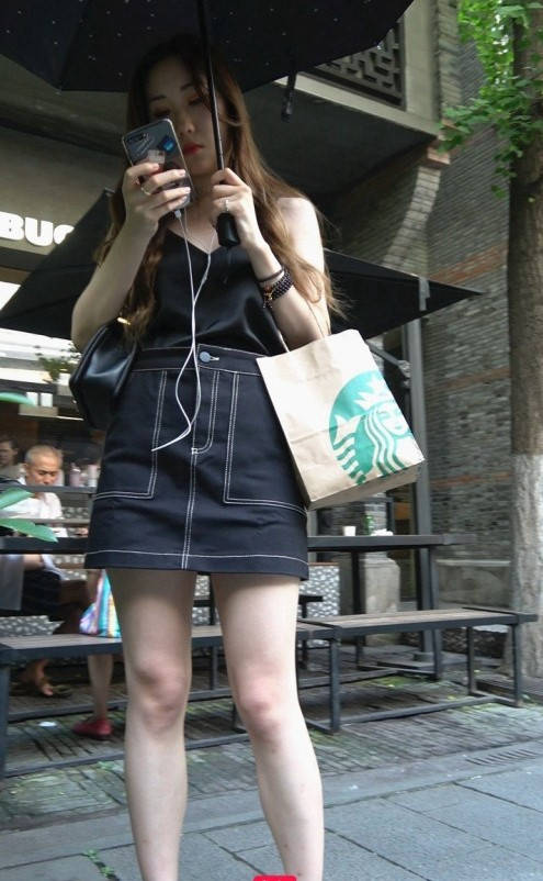 K-街拍牛仔短裙白皙长腿高跟美女 编号9322