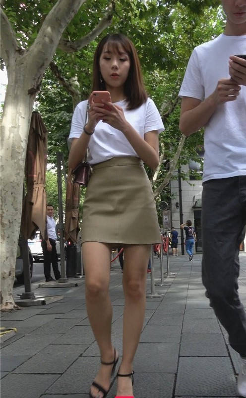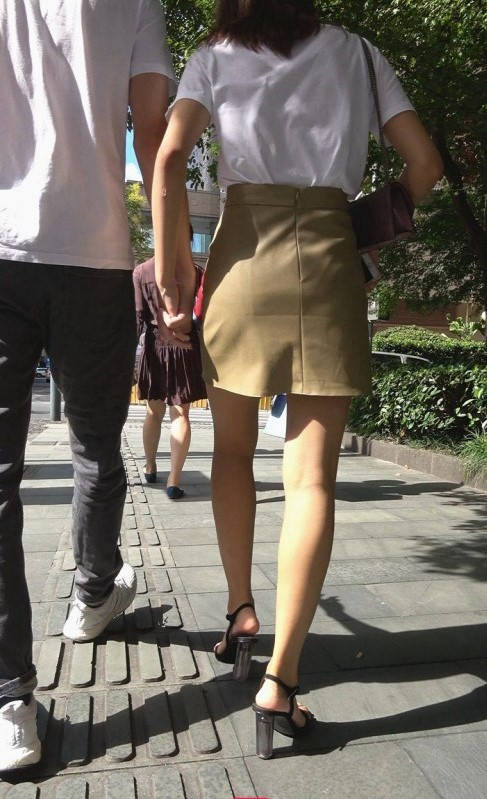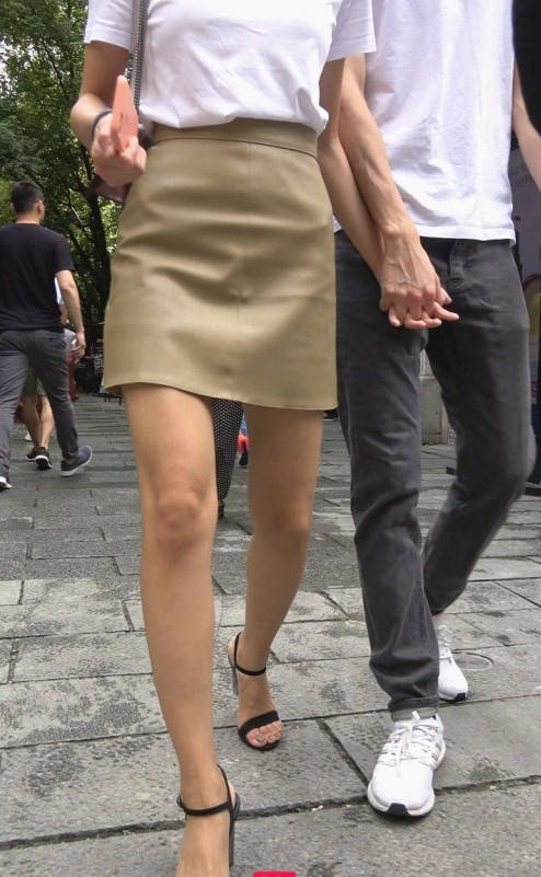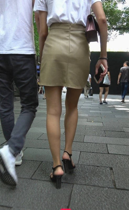4K-皮短裙长腿高跟街拍美女 编号9324