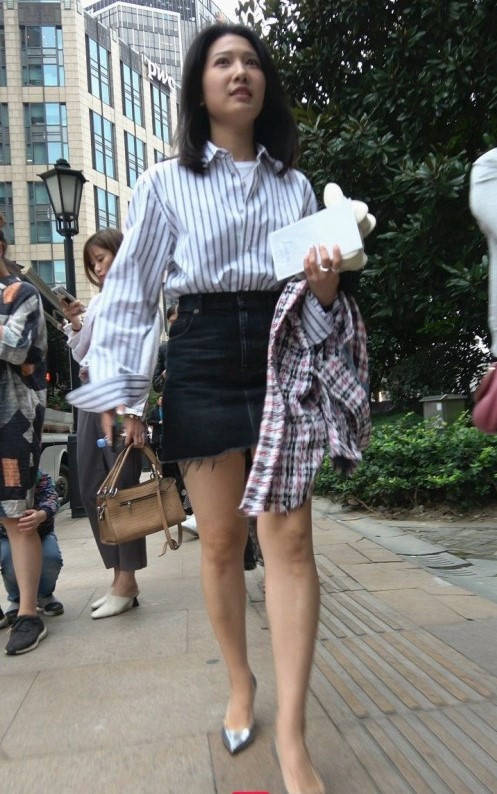 4K-街拍牛仔短裙银色高跟美女 编号9338
