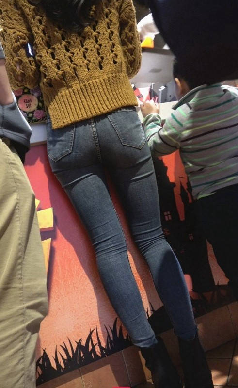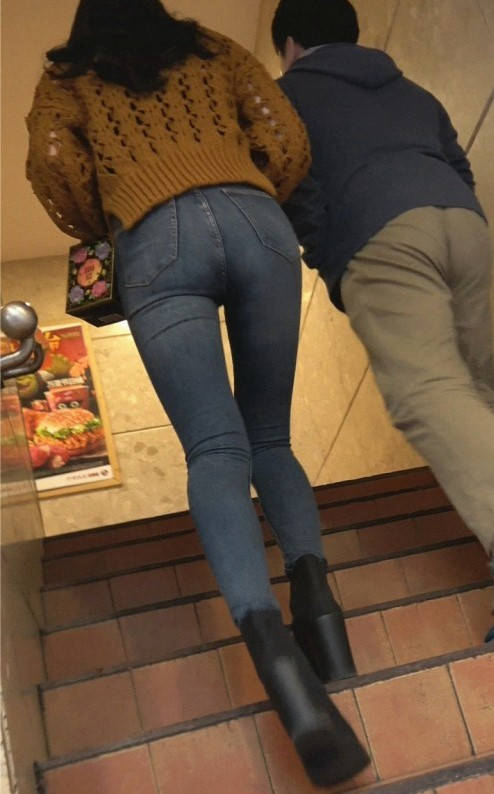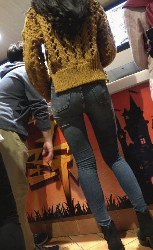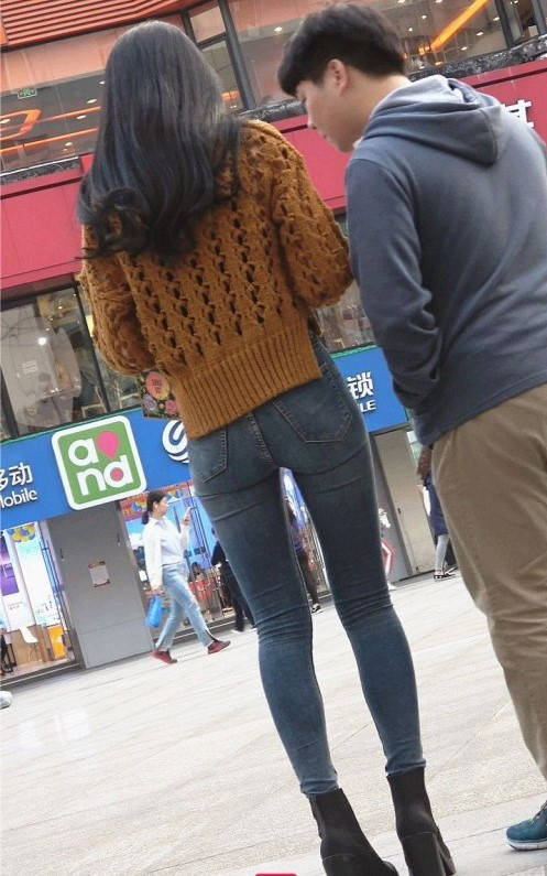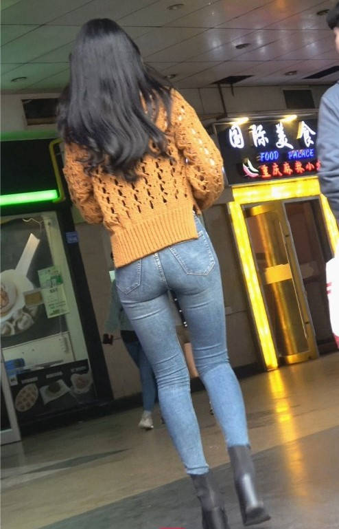 4K-蓝色紧身裤极品圆润翘臀大长腿美女 编号9339