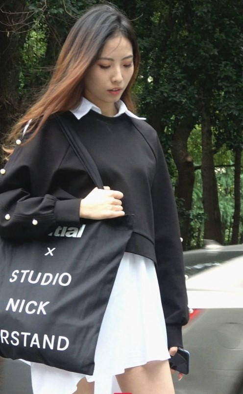 4K-白色连衣裙长腿皮靴街拍美女 编号9340
