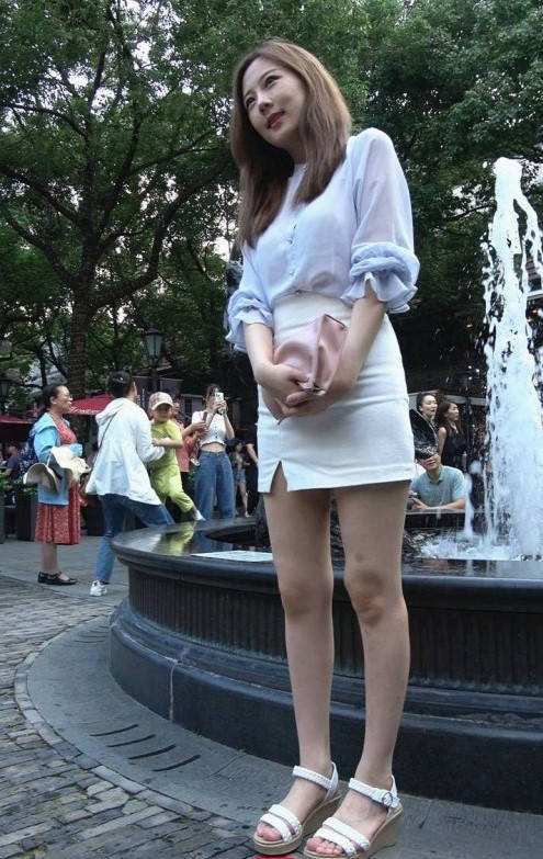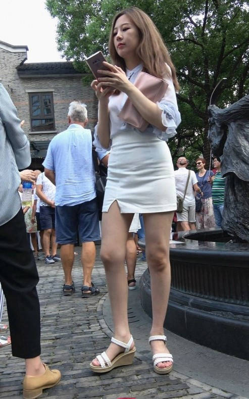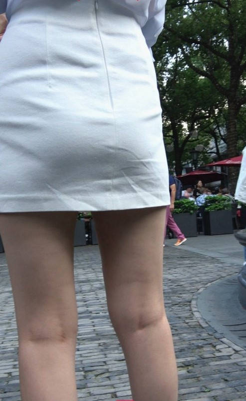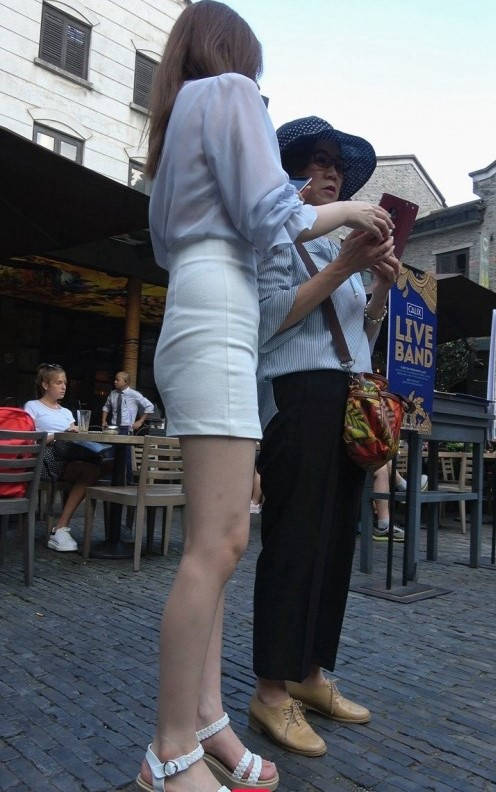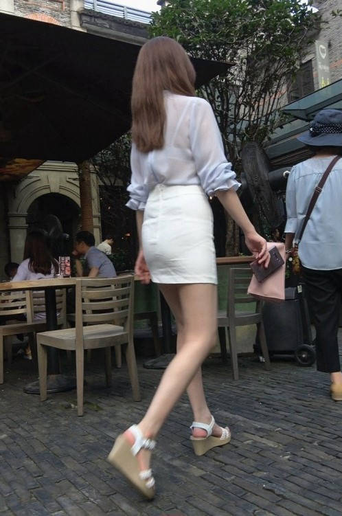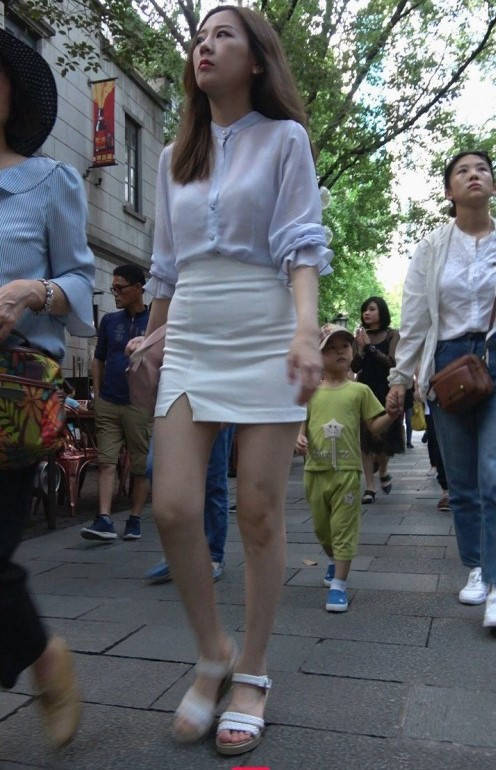 4K-性感透视衬衣短裙长腿街拍高跟美女 编号9367
