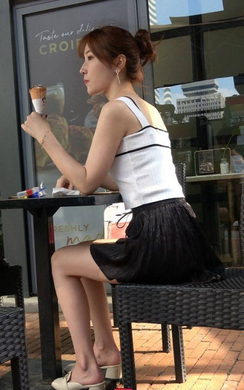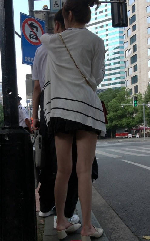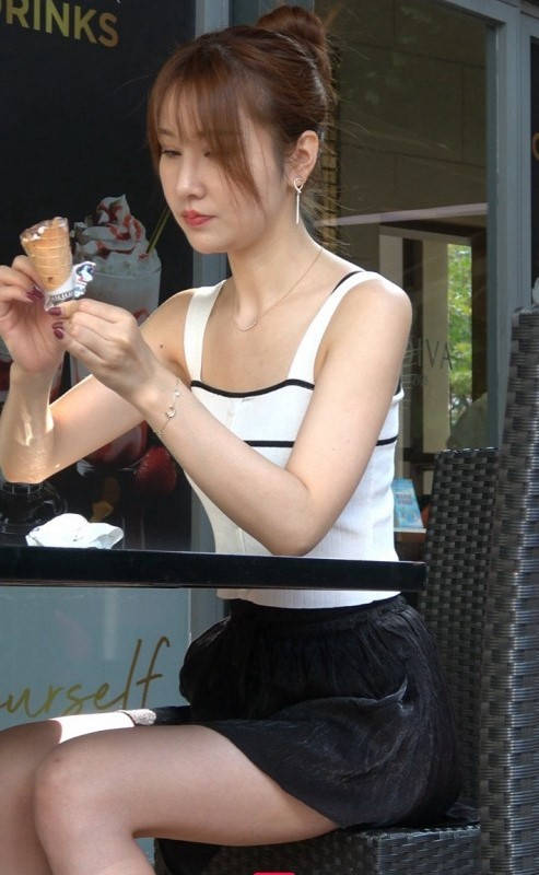 4K-性感短裙长腿街拍高跟美女吃冰激凌 编号9371