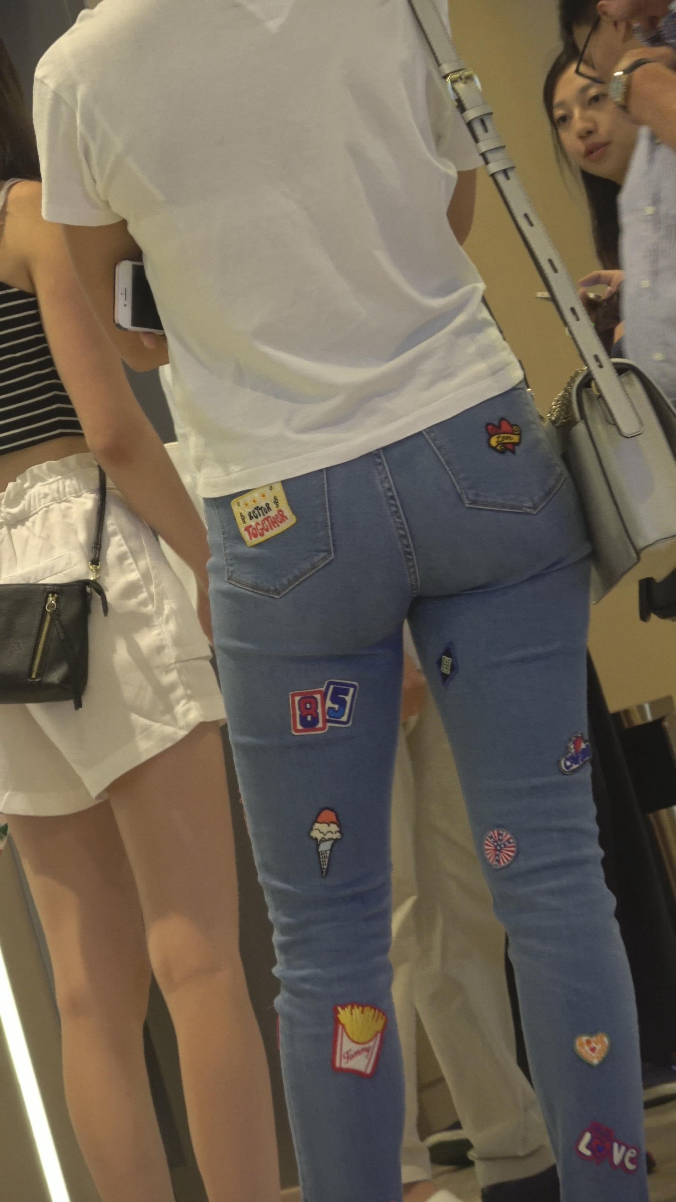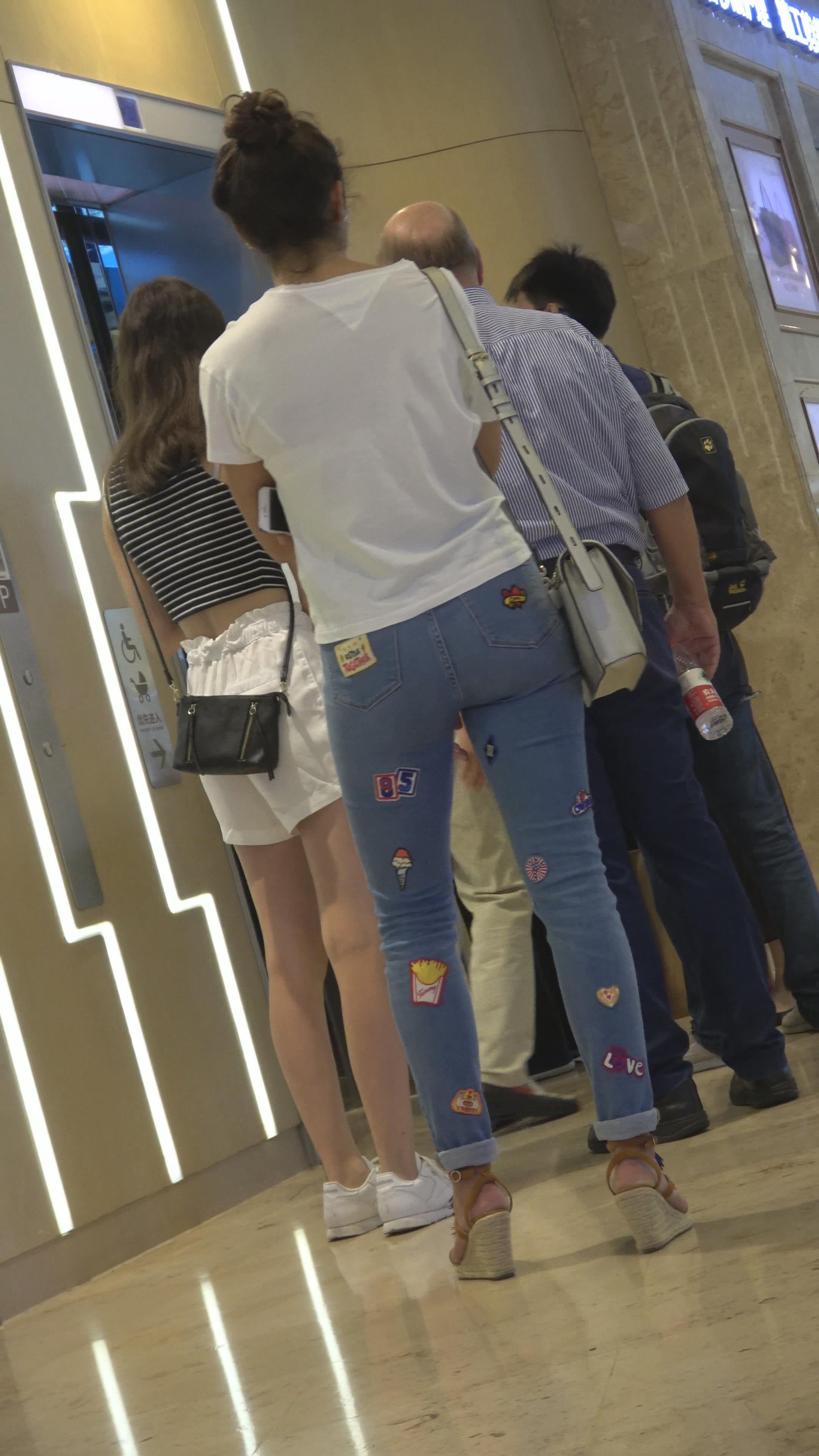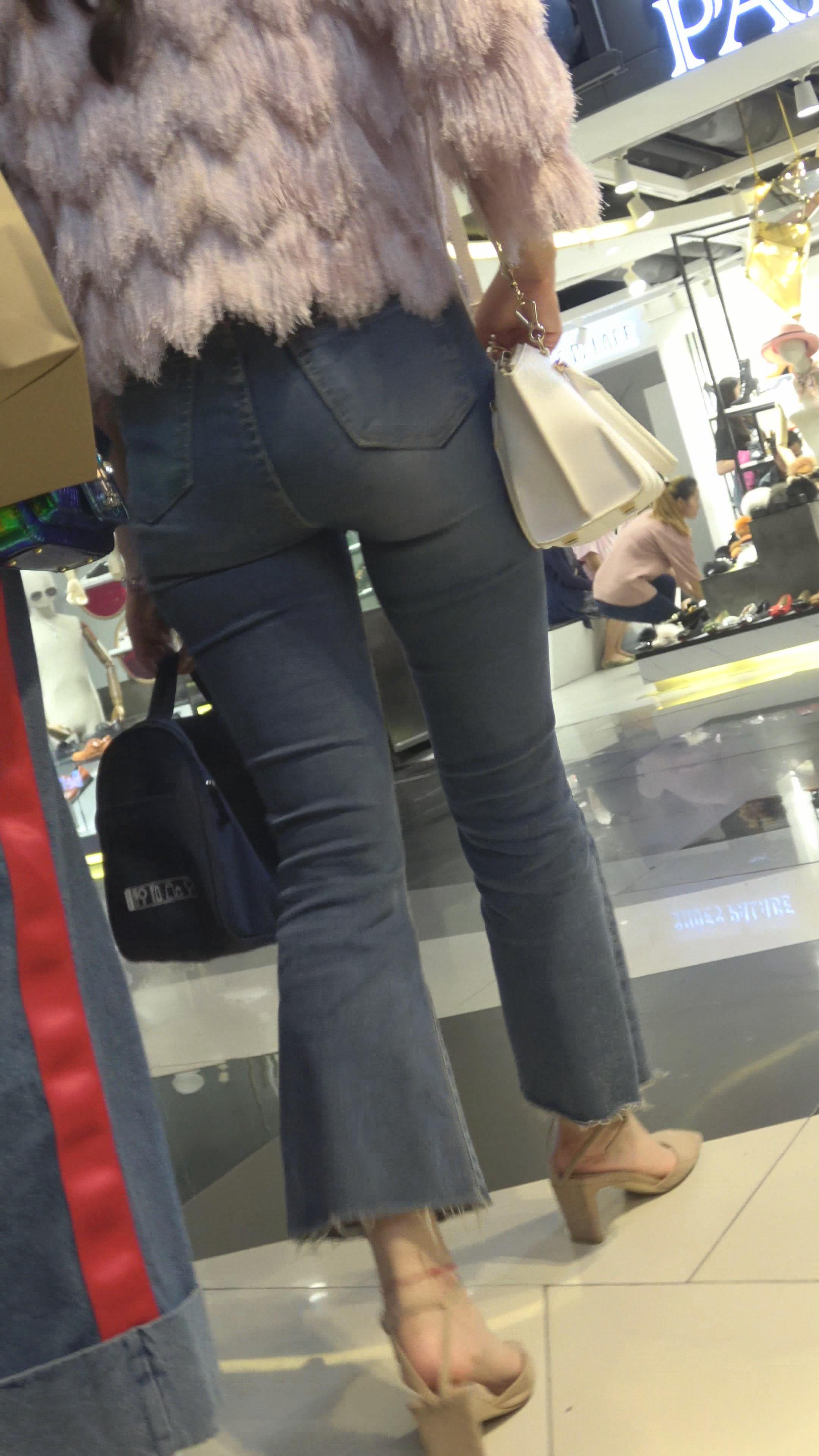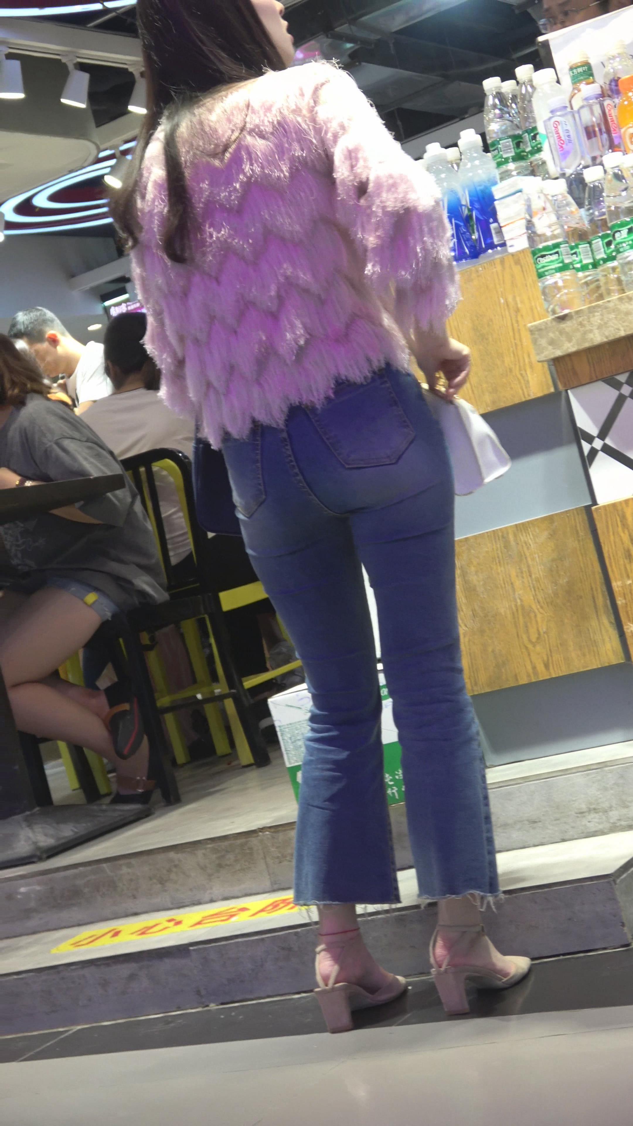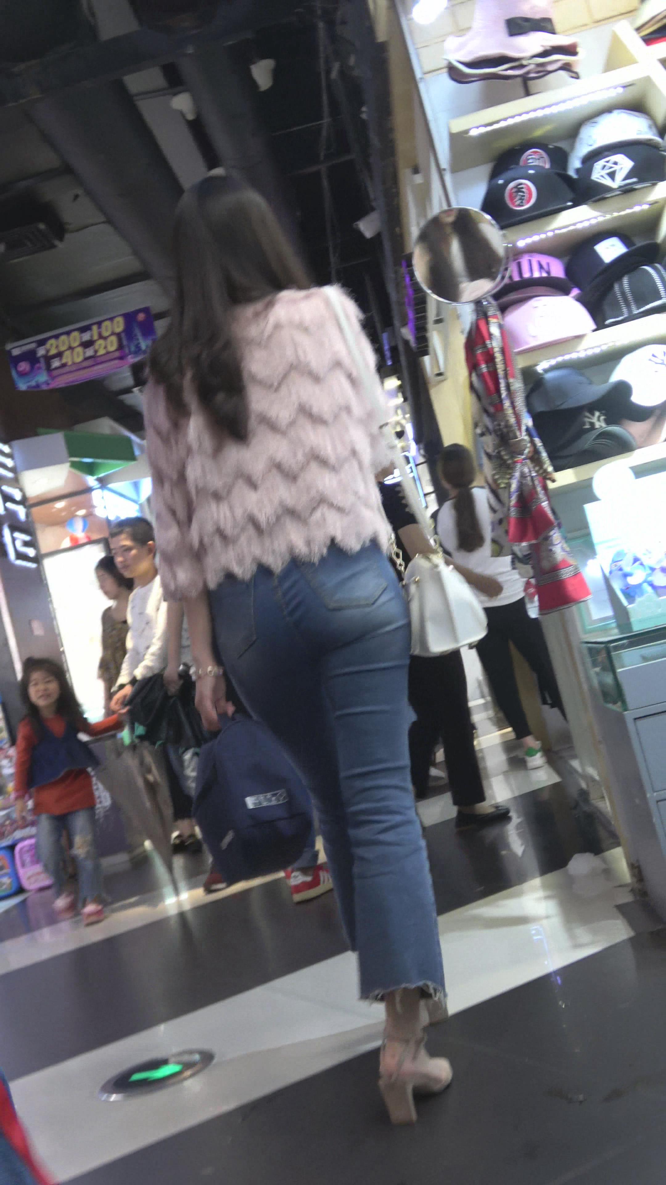 4K 街拍蓝色紧身牛仔裤凉高跟美女 编号3179