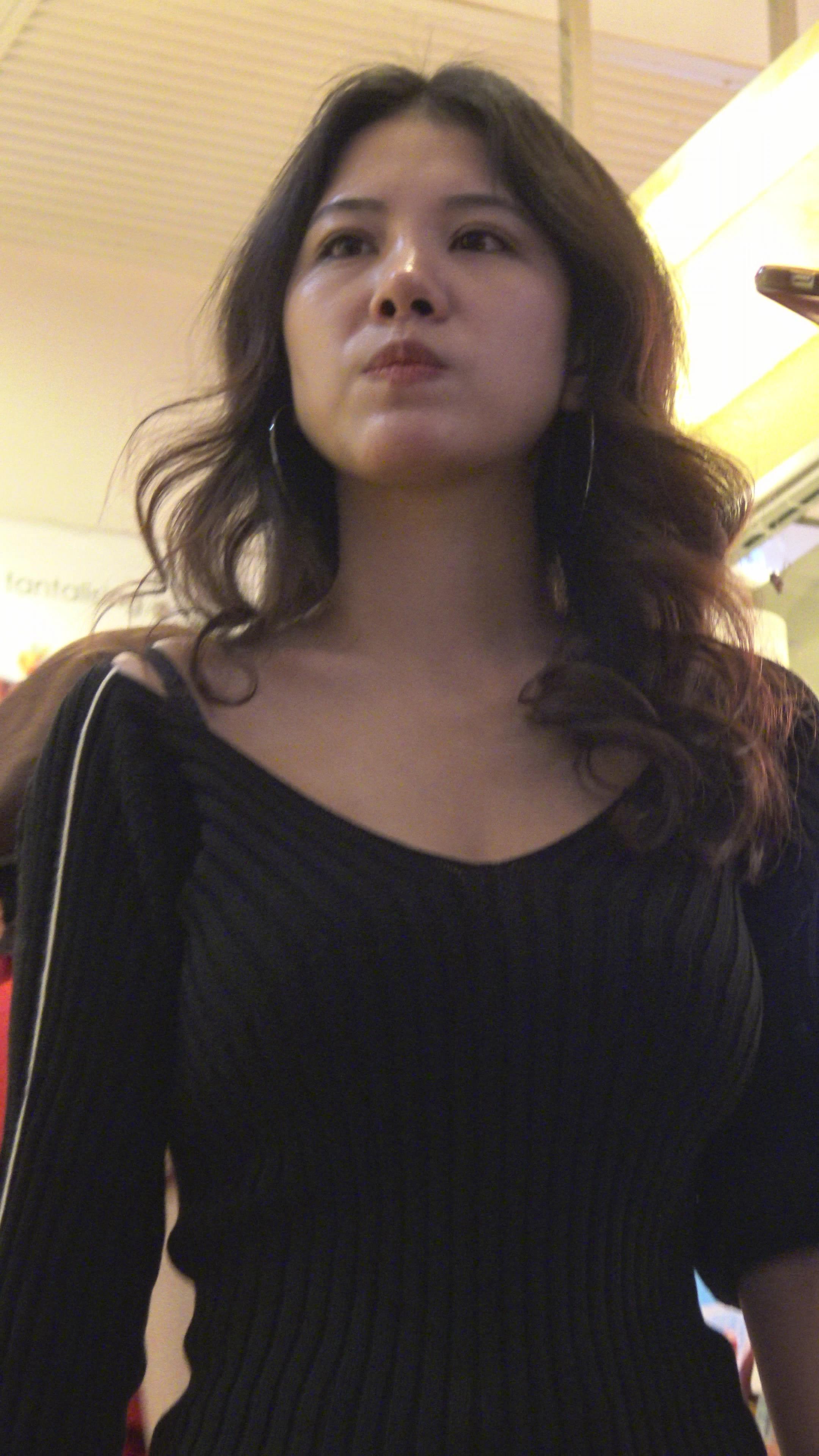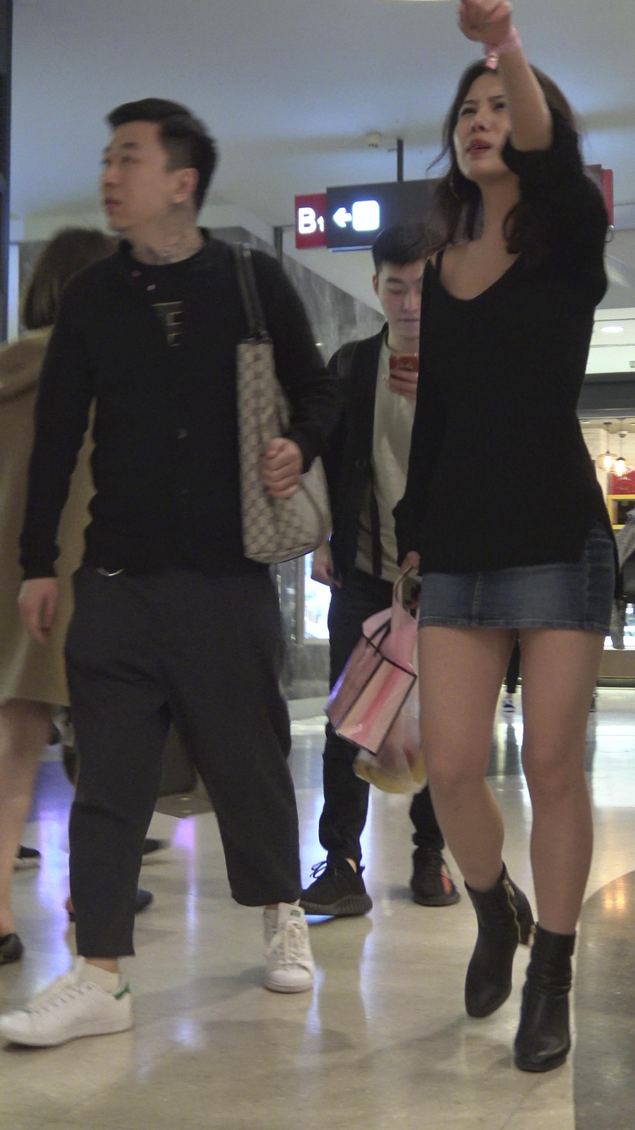 4K - 性感美腿黑T恤大美女逛商场 编号3187