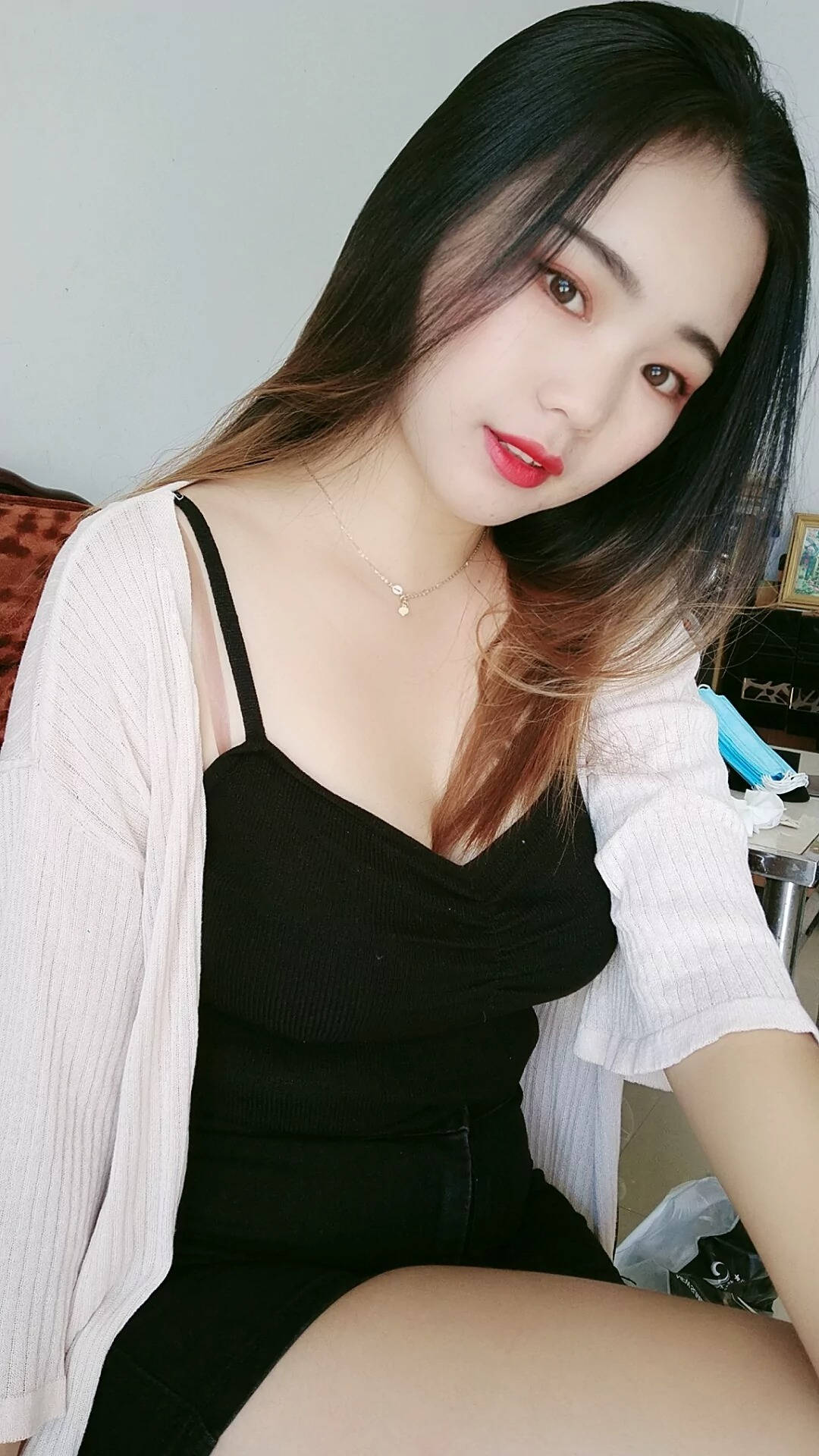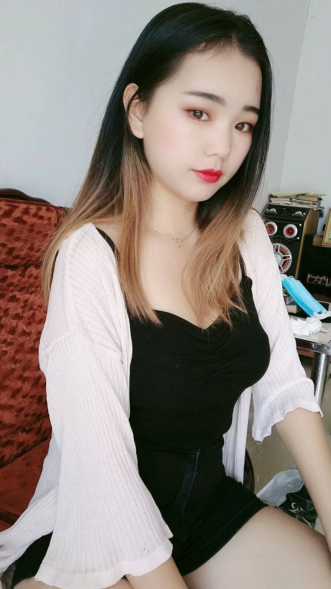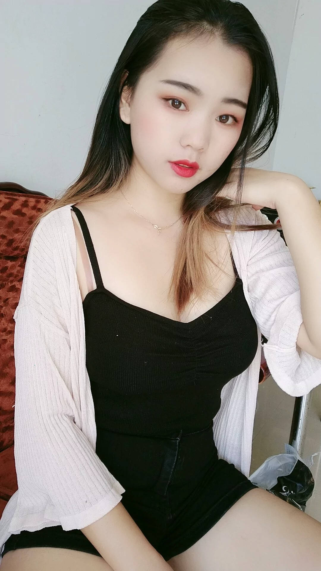 红色高跟黑色紧身皮裤美女SN33