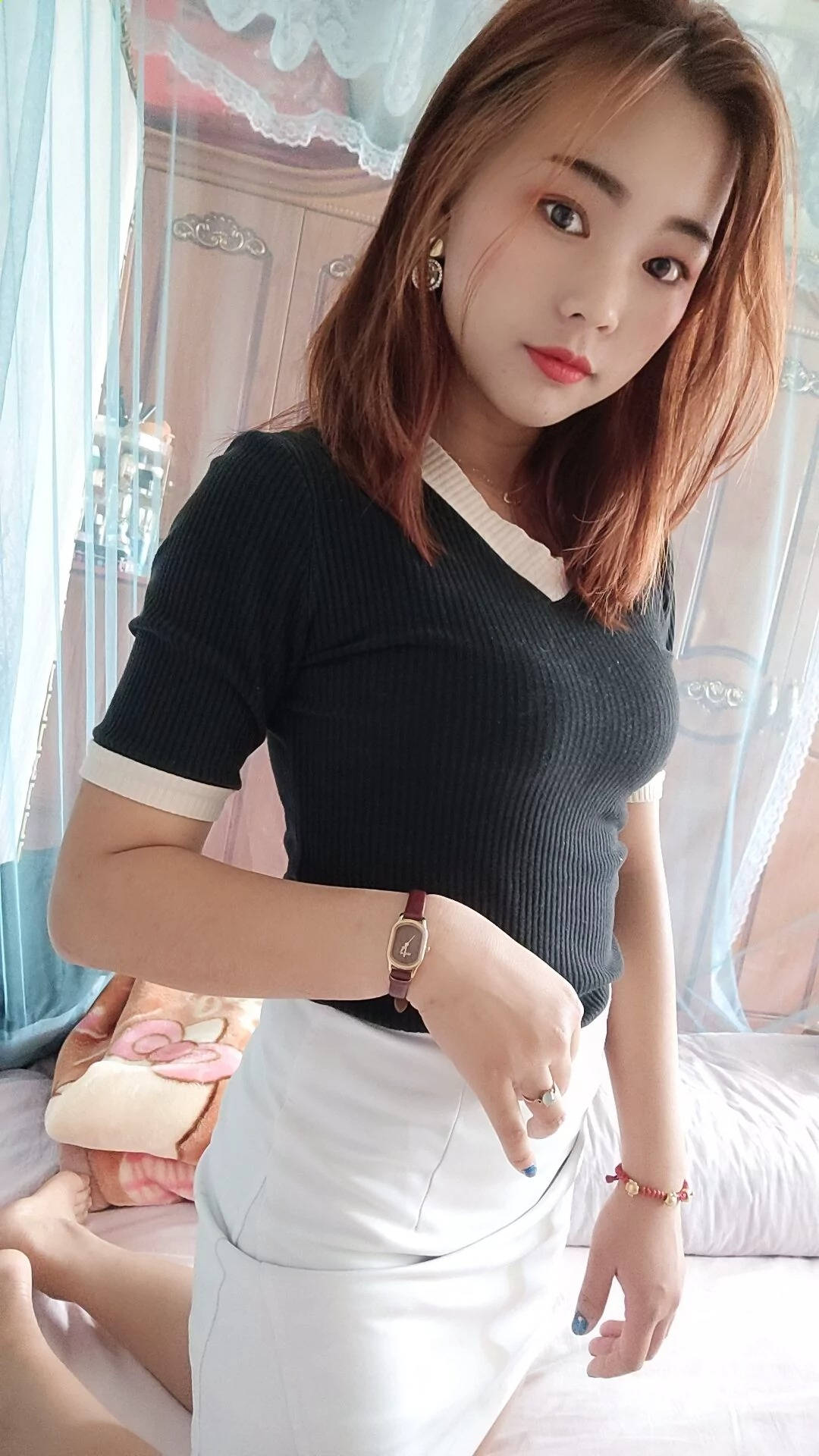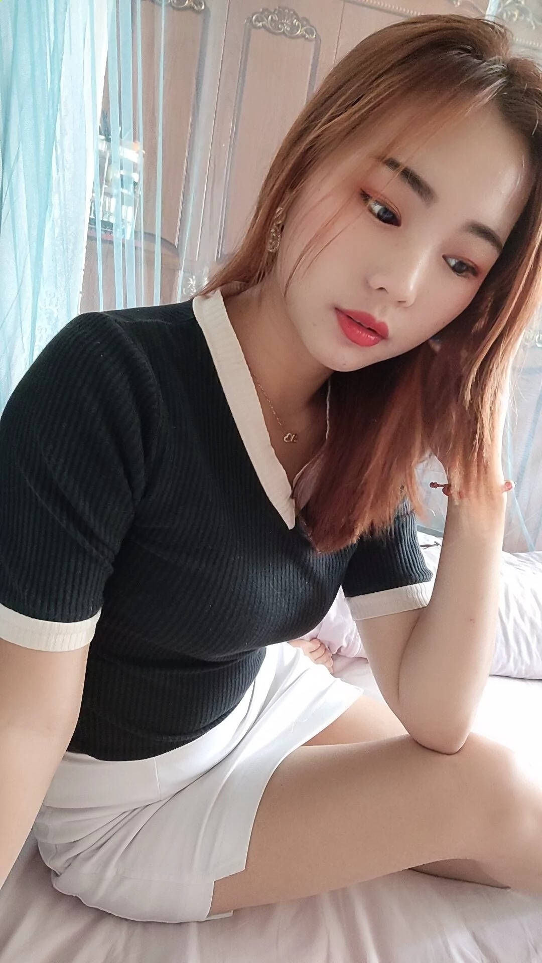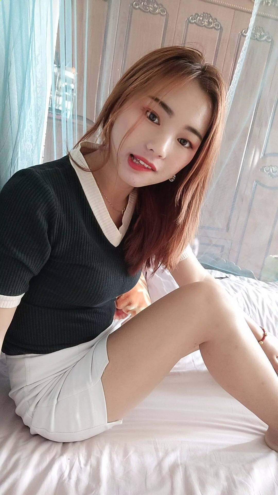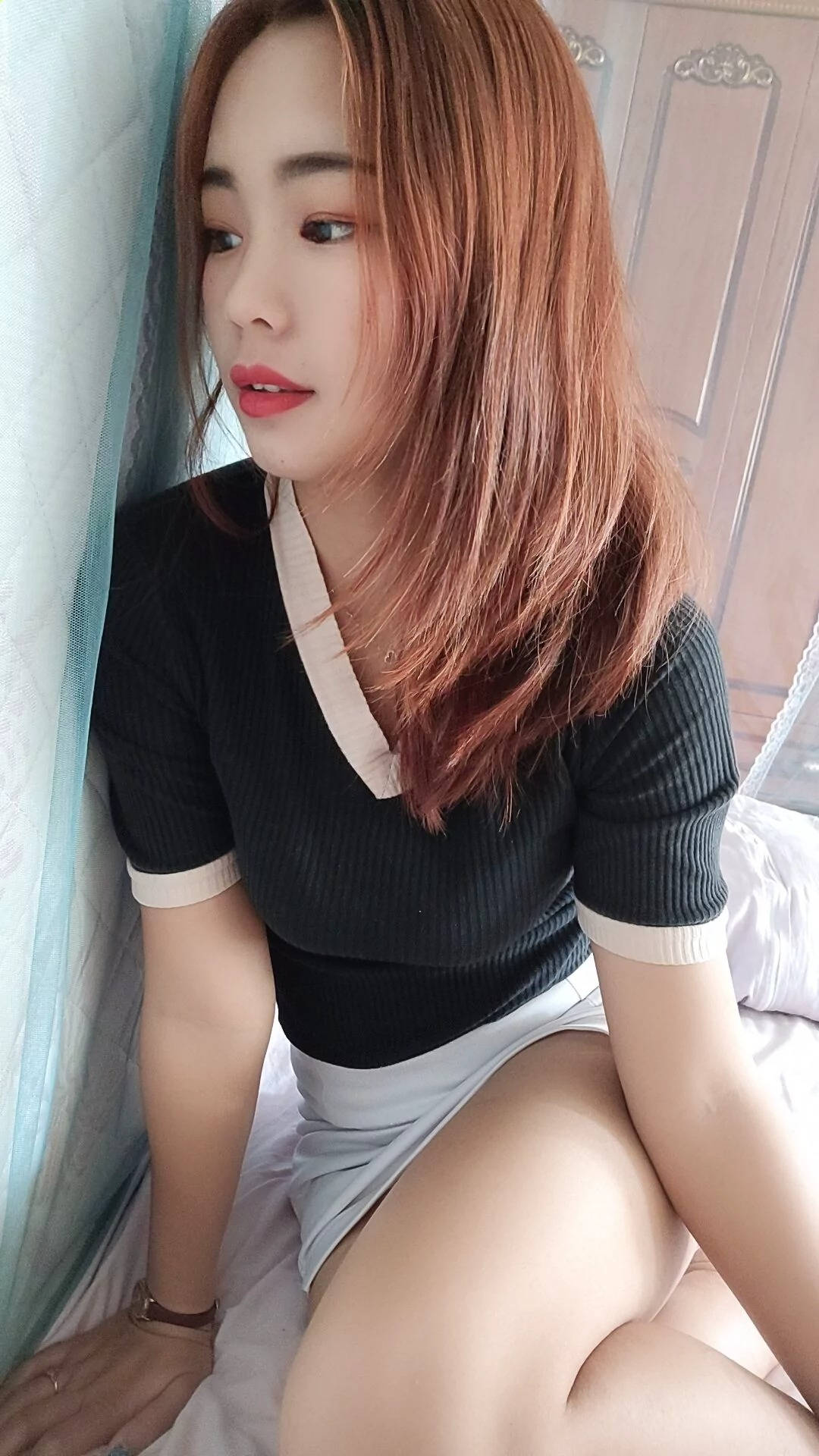 红色超短包臀银色高跟的长腿小美女SN70