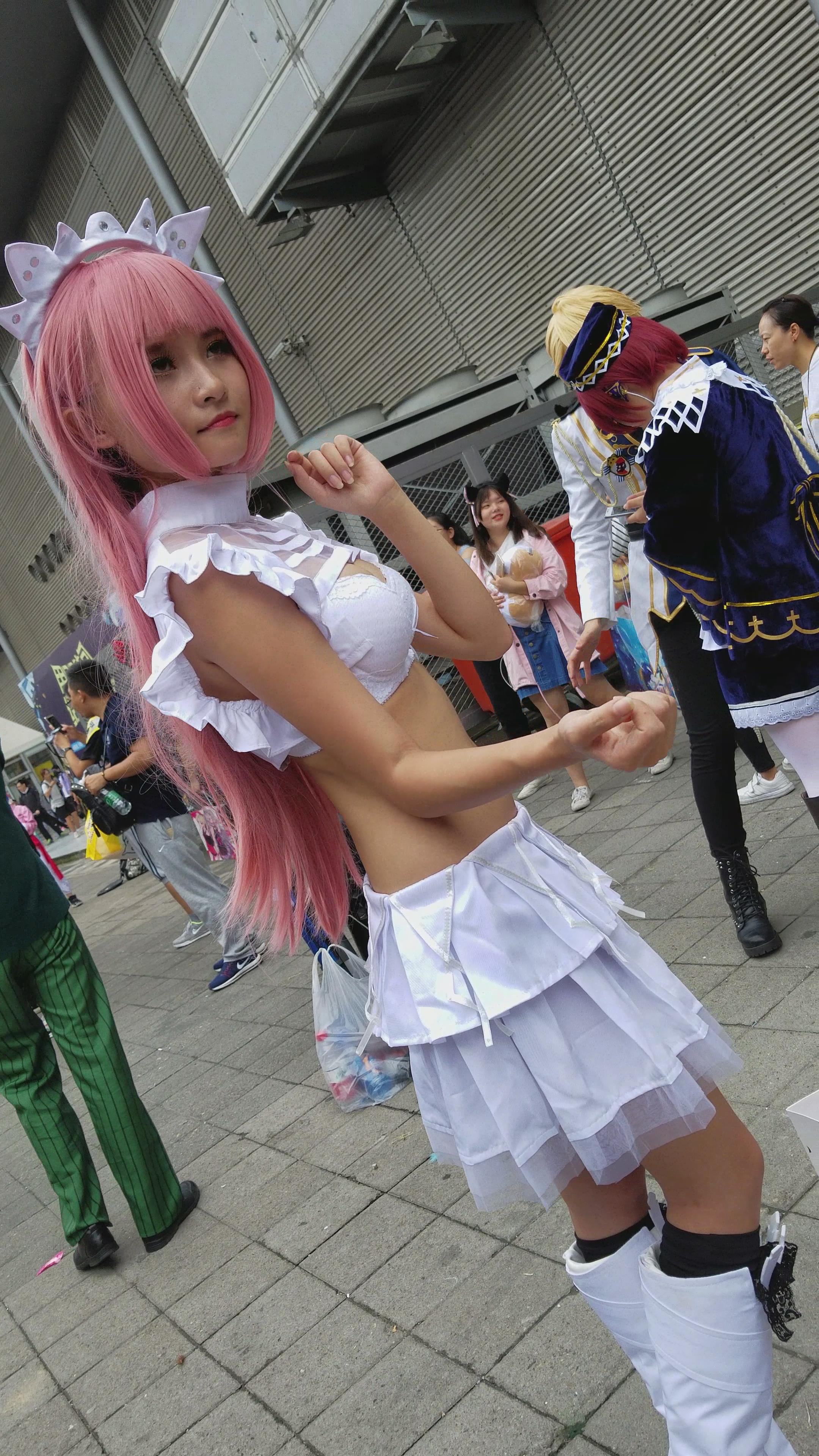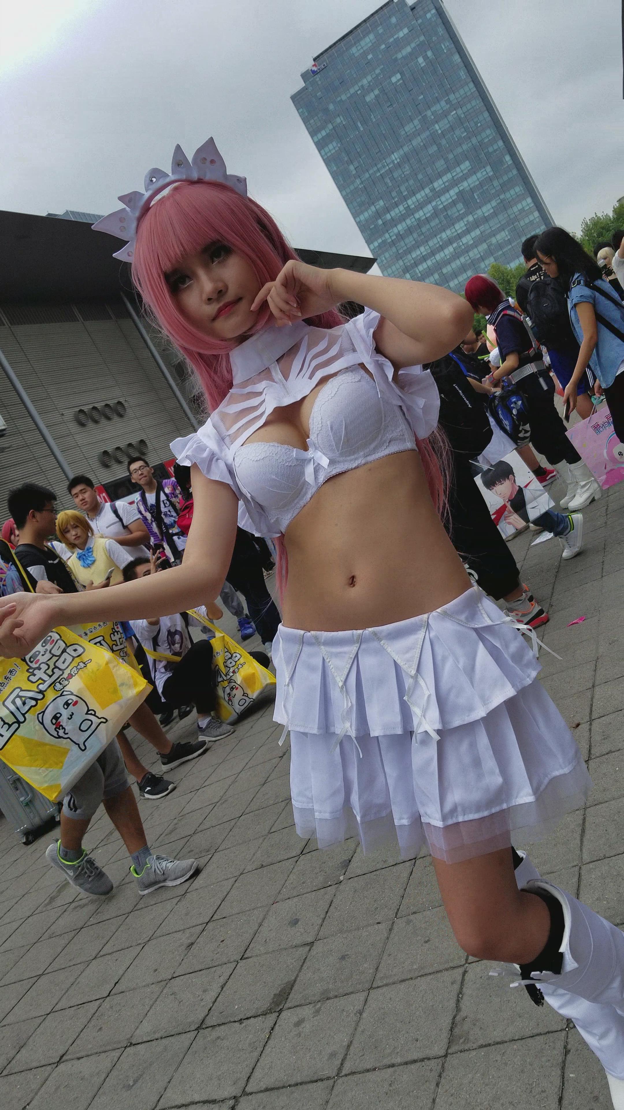 4K - 白色短裙圆润饱满美胸cosplay的丰满少女 编号3216