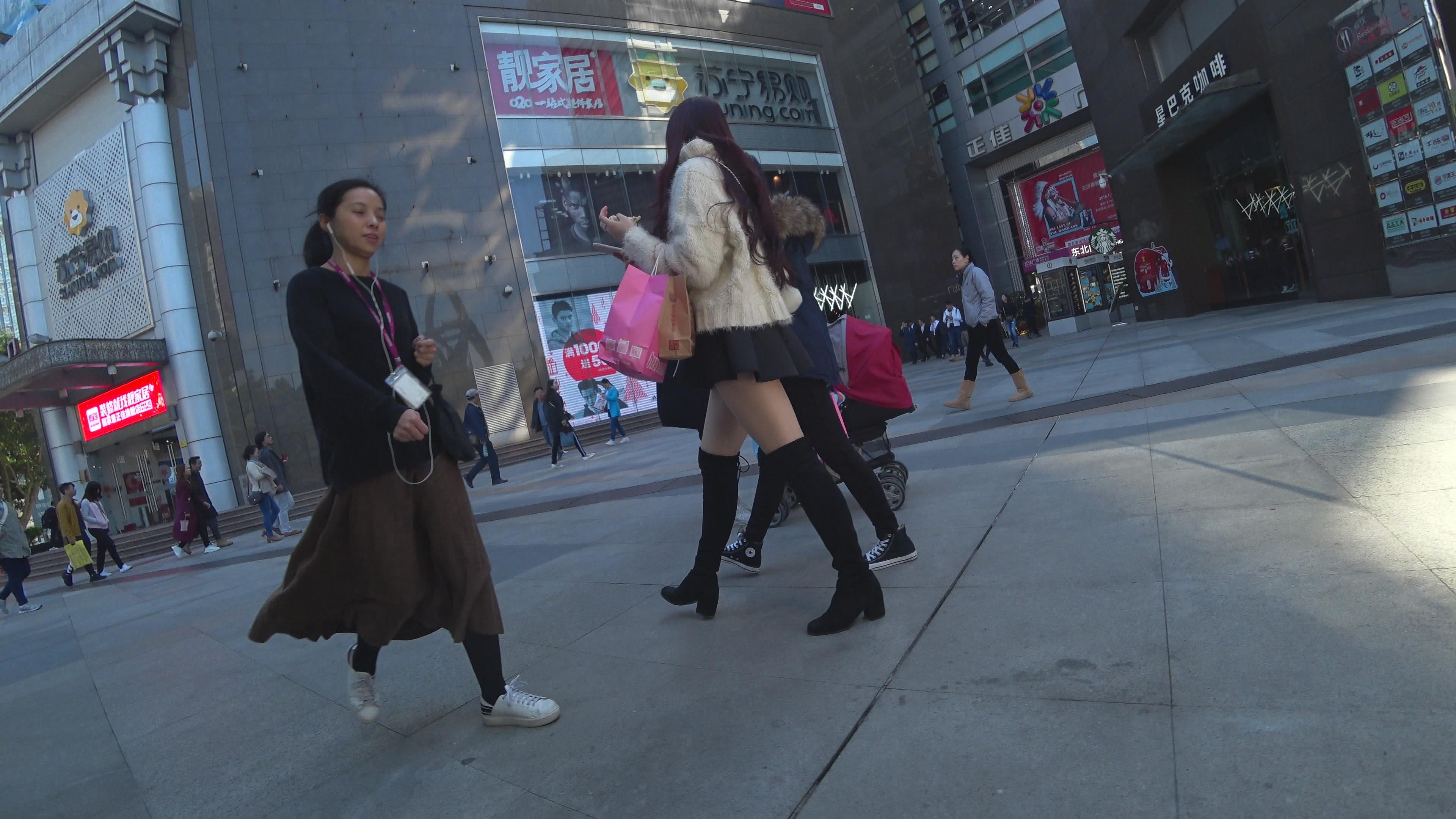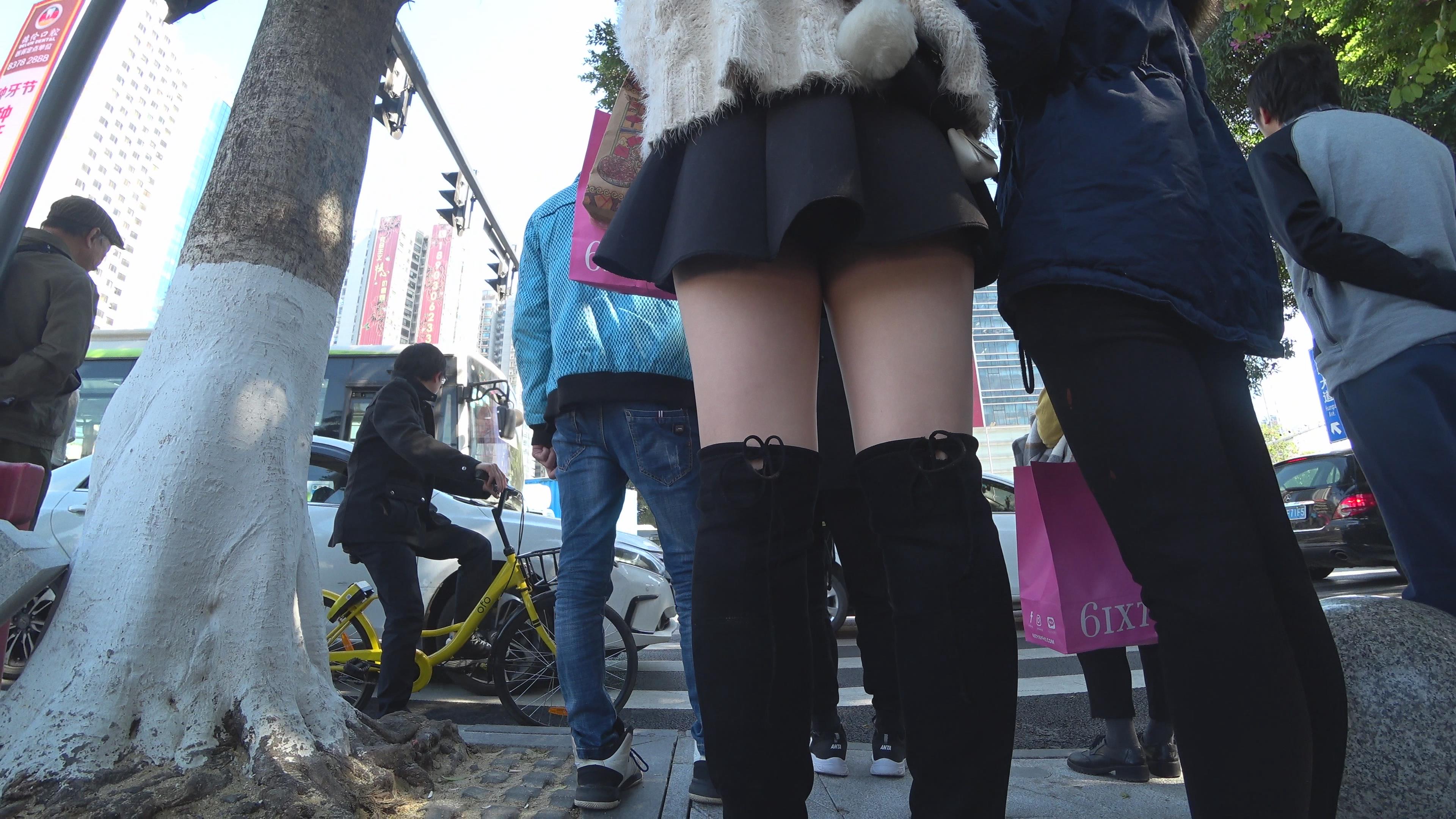 4k-街拍短裙美腿长筒靴街拍美女姐姐 编号3224