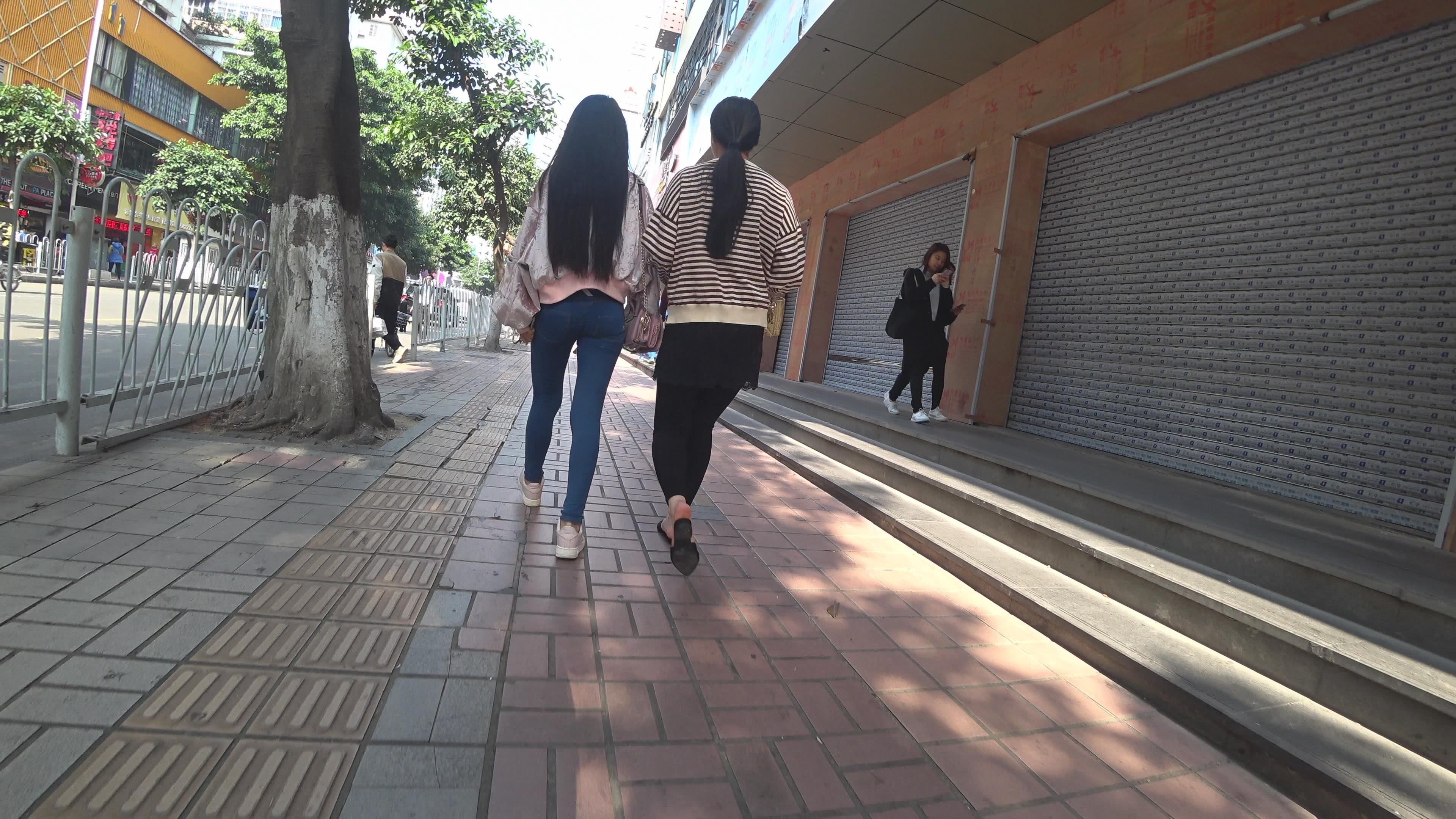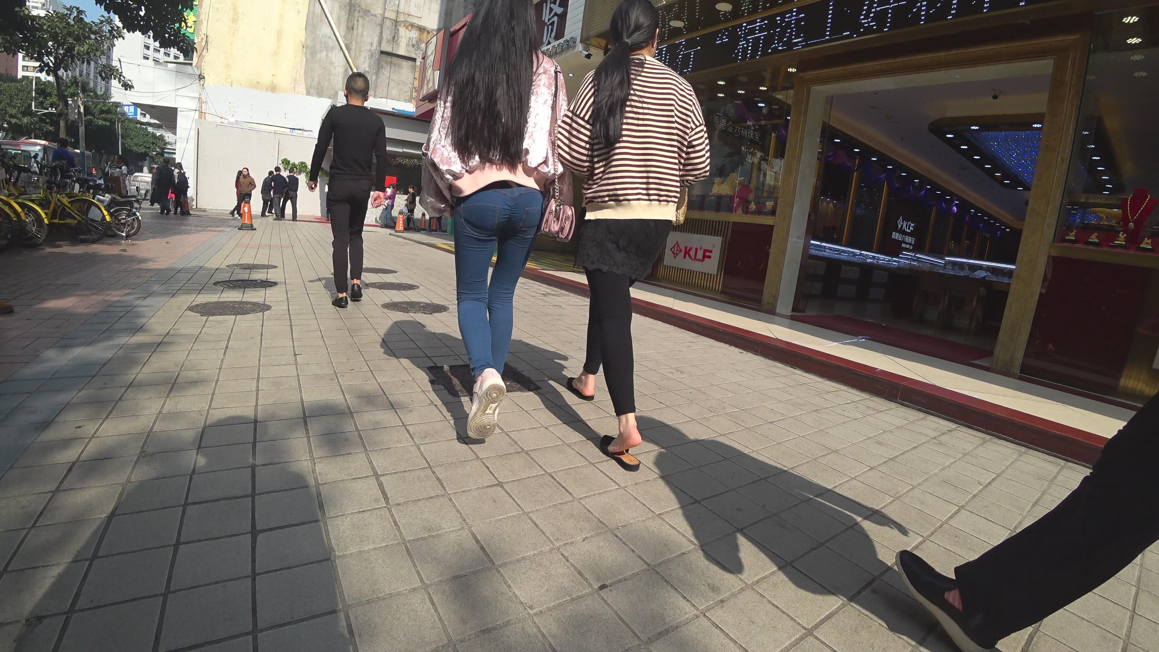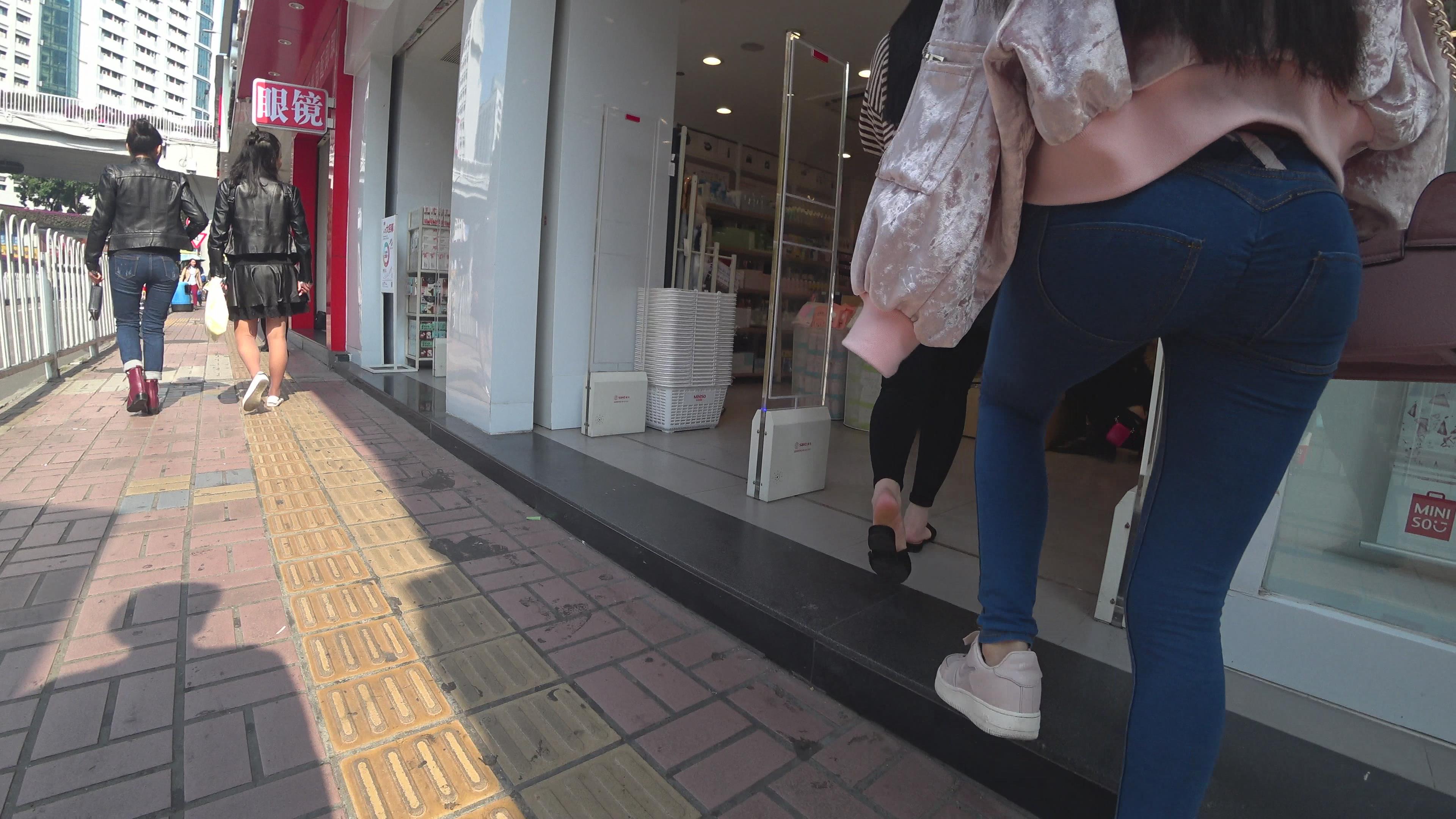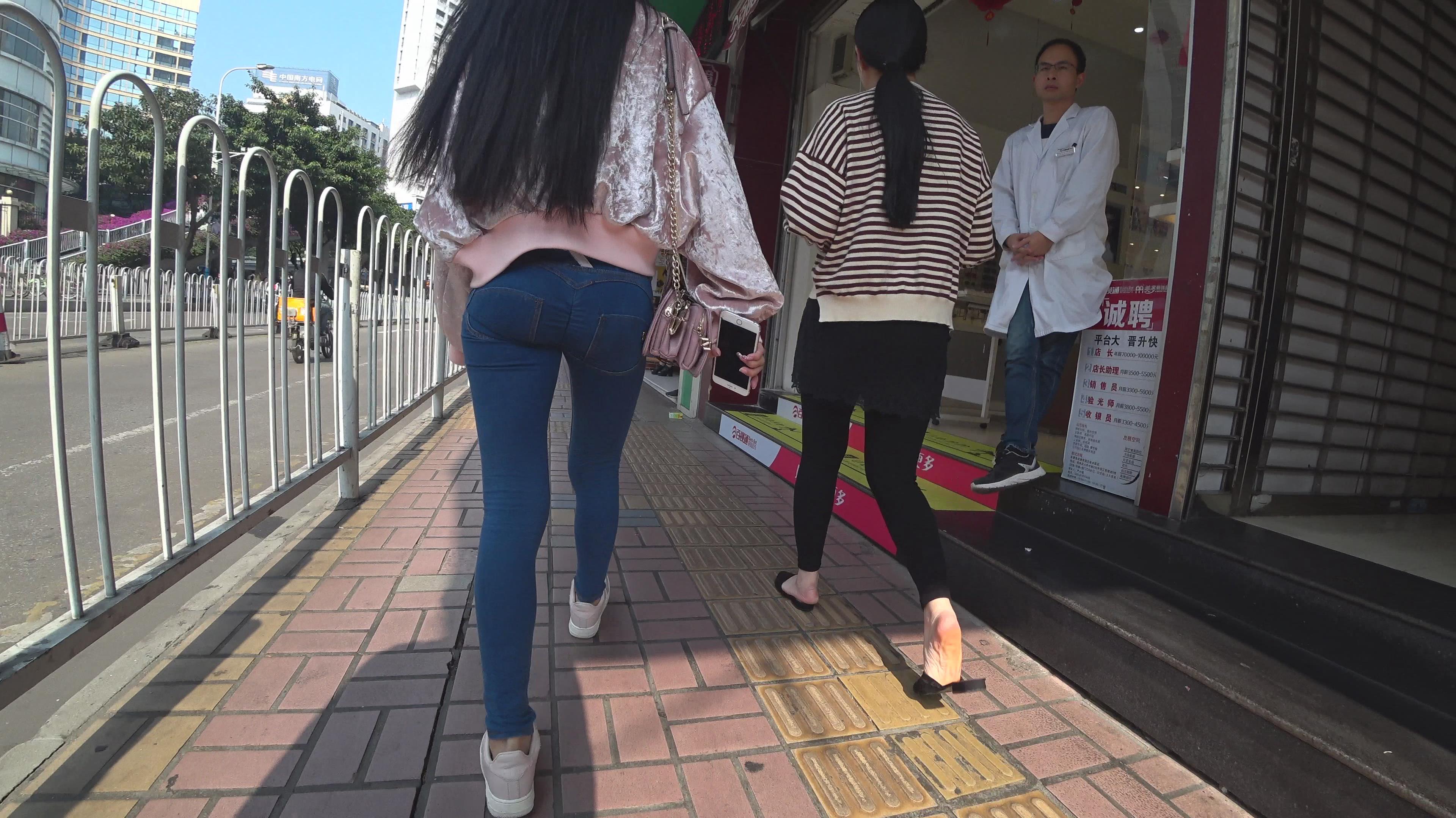 4k-街拍超级紧身牛仔裤圆臀小美女 编号3227