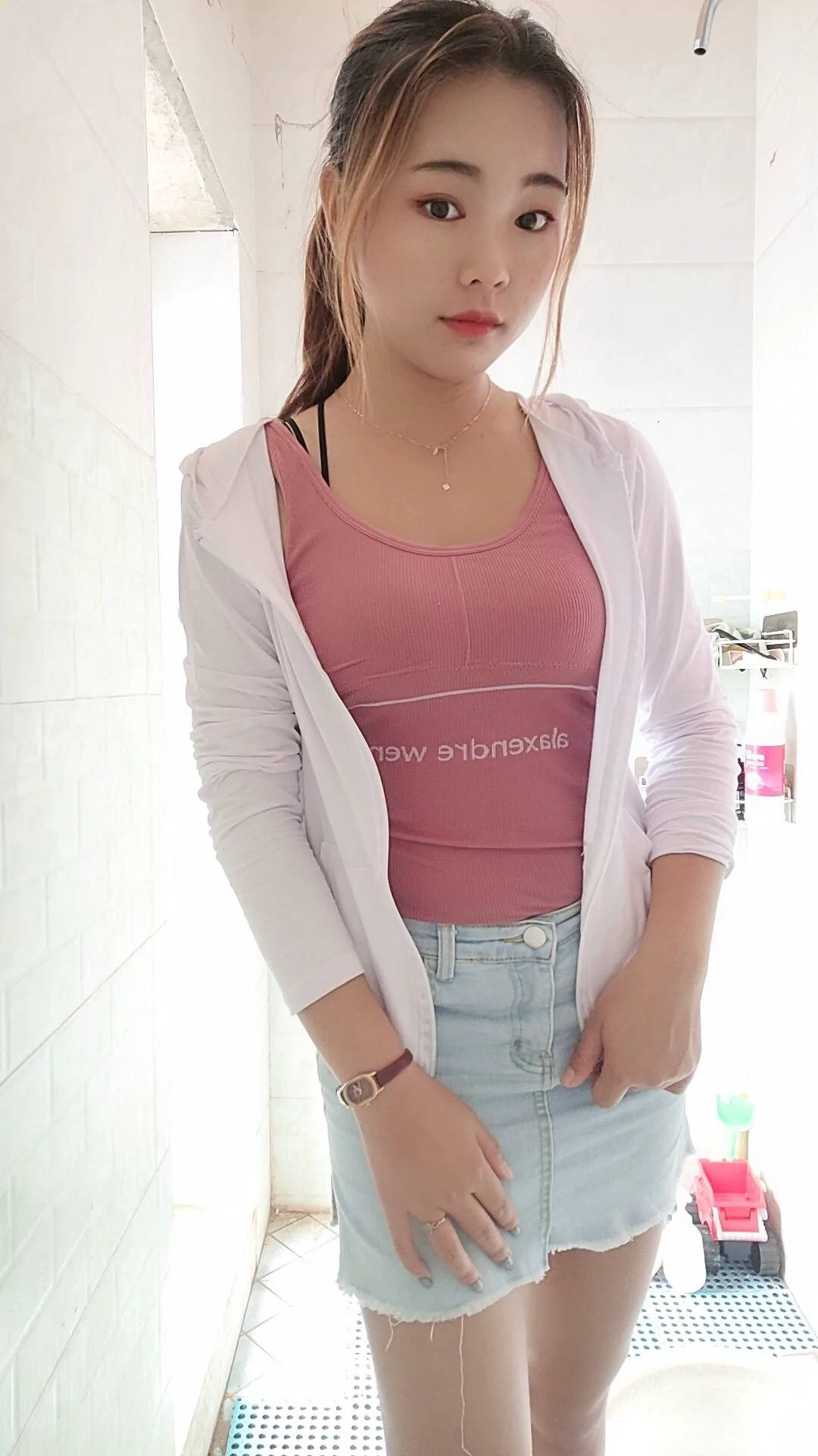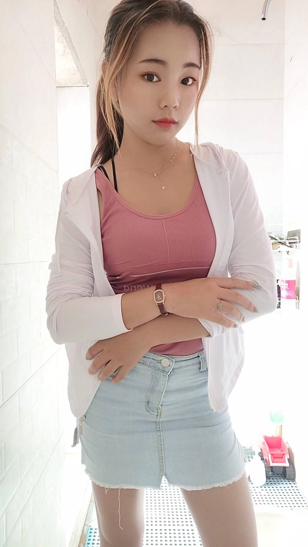 近拍蓝色连衣裙黑丝白色高跟cosplay美眉SN128