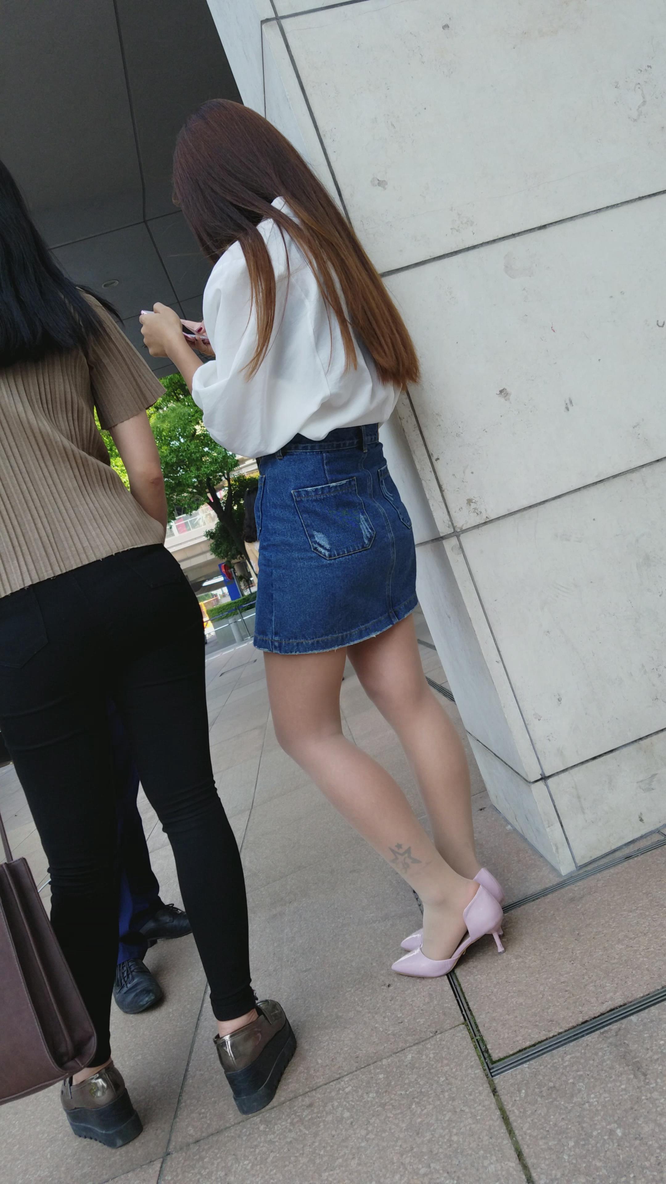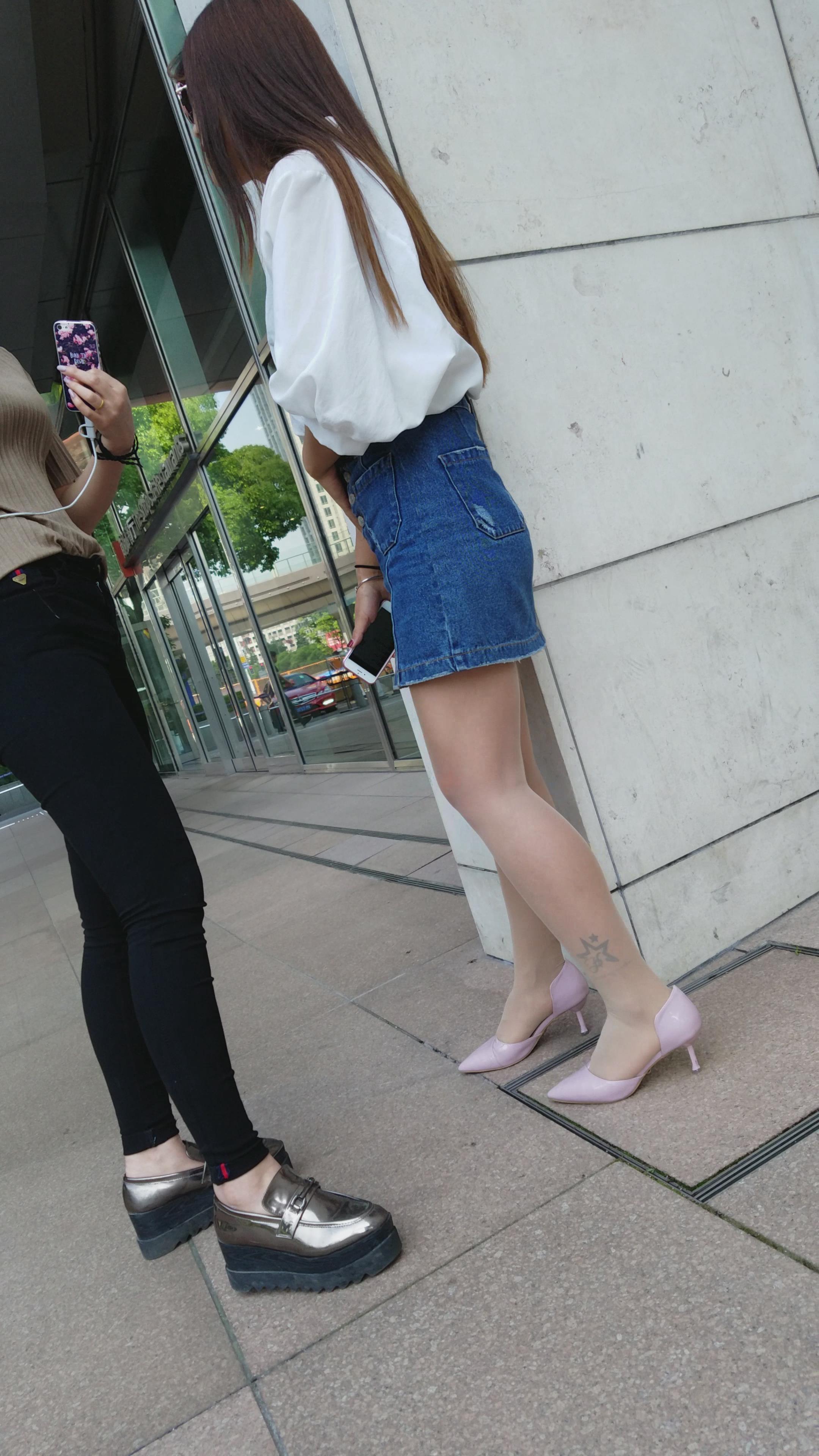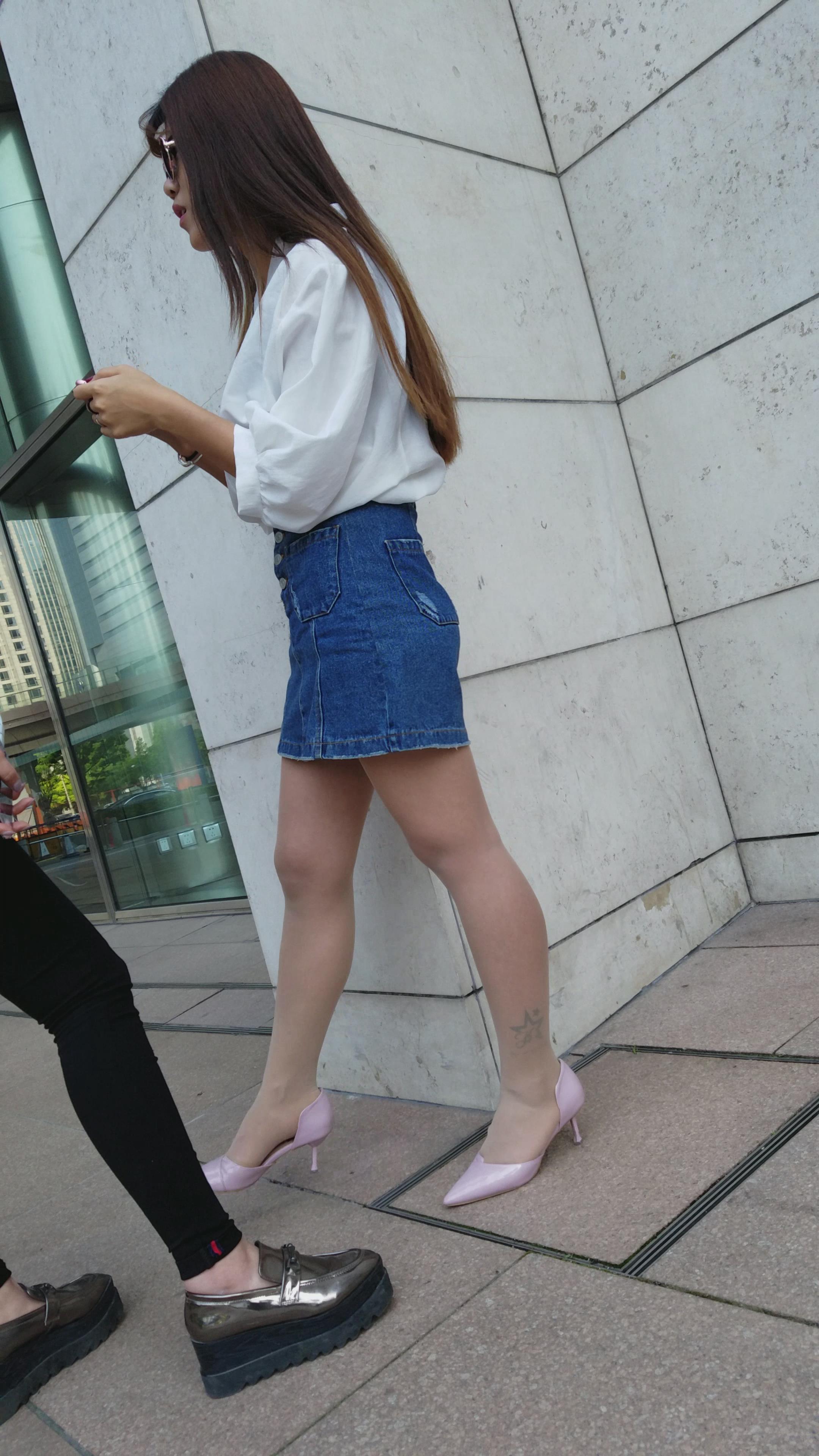 4k-超美牛仔裙高跟美腿气质墨镜美女 编号3244