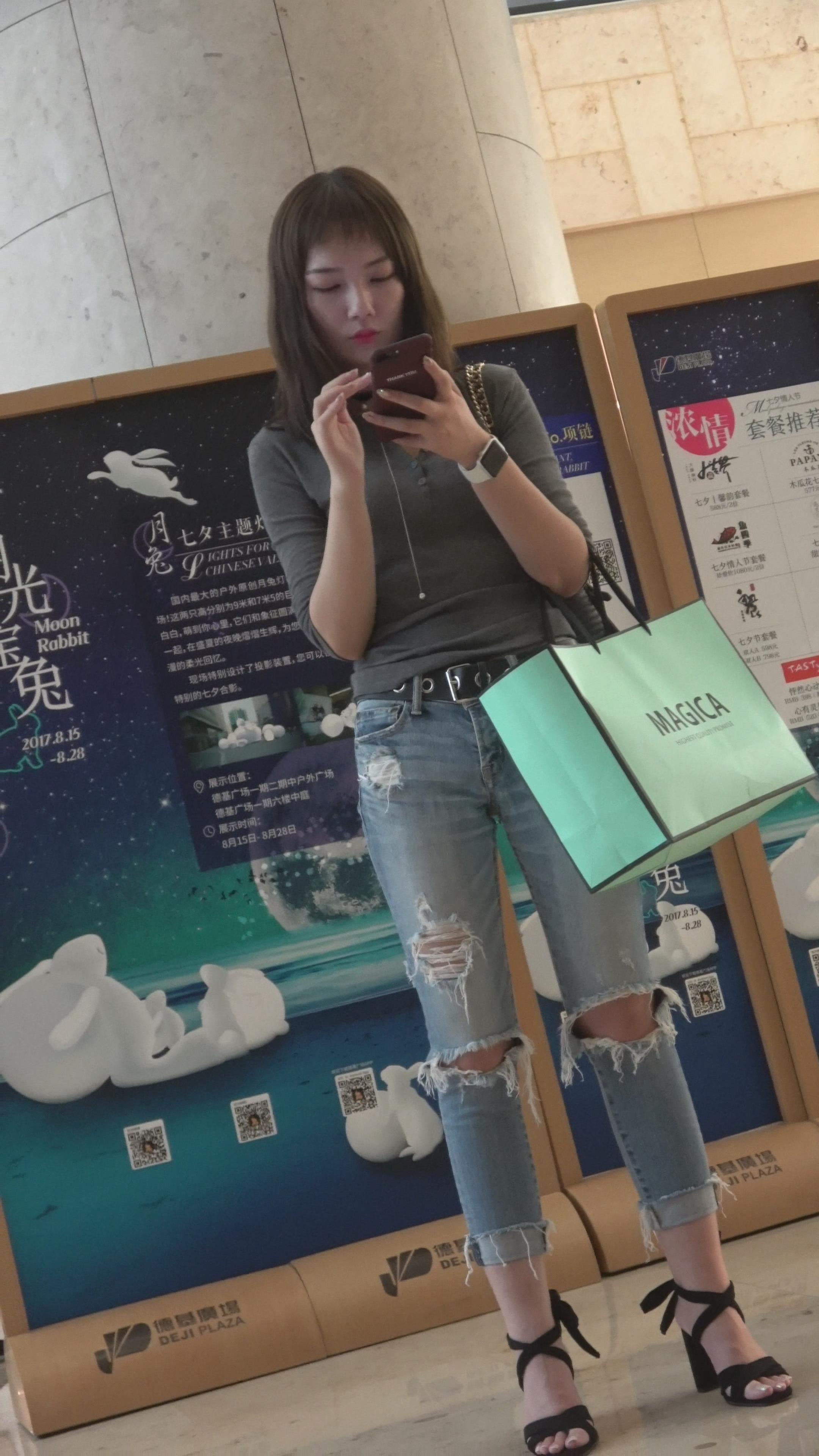 4k-甜美漂亮小姐姐,破洞牛仔很性感 编号3256