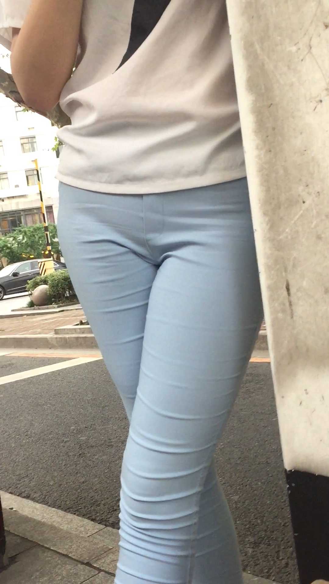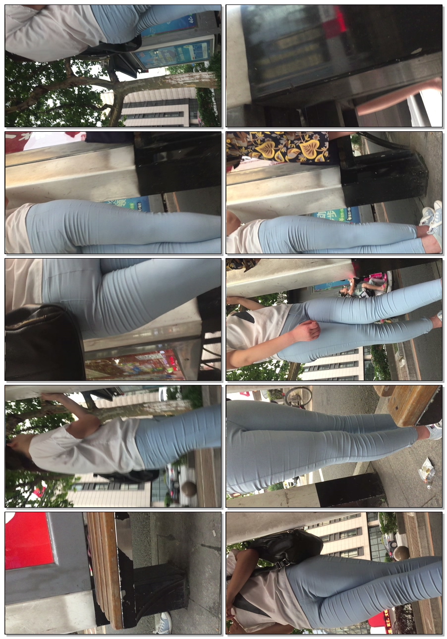 B1516公交站打底裤美三角美女