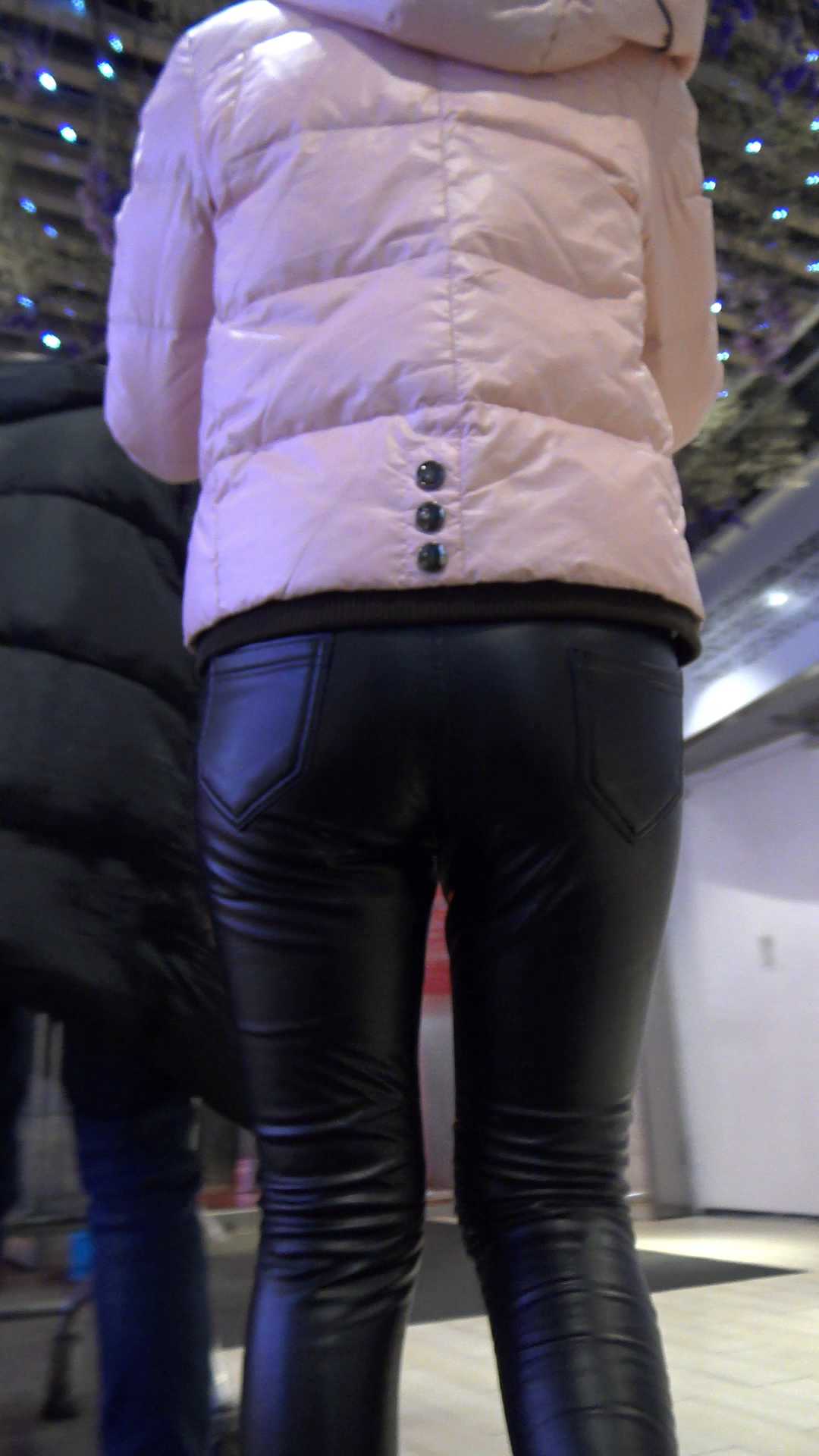 B1565商场紧身皮裤翘臀小少妇