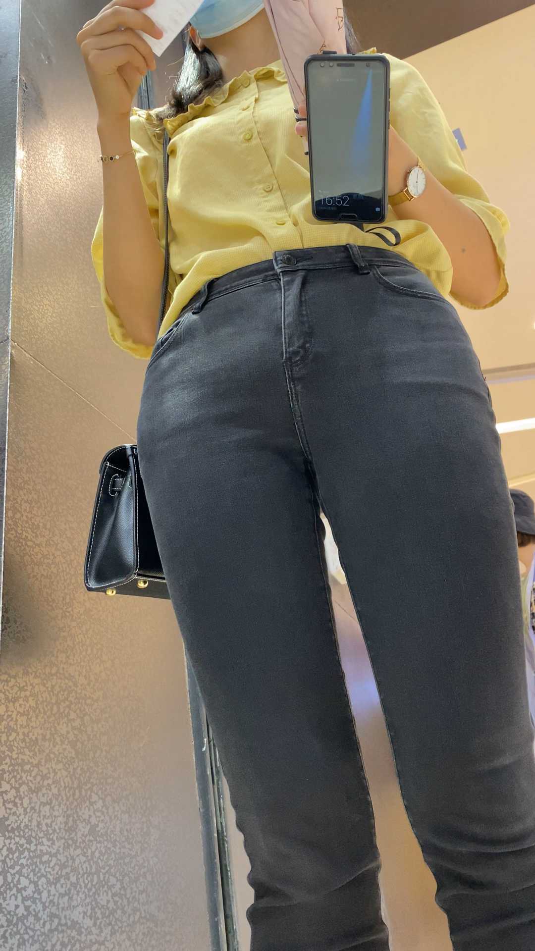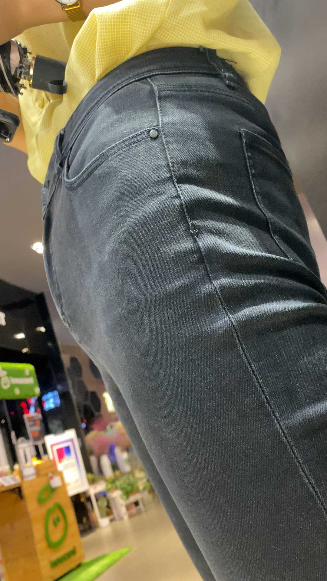 B1666性感黑牛仔金三角往前凸少女