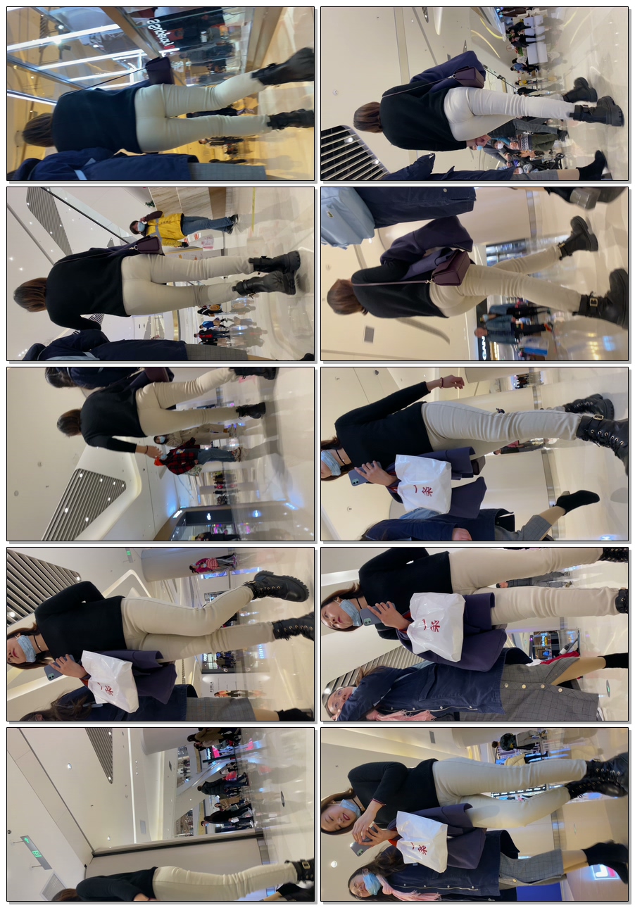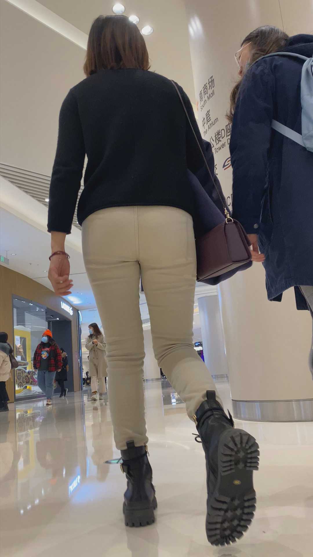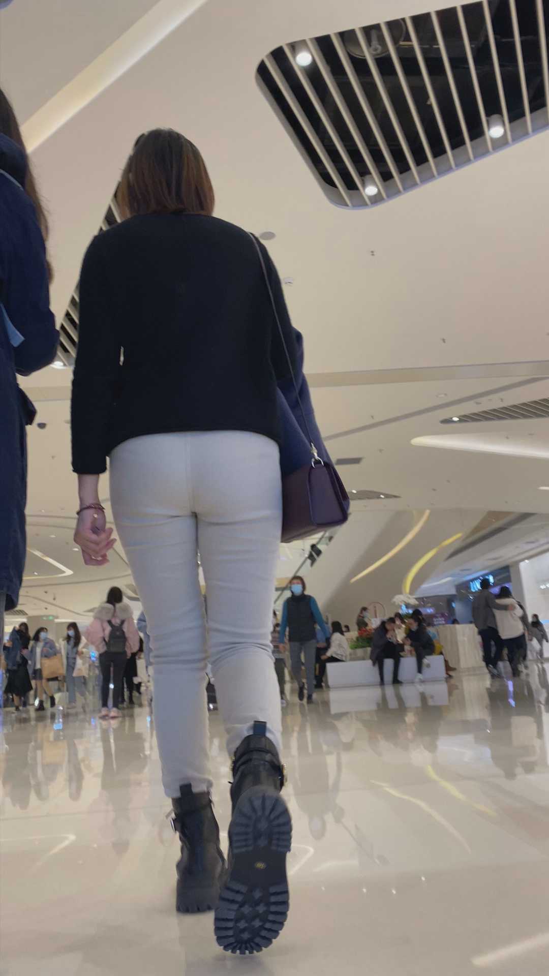 B950商场包臀米色布裤妹子