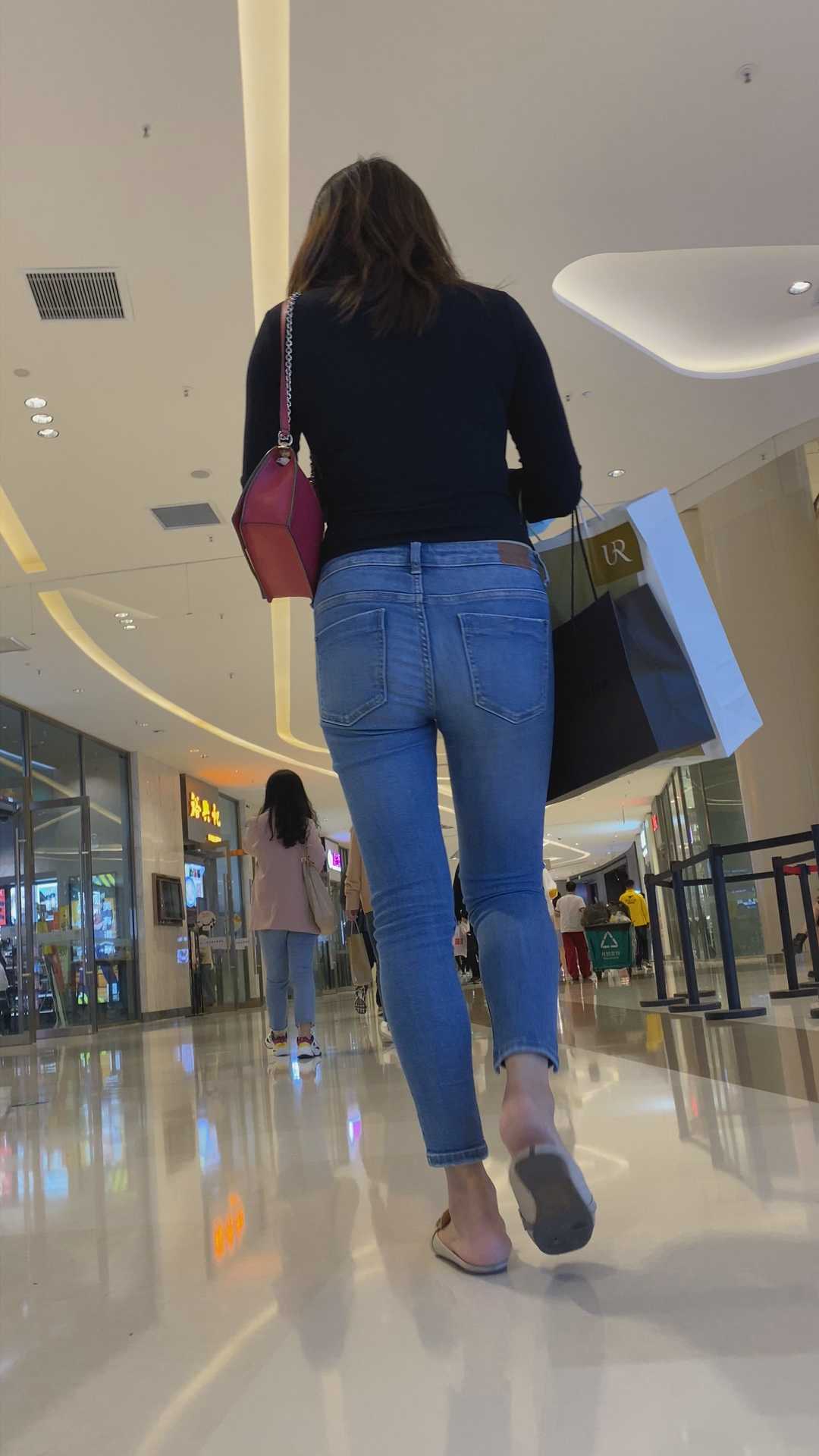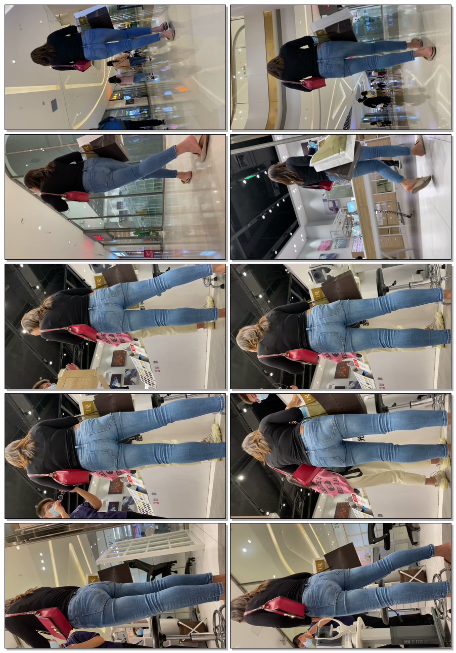 B952商场包臀蓝牛长发妹子