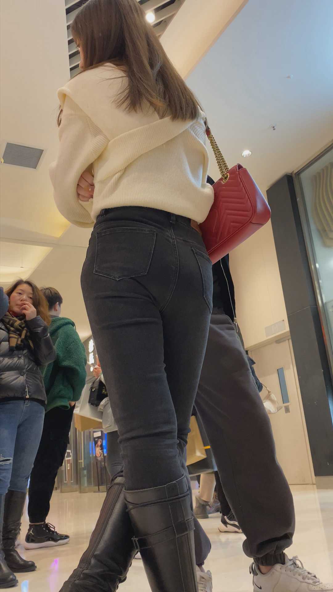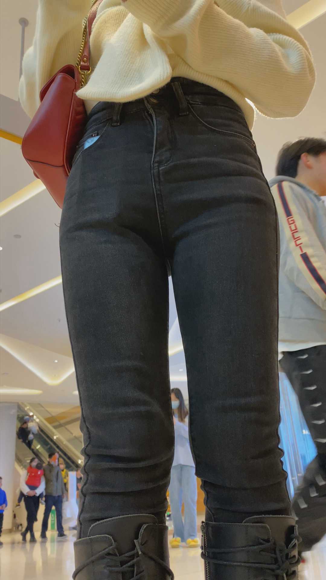 B974商场紧身包臀黑牛仔裤妹子