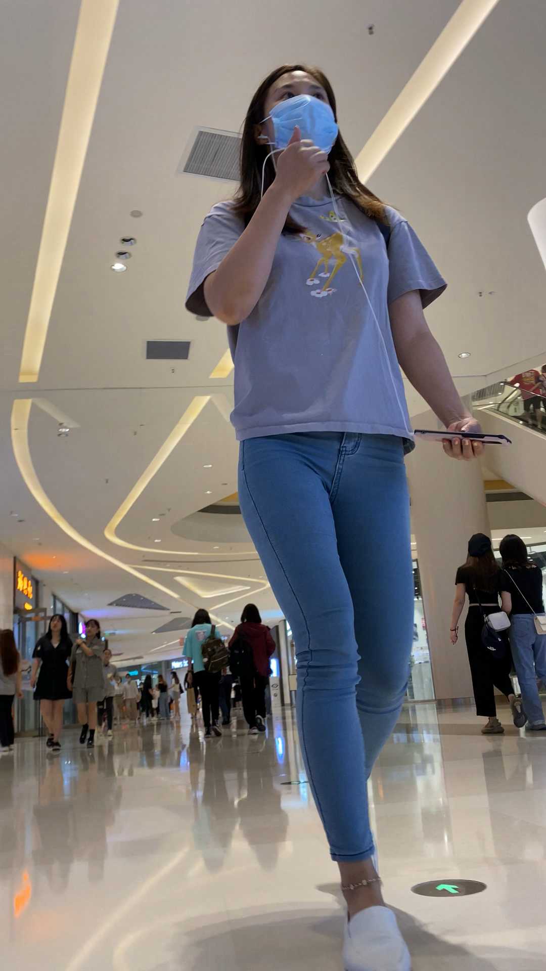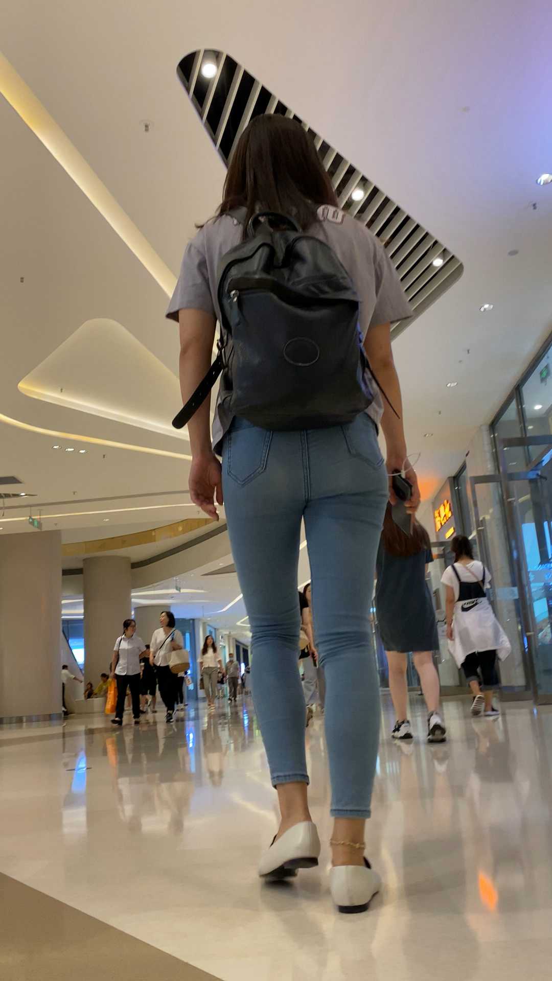 B977商场紧身灰牛仔紧臀少妇