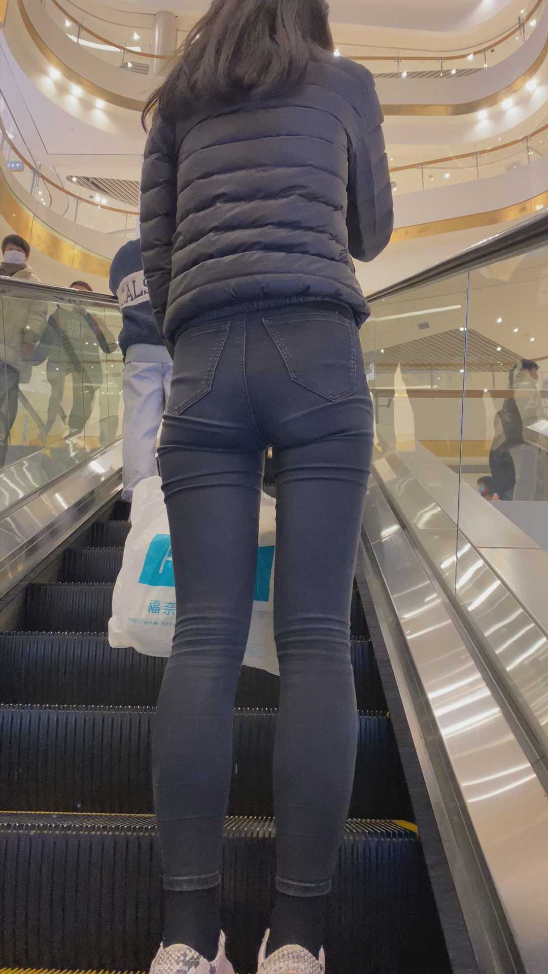 B1012商场长腿黑牛仔紧臀少女