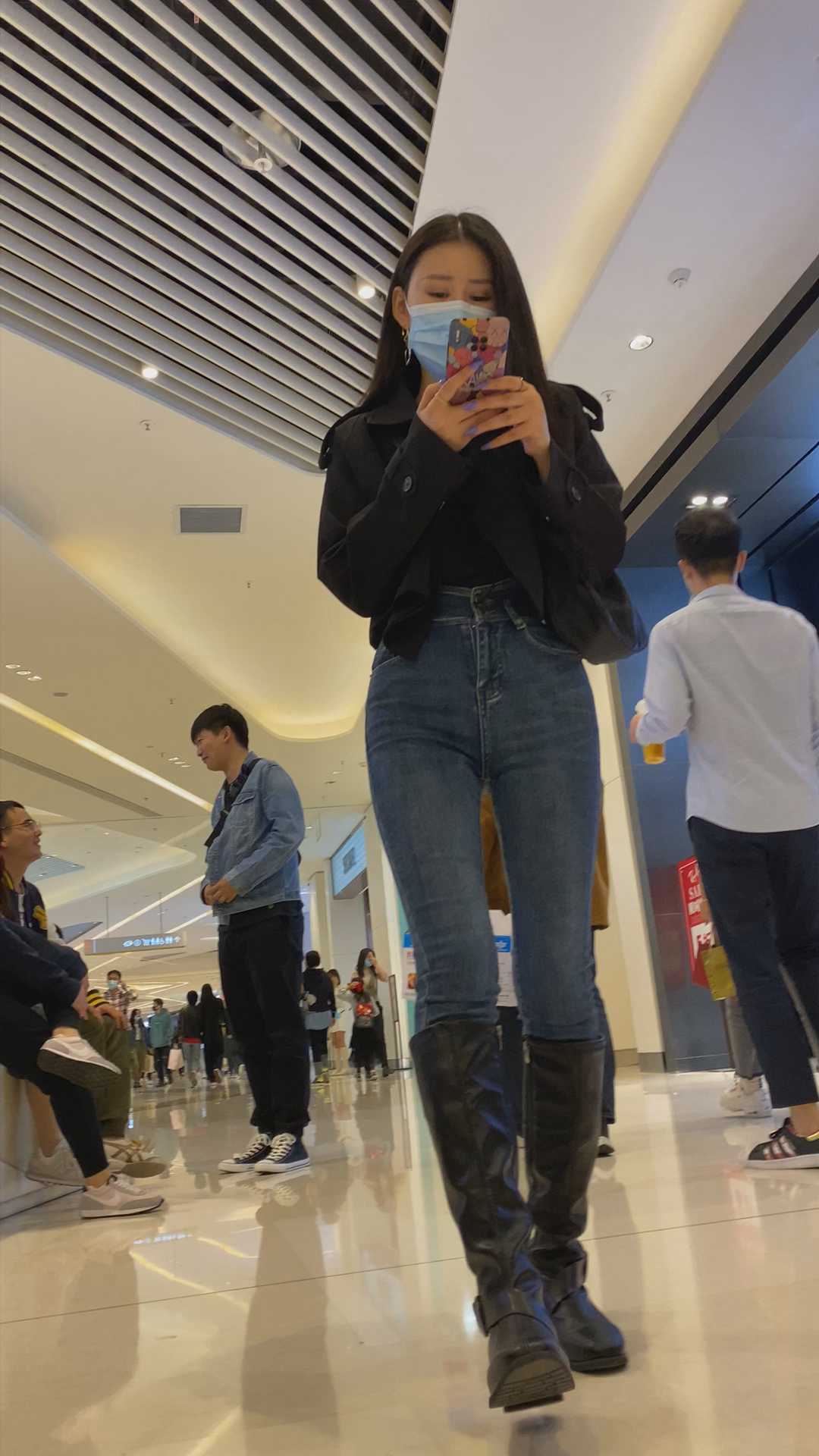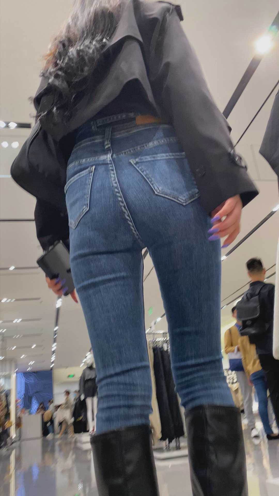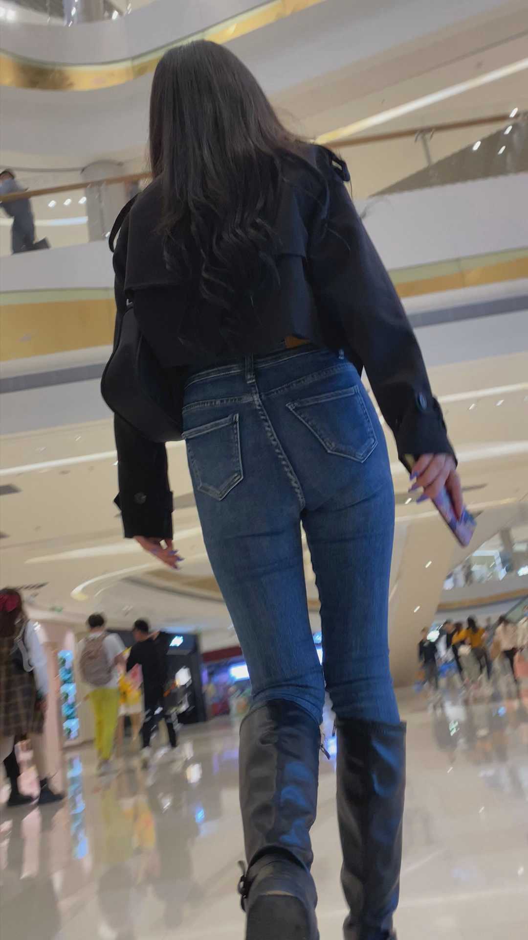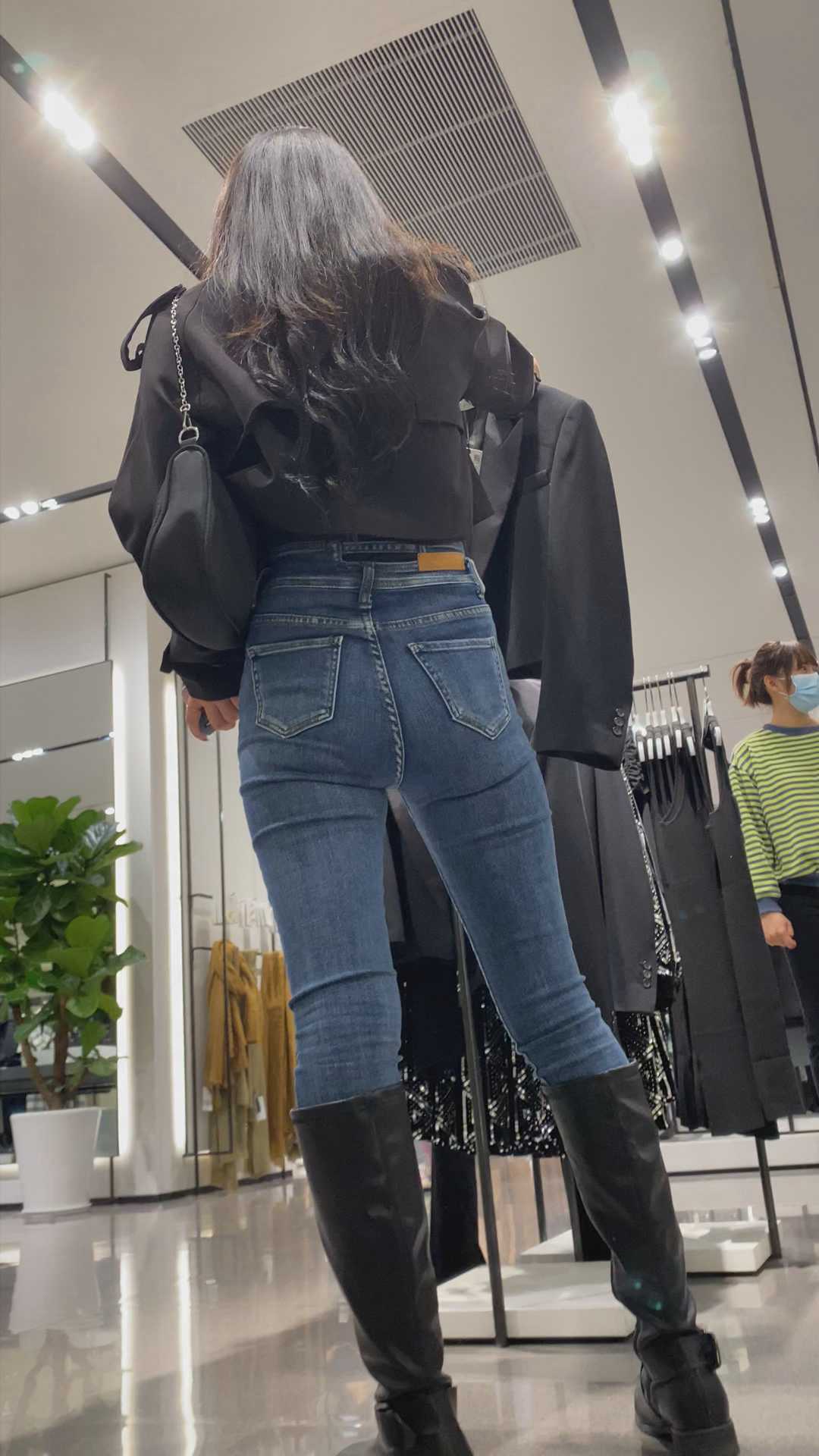 B1099性感蓝牛深沟翘臀长发小姐姐