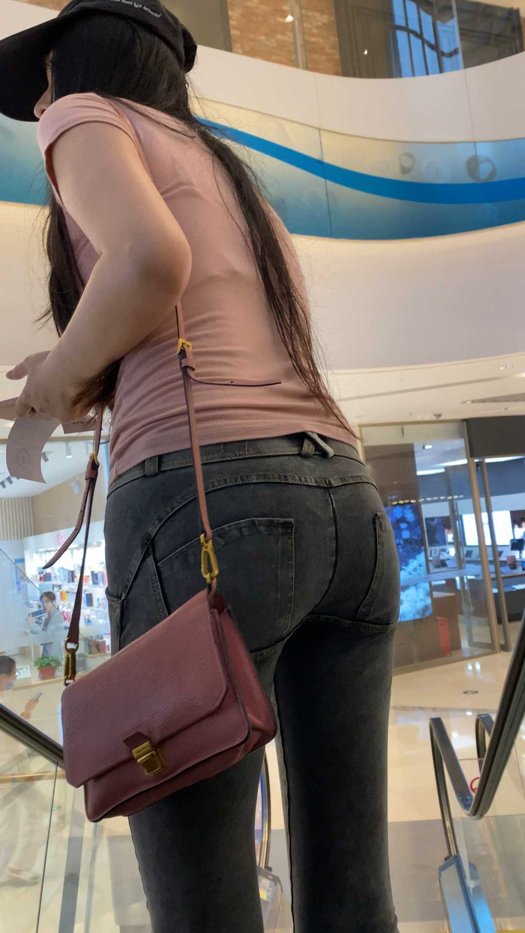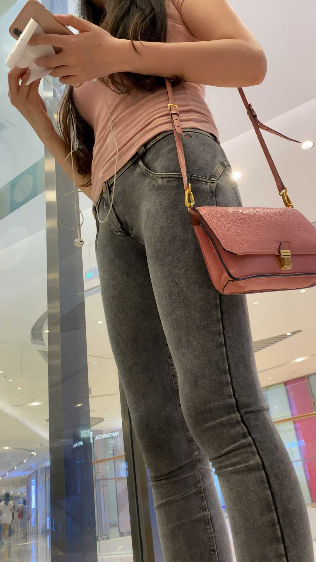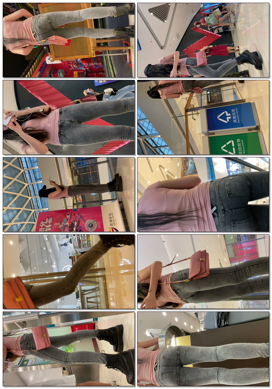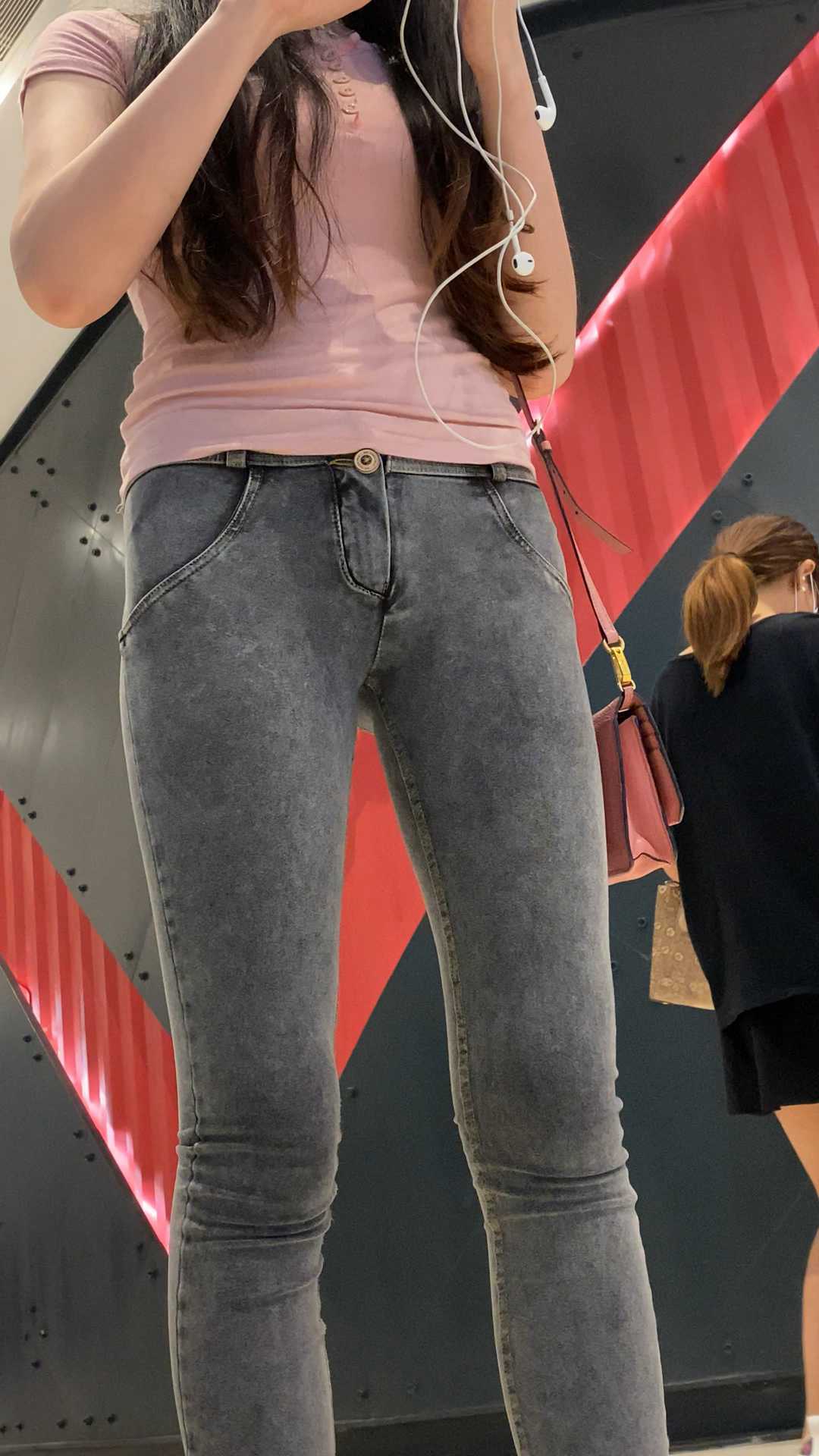 B1154灰牛仔紧翘臀长发小姐姐