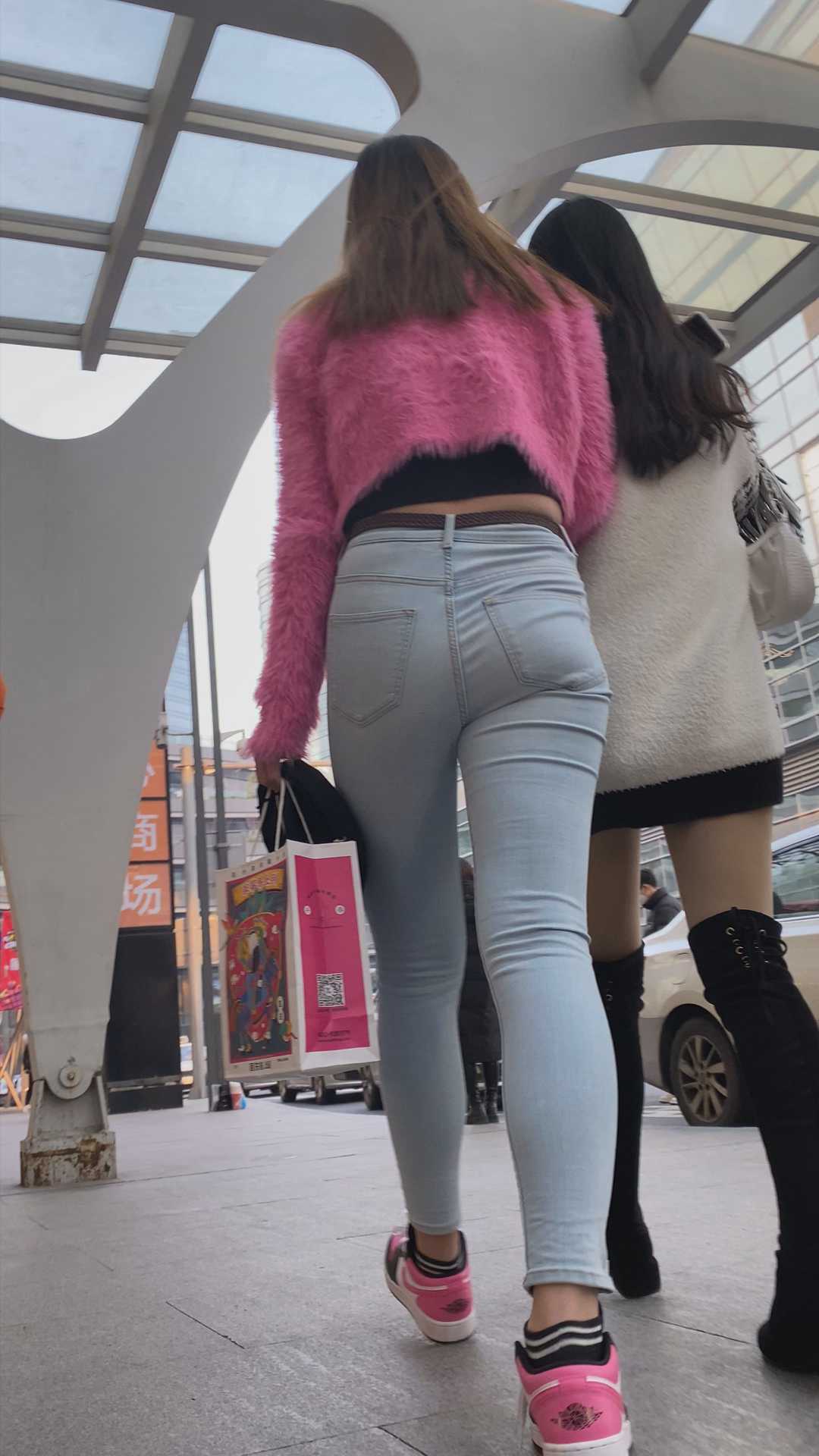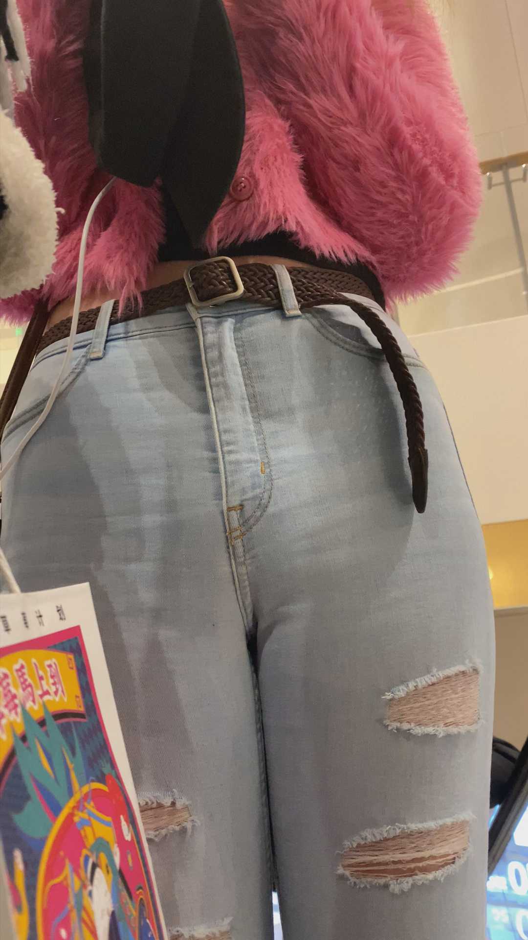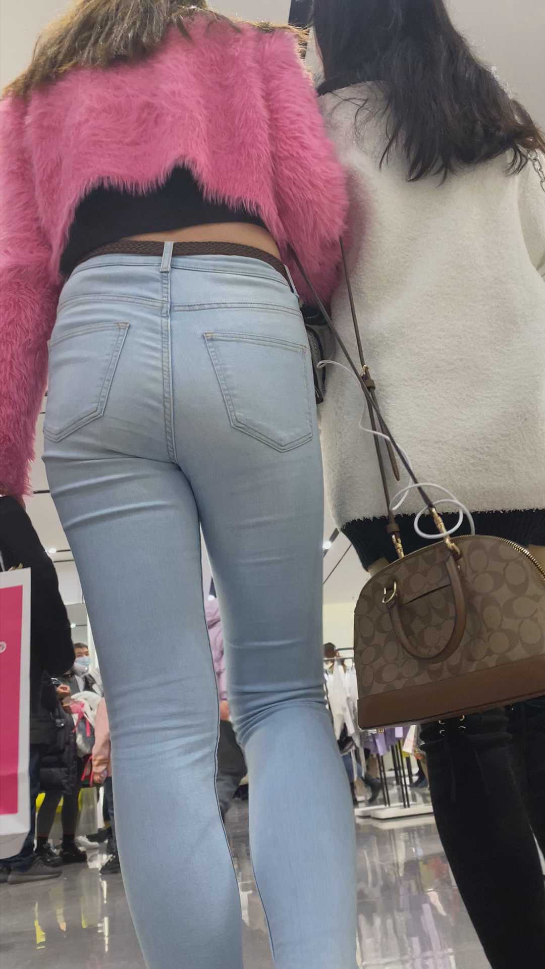 B1161白牛仔饱满骆驼趾紧臀大美女
