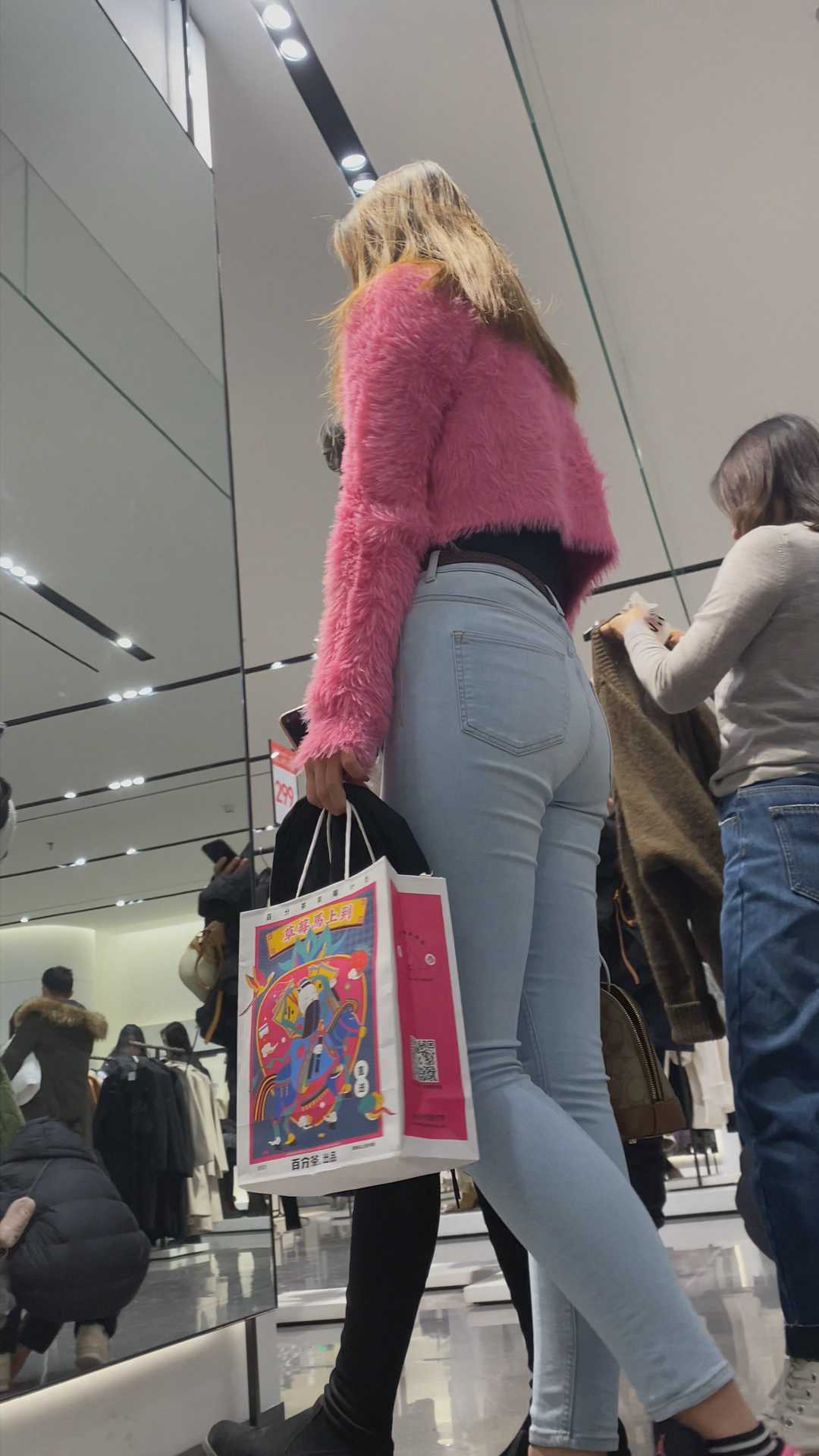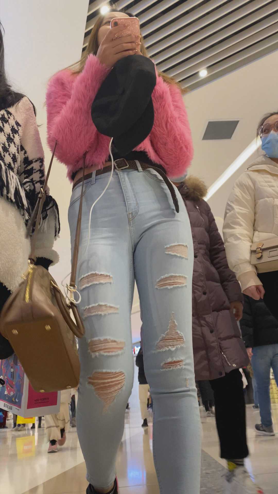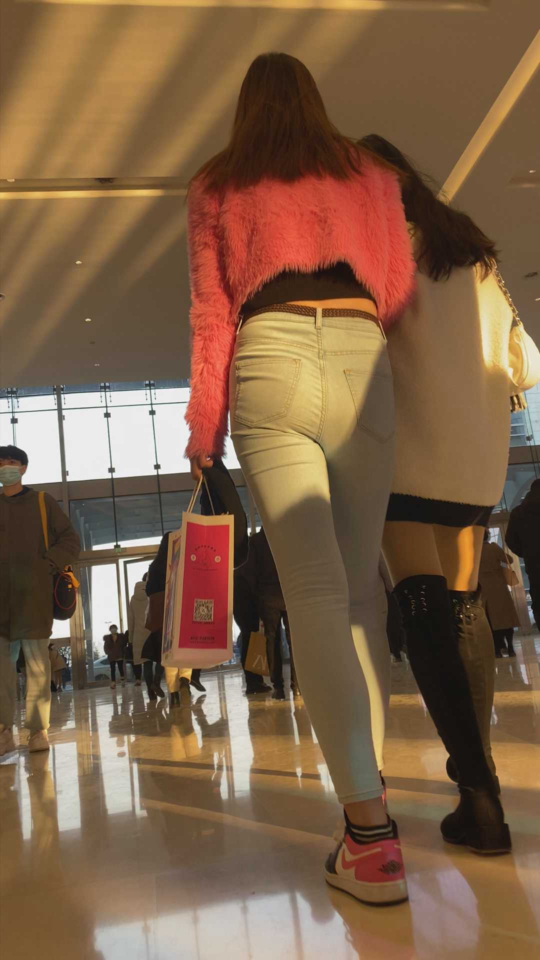 B1161白牛仔饱满骆驼趾紧臀大美女
