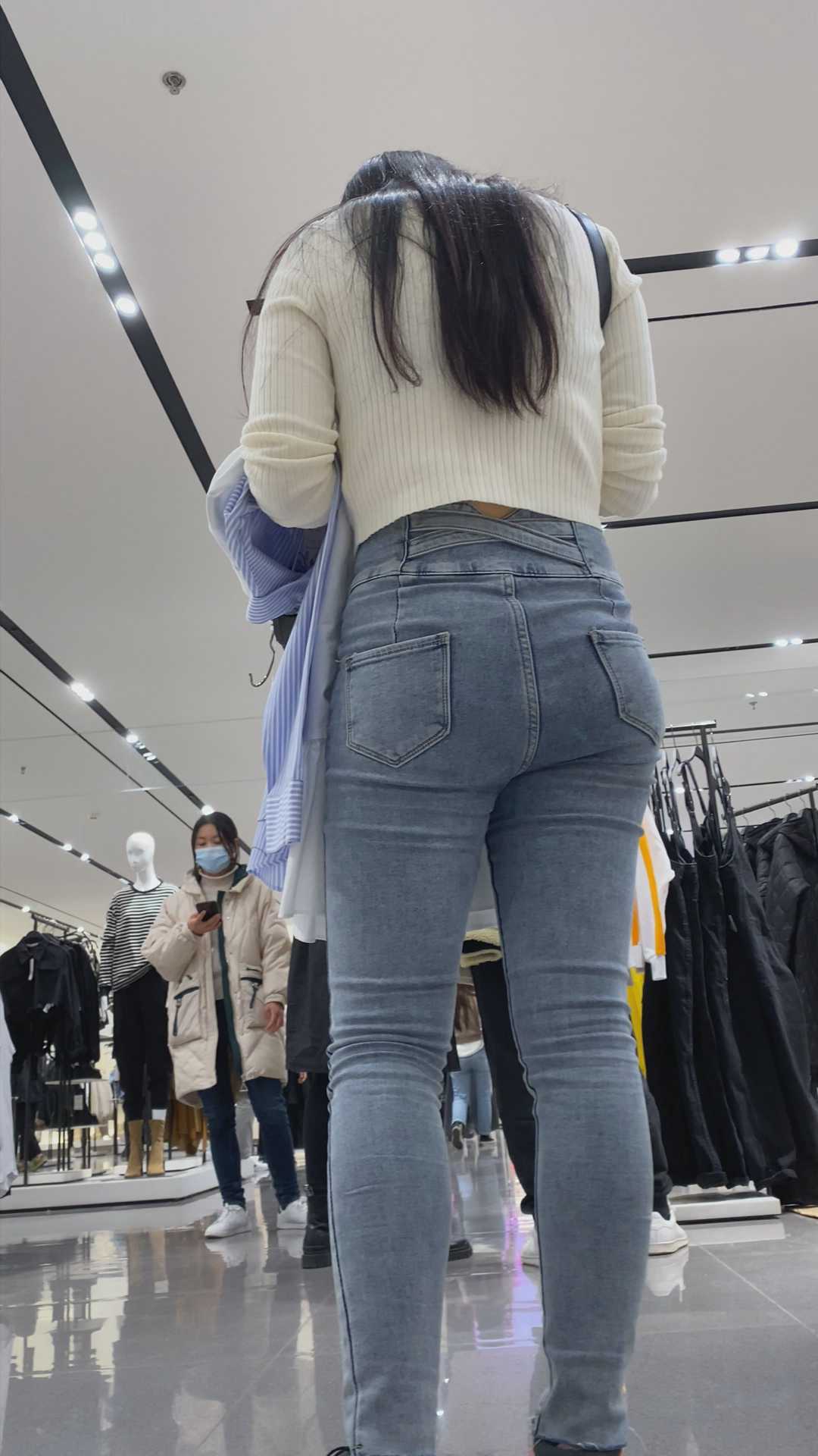 B1283紧身蓝牛翘臀长发少女