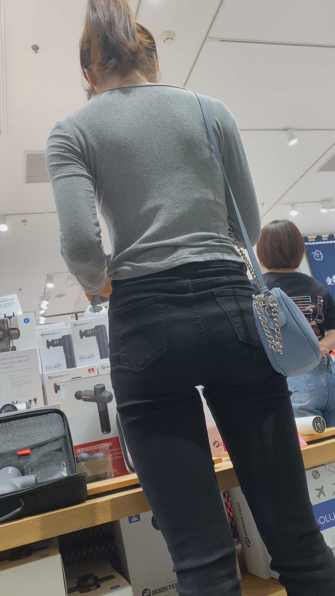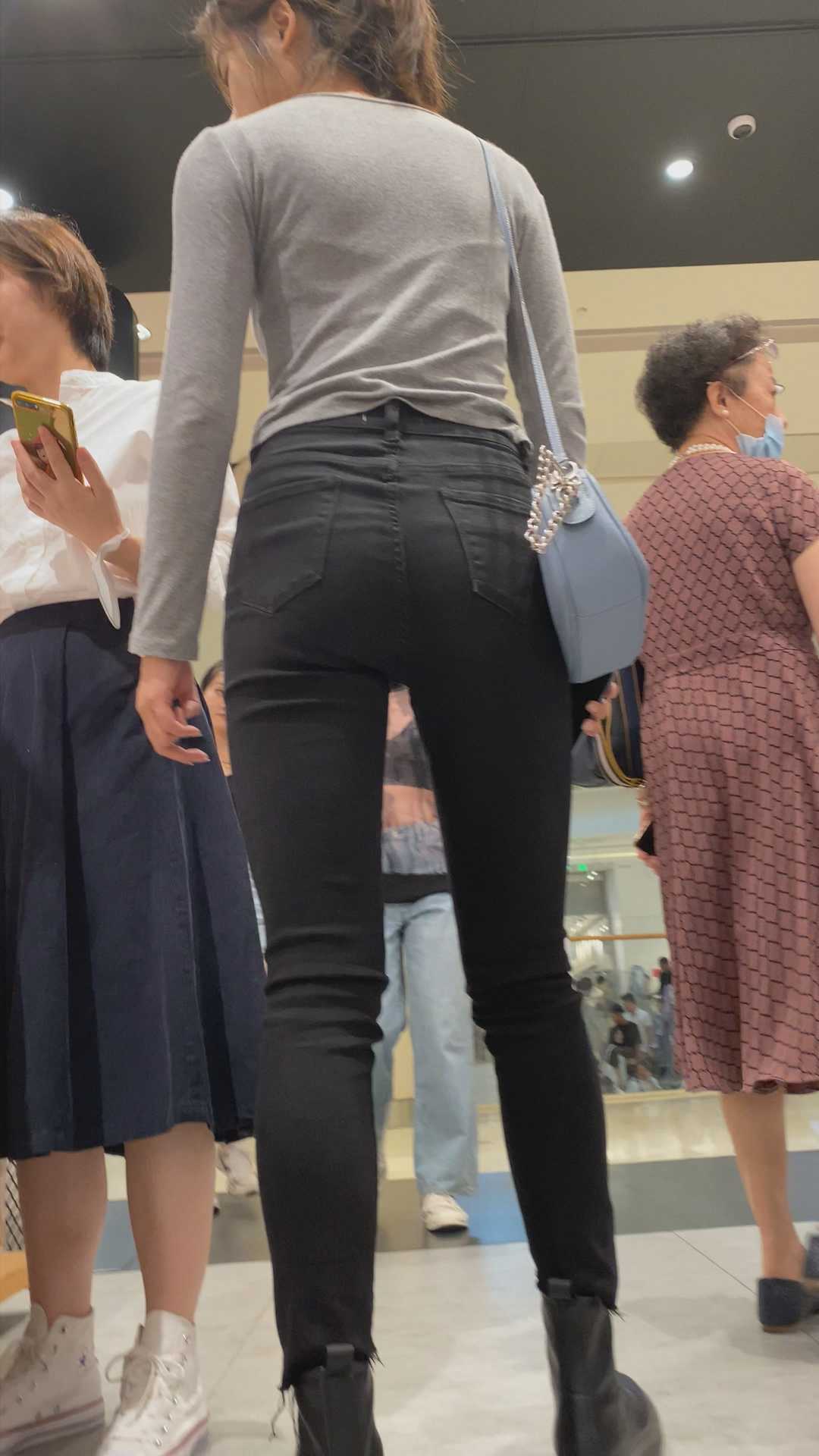 B1319紧身黑裤紧臀会摆姿势